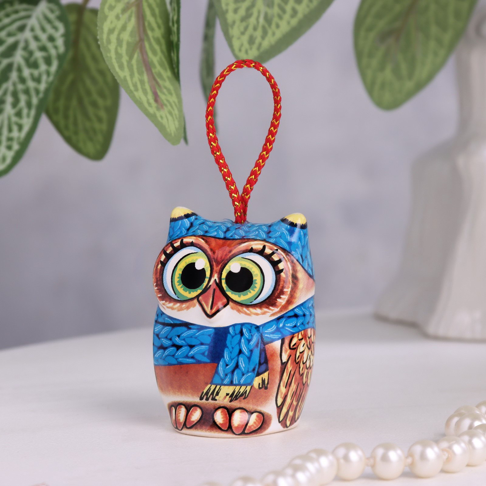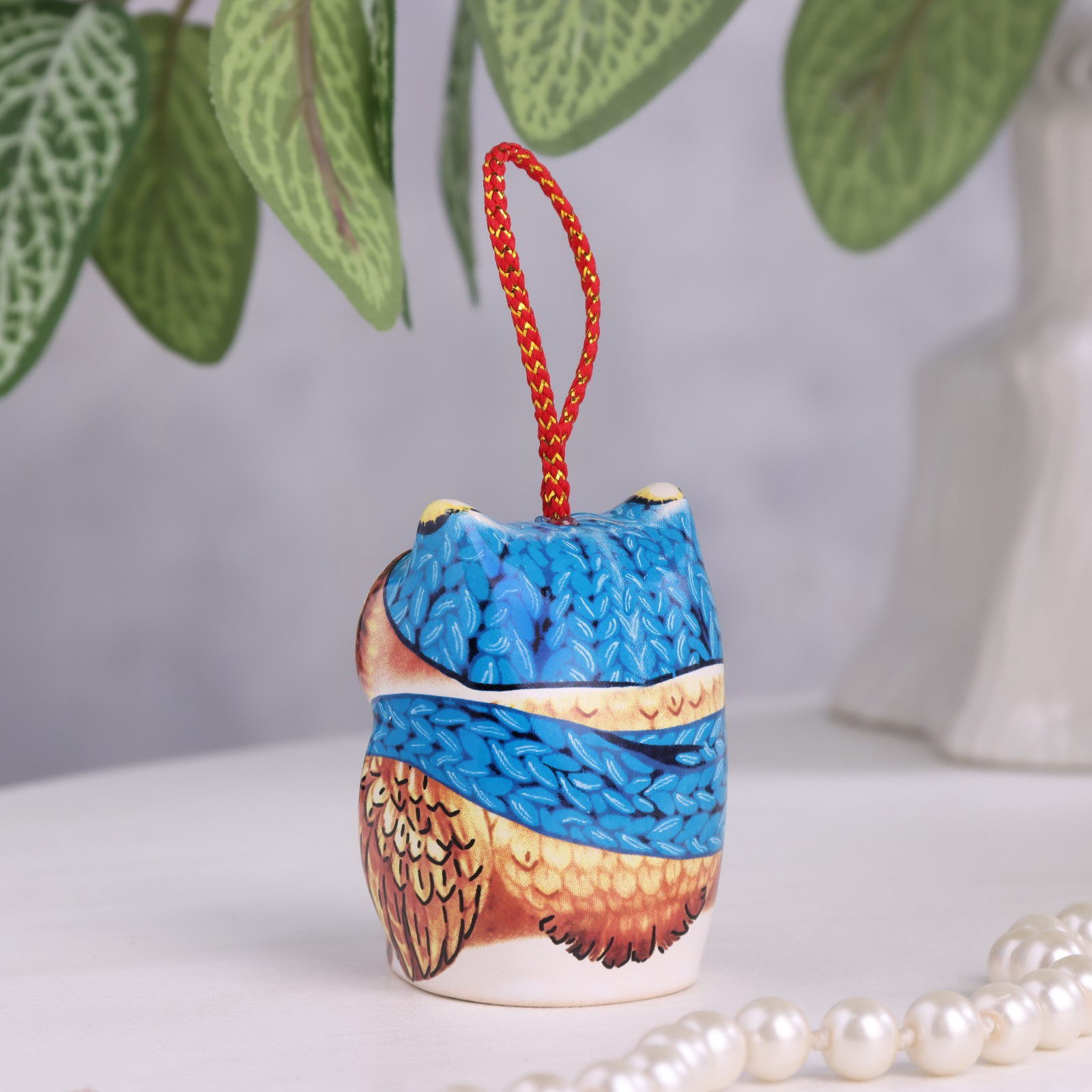 Фигурка с подвеской "Сова в синем шарфике", керамика, Россия