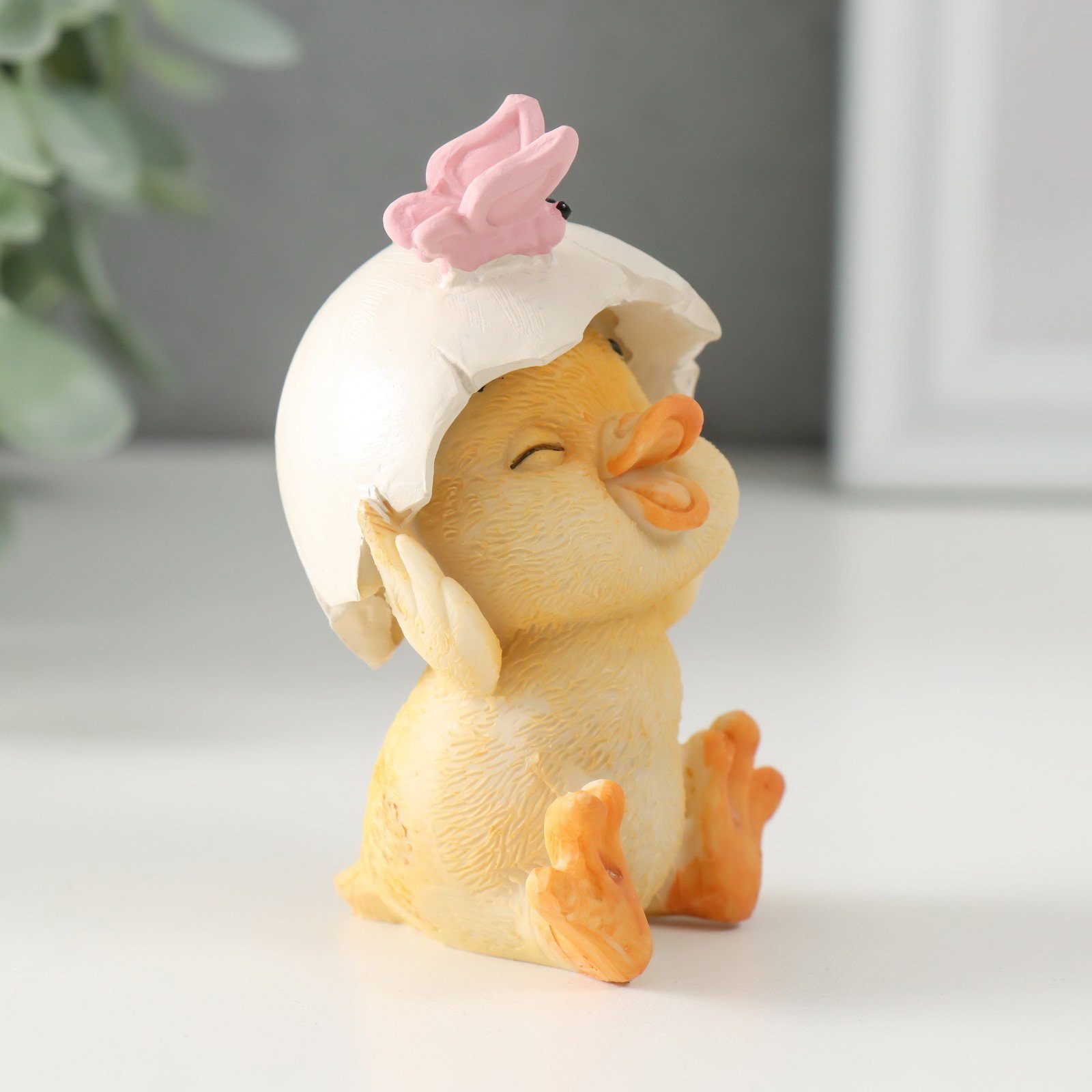 Фигурка полистоун "Утёнок со скорлупой и бабочкой", 6.5x5.5x8.5 см, 5.5x6.5x8.5 см., Китай