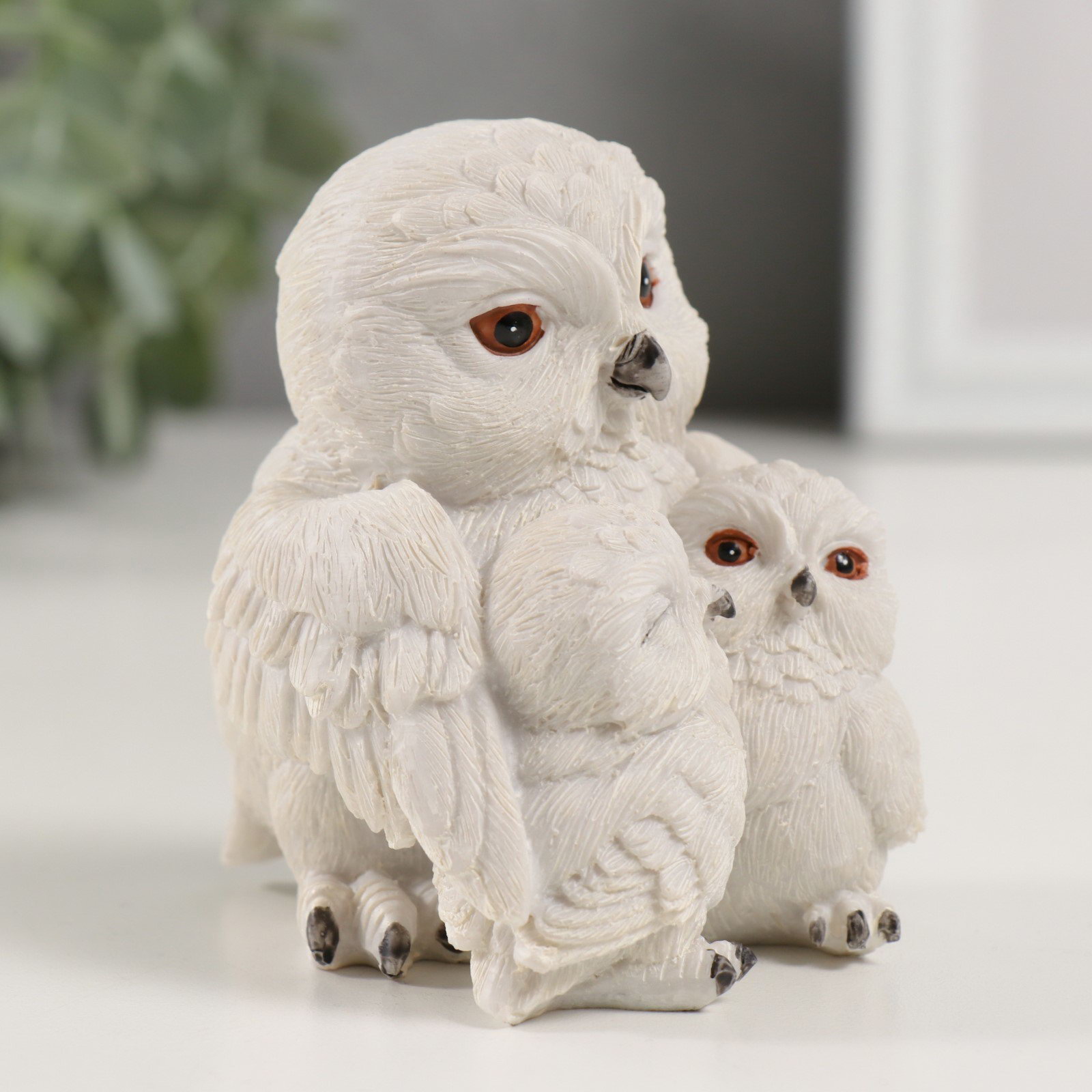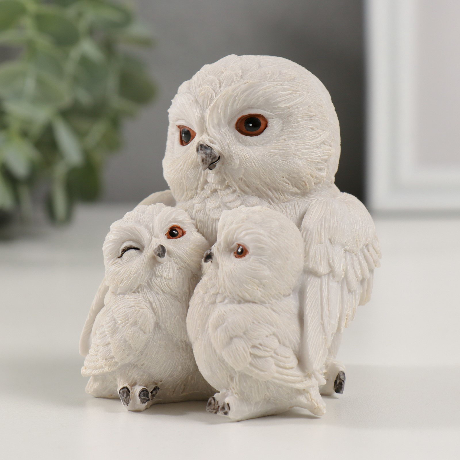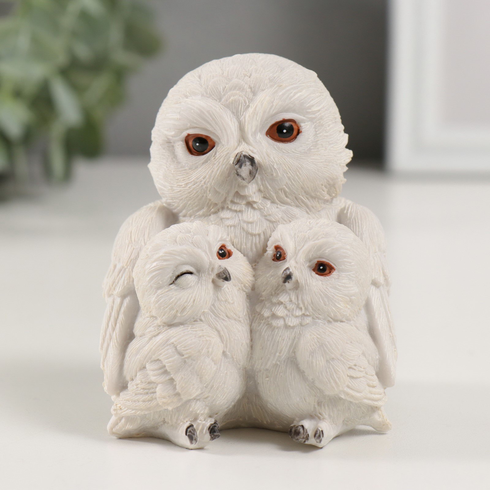Фигурка полистоун "Семья белых совушек", 8x7x8.5 см, 7x8x8.5 см., Китай
