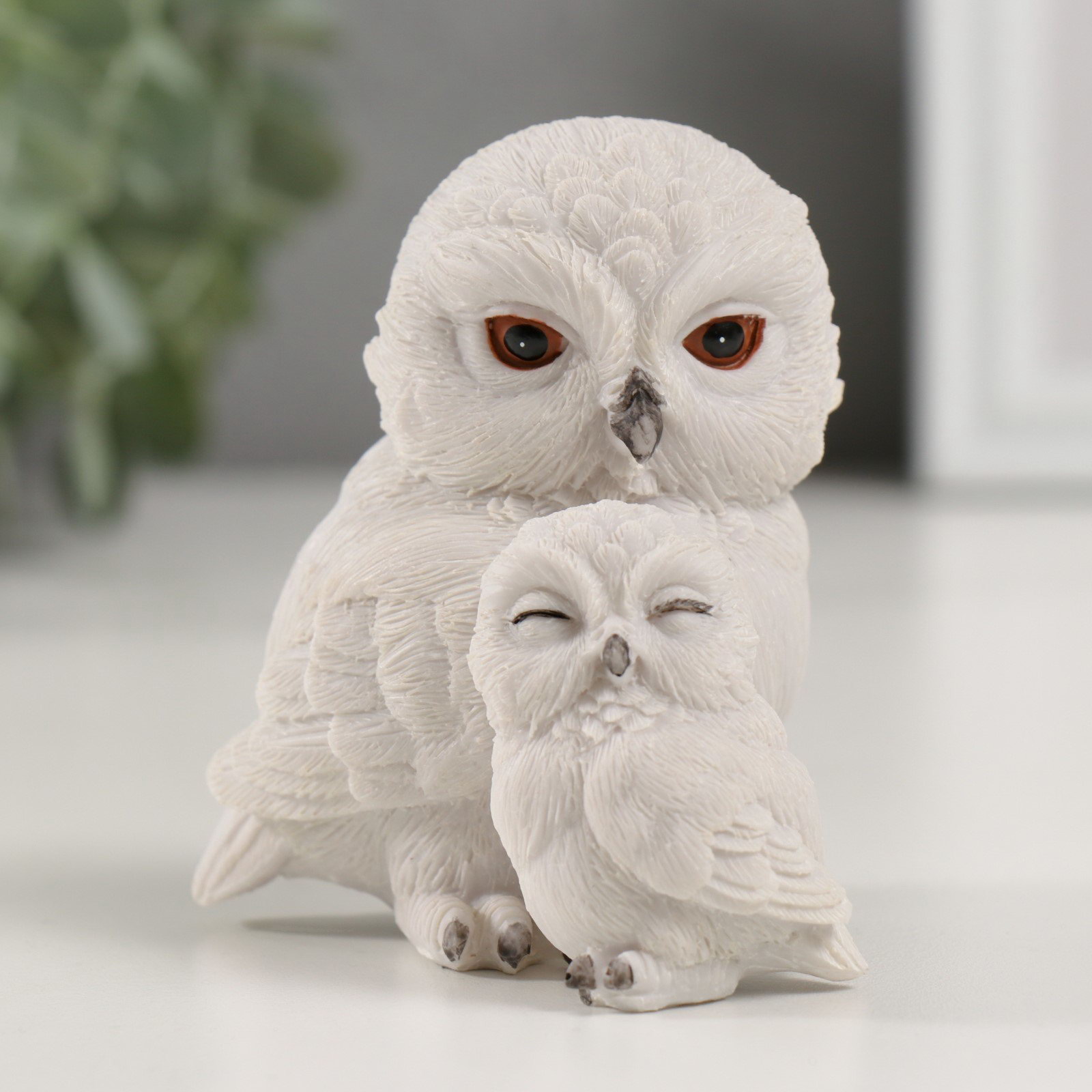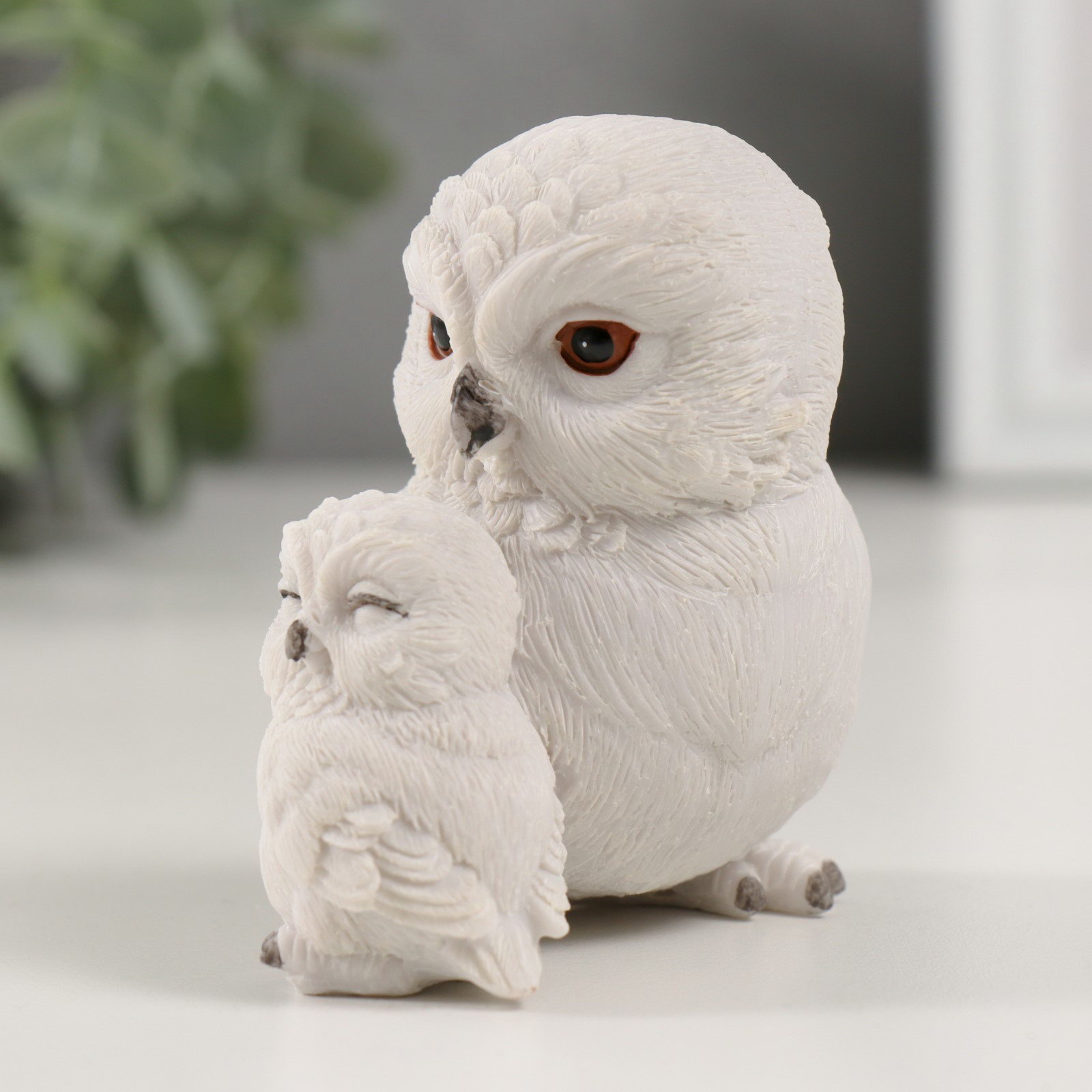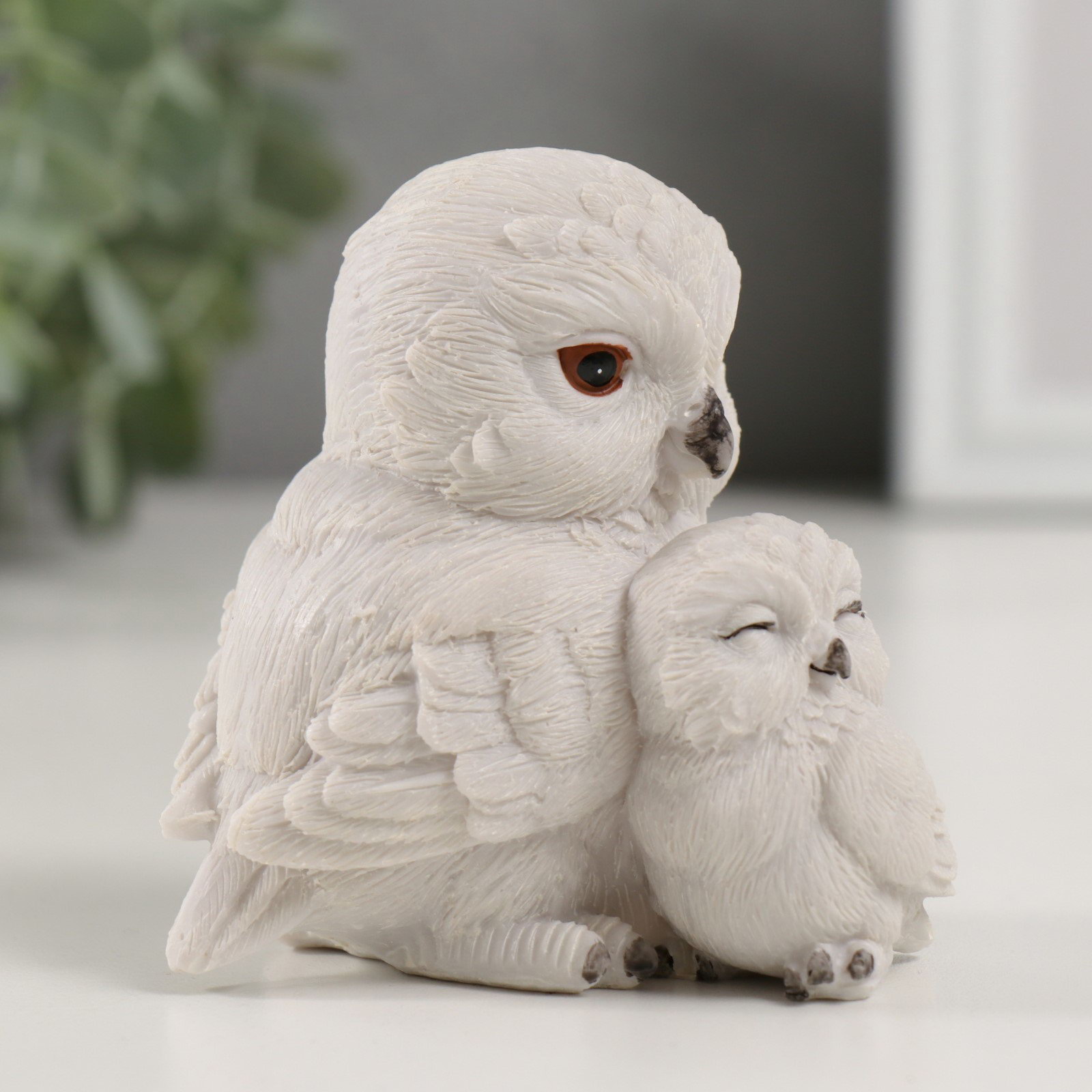 Фигурка полистоун "Белая сова с совёнком", 8x6x8.5 см, 6x8x8.5 см., Китай