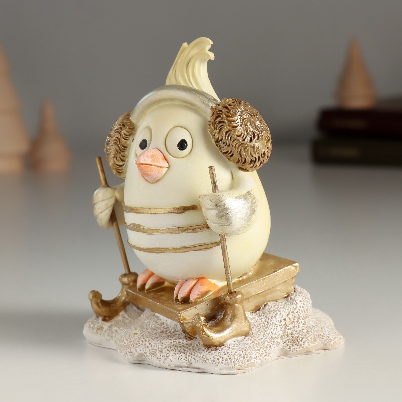 Фигурка полистоун "Птенчик с хохолком, в наушниках", 9x8x11 см, Китай