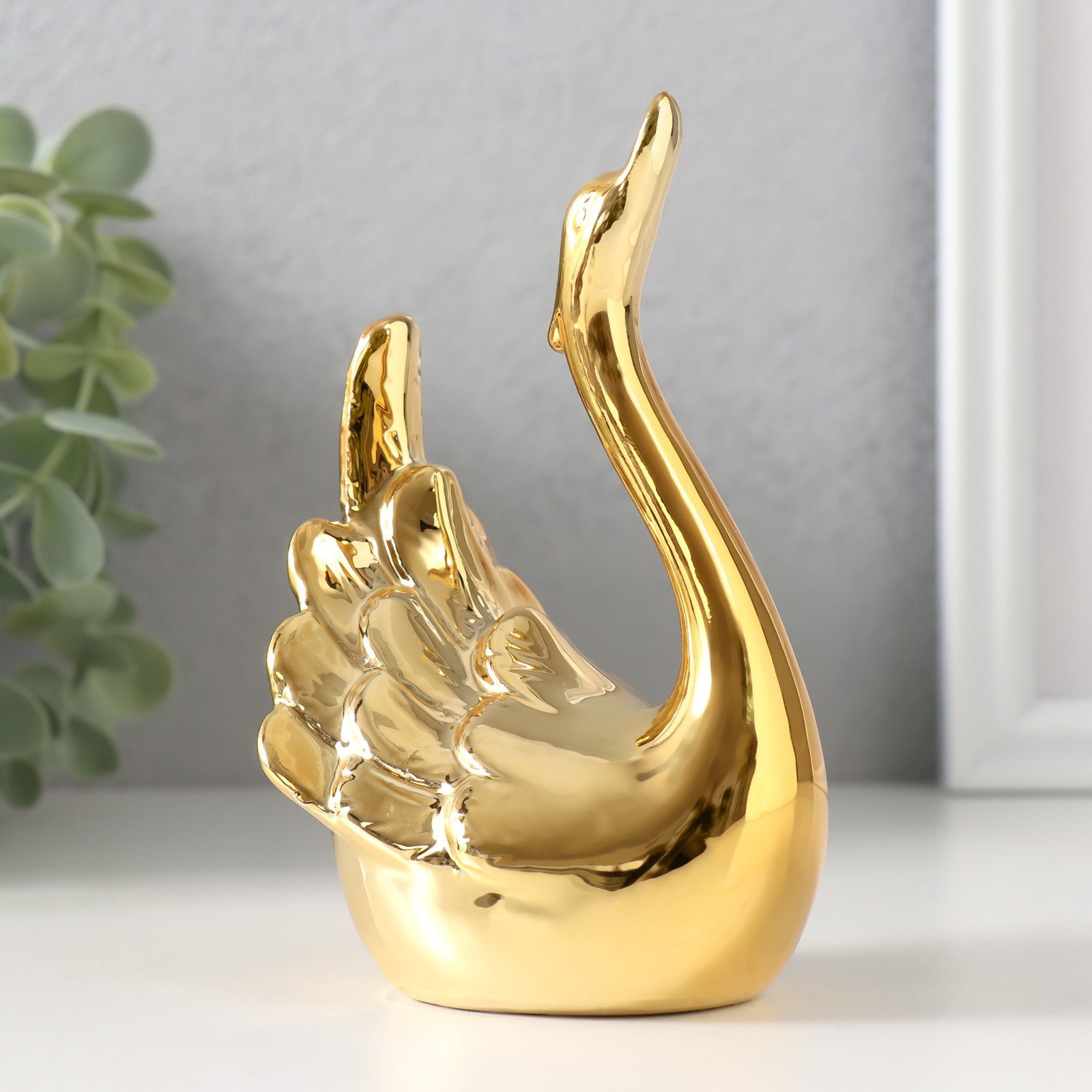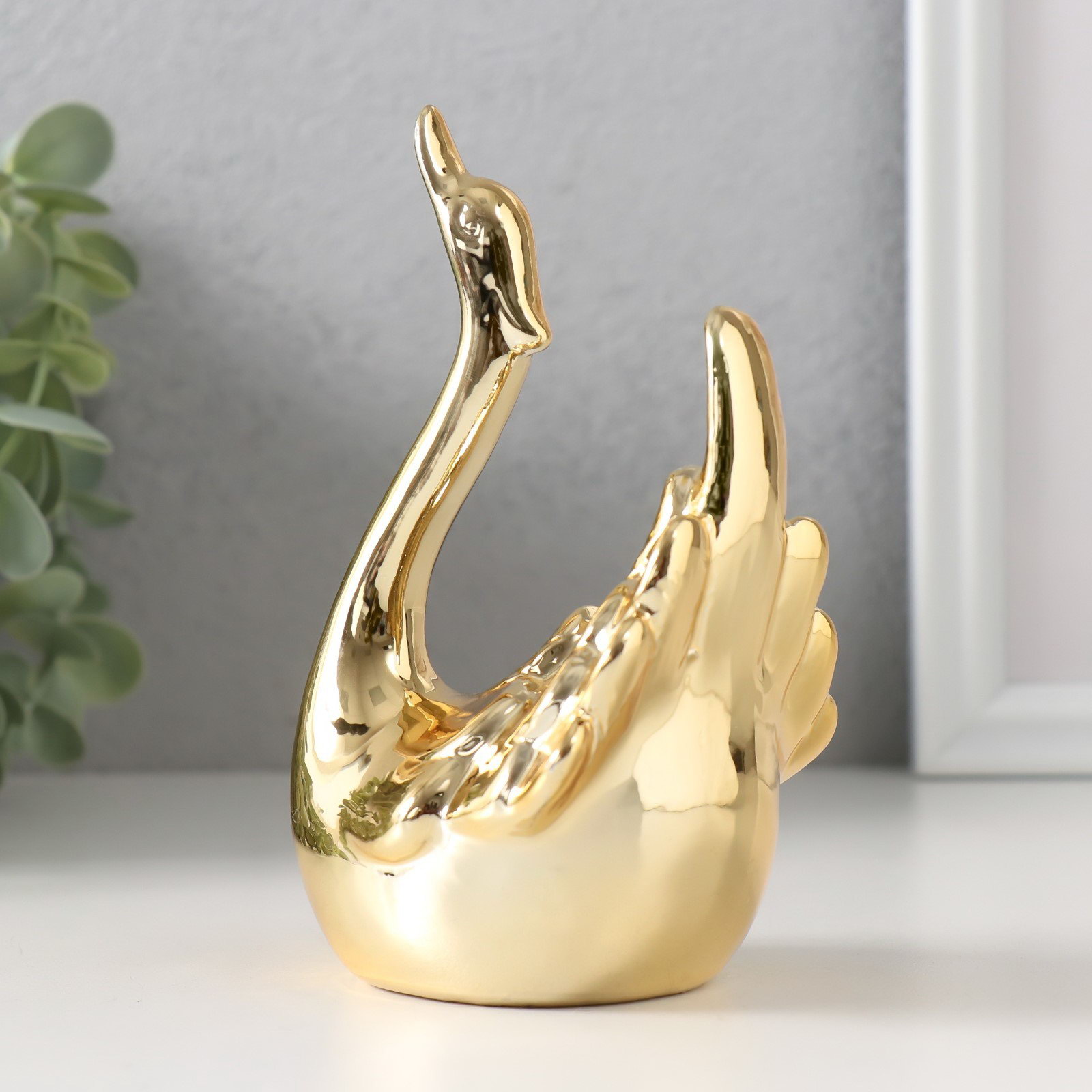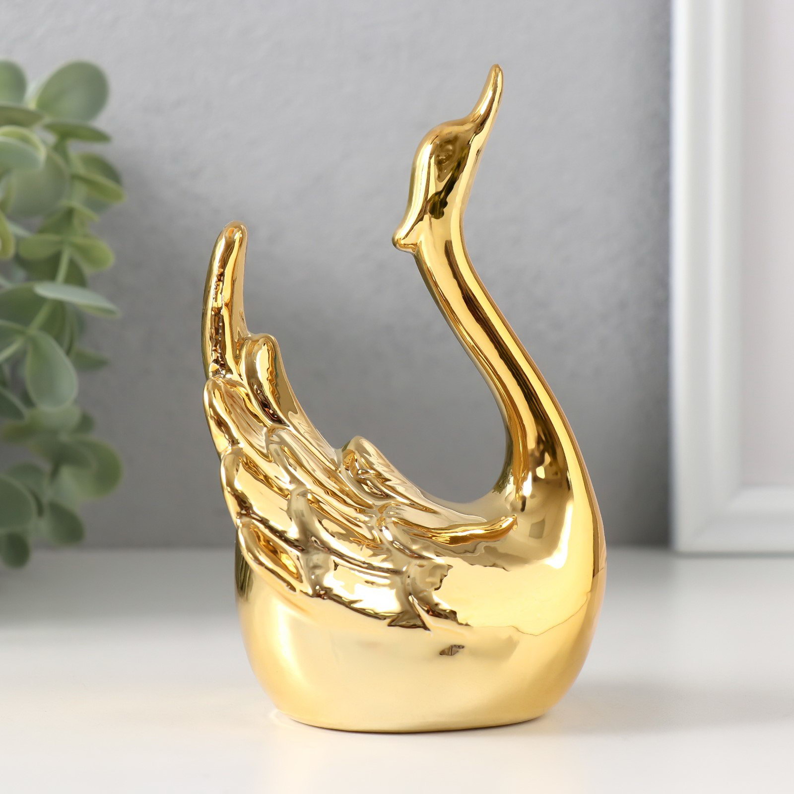 Сувенир керамика "Лебедь. Покорность" золото 6х10.5х14 см, 9x4.5x13.5 см., Китай