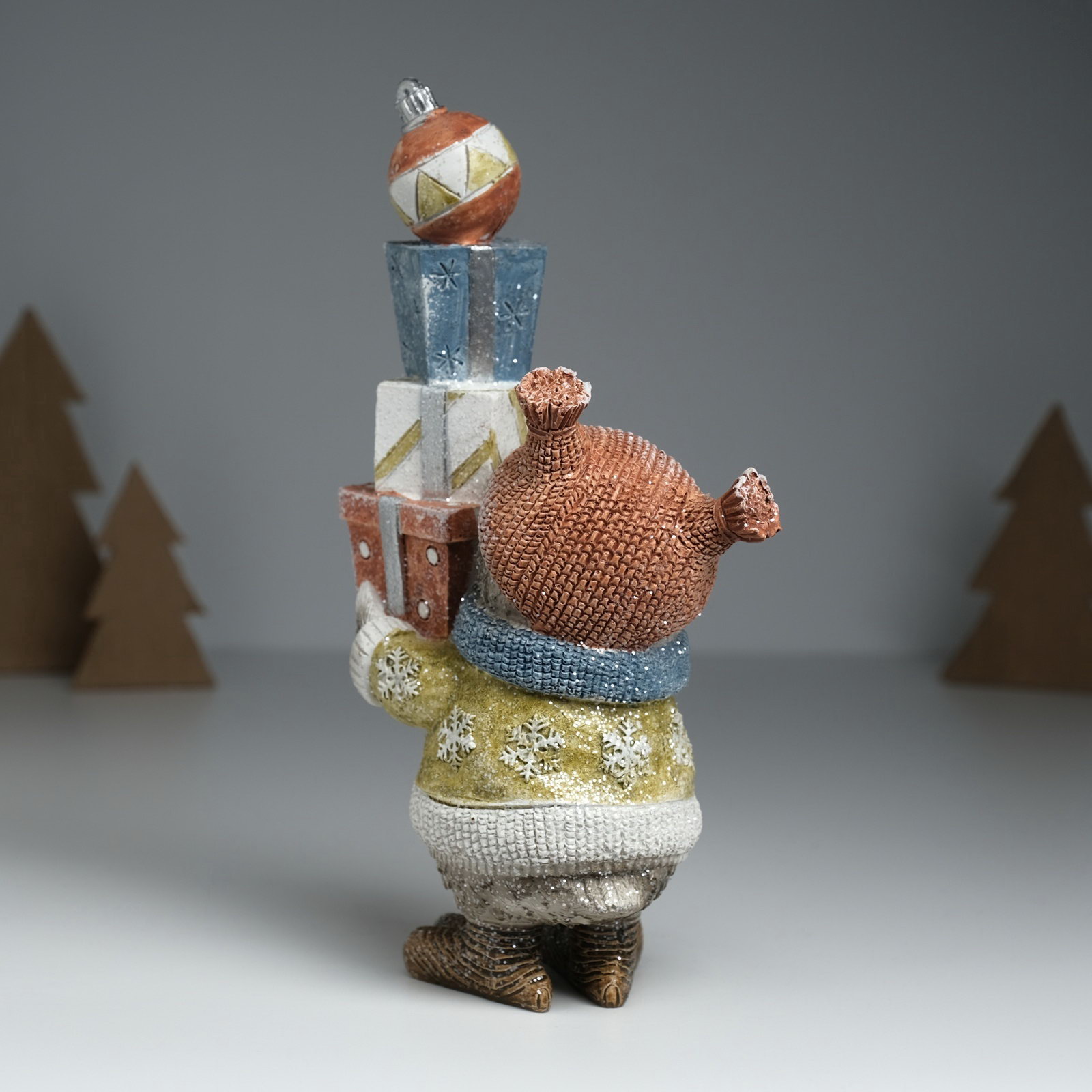 Фигурка полистоун "Совушка в платье со снежинками, с горой подарков", 13.6x8x20.5 см, Китай