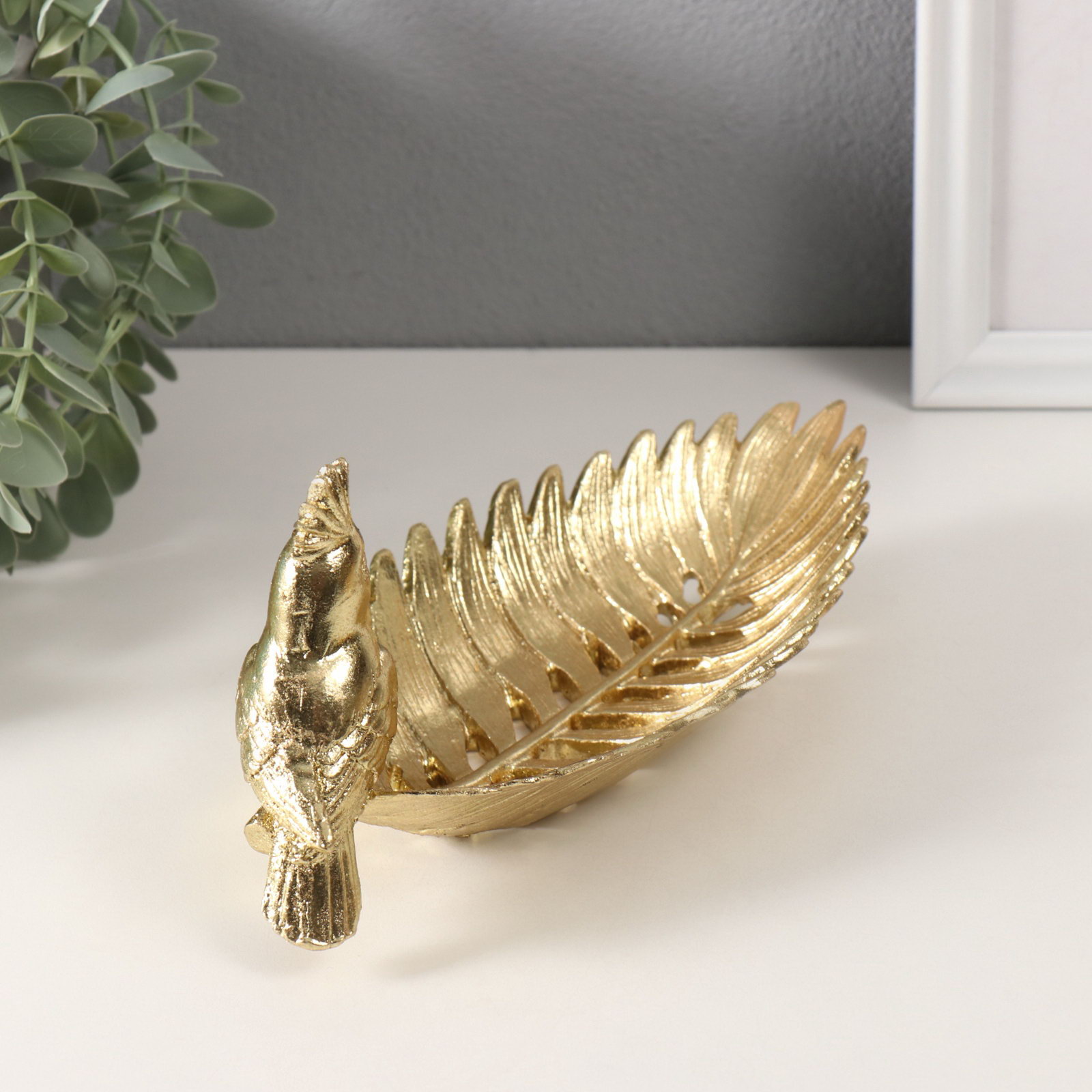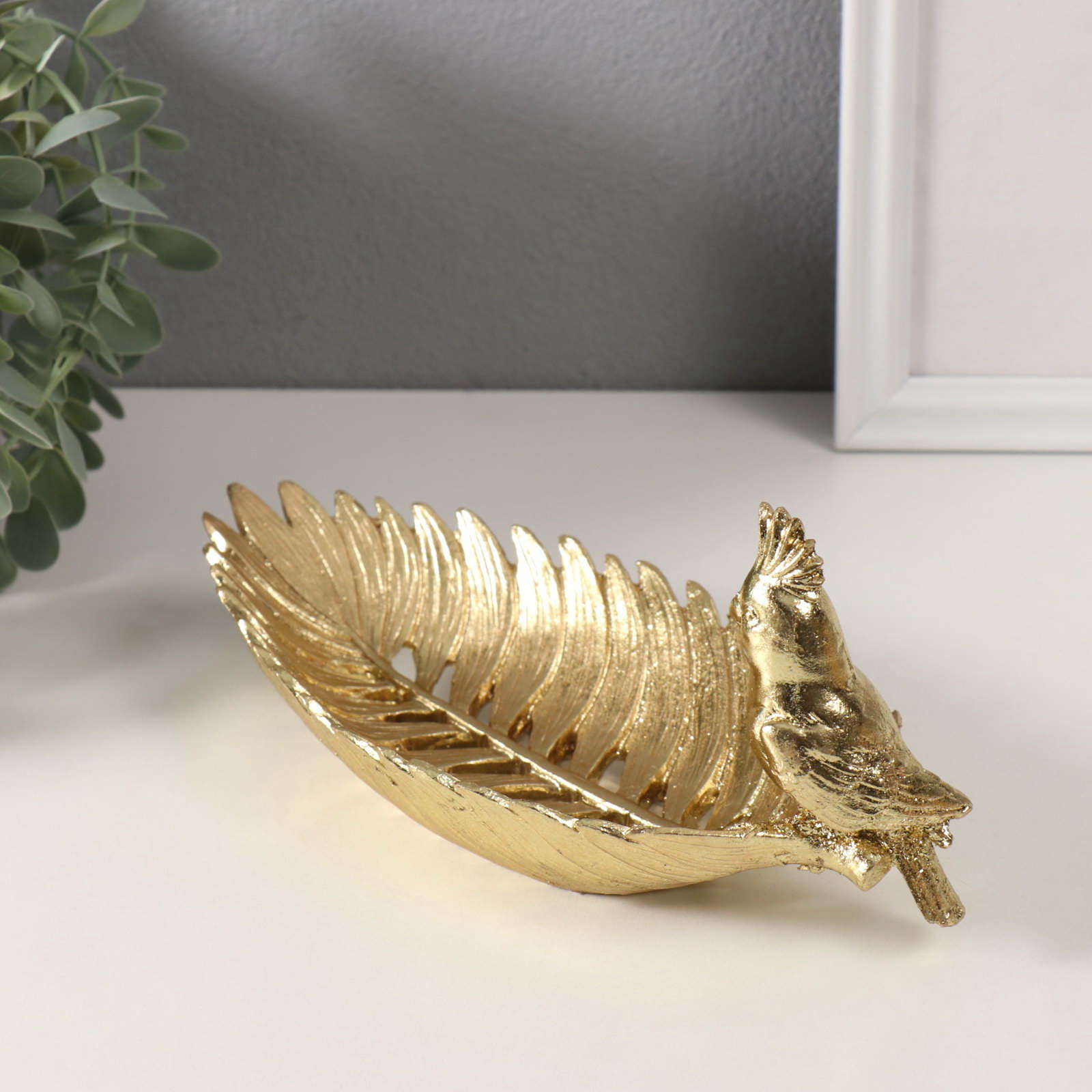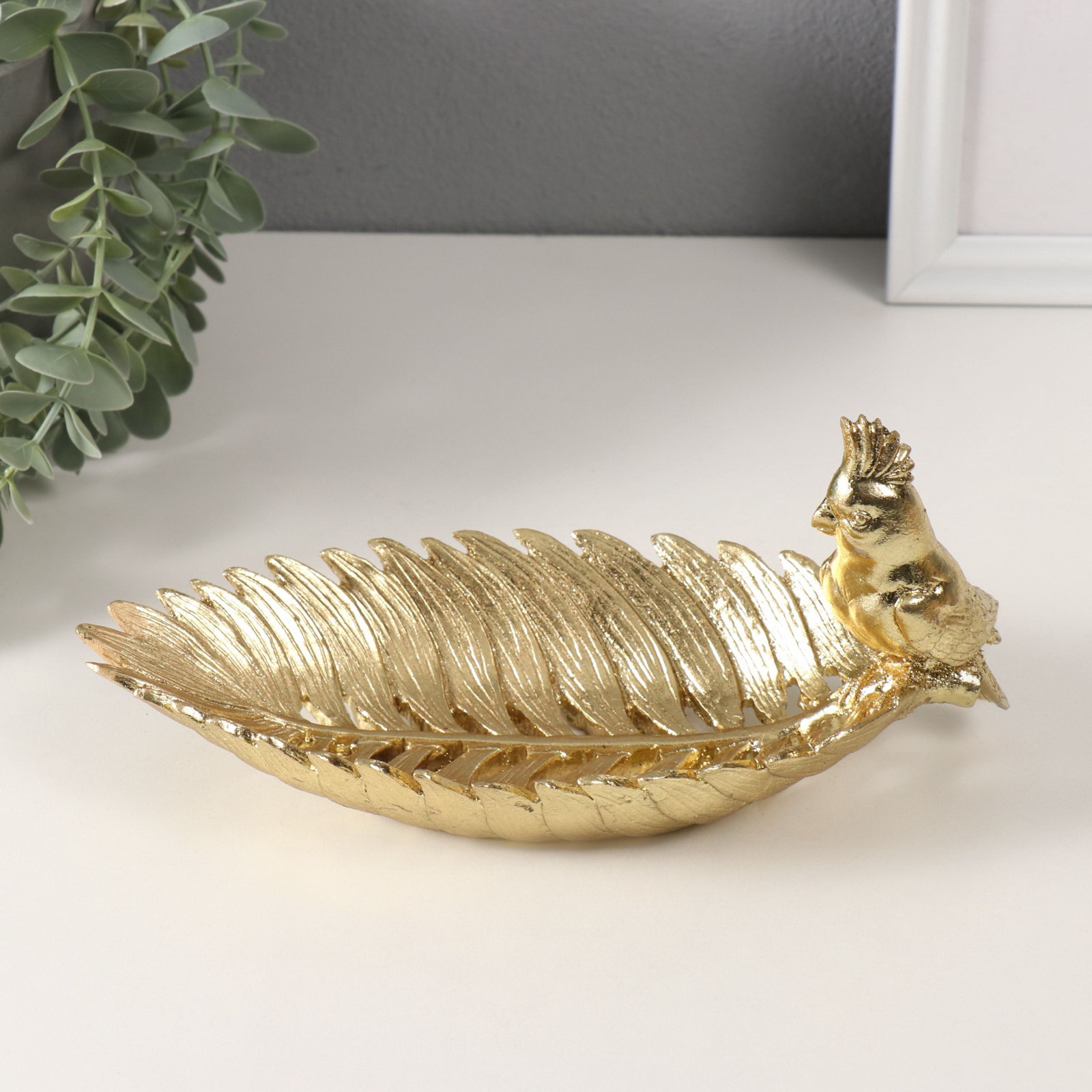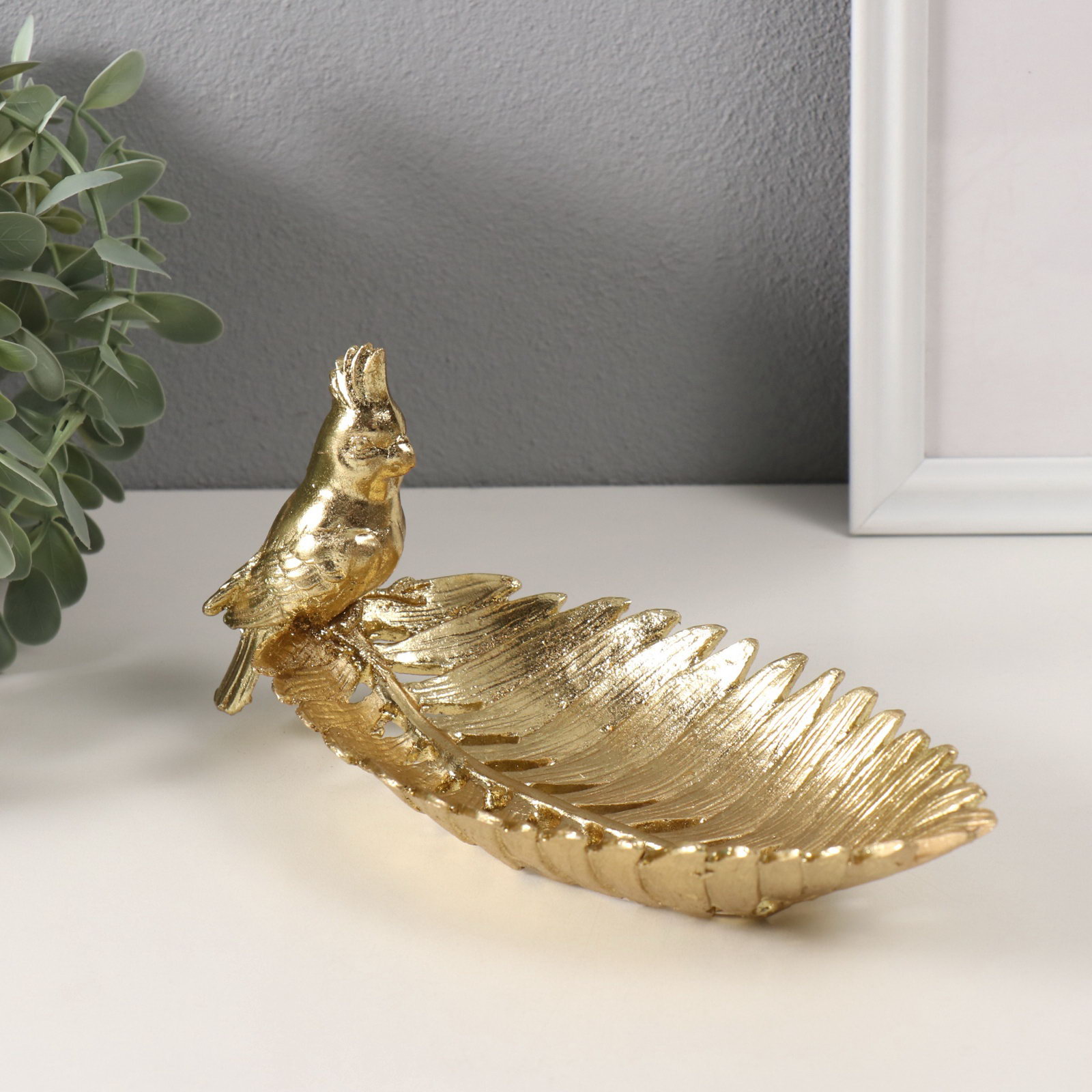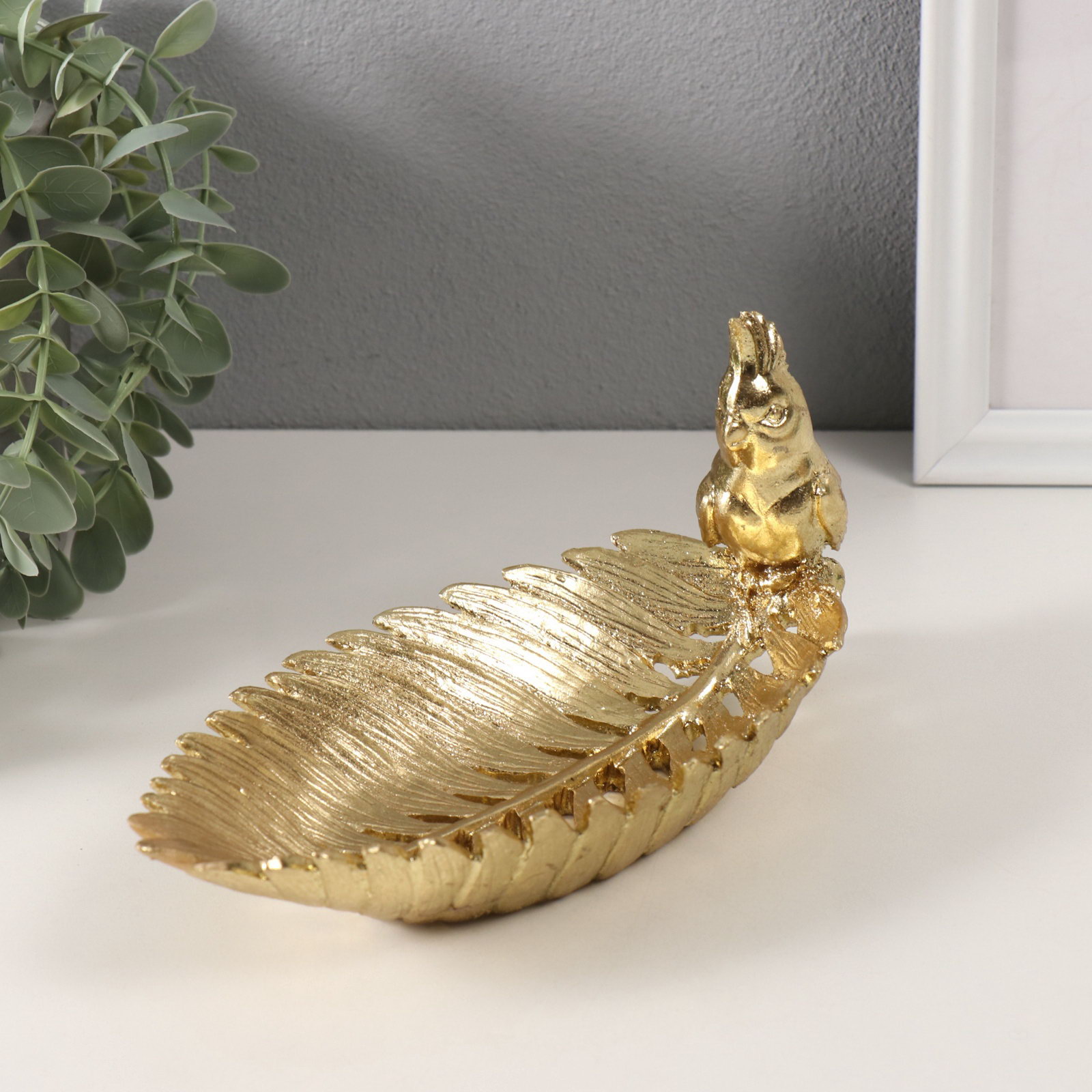 Фигурка полистоун подставка "Золотой попугайчик с хохолком на золотом листе", 11x24.5x11 см, Китай