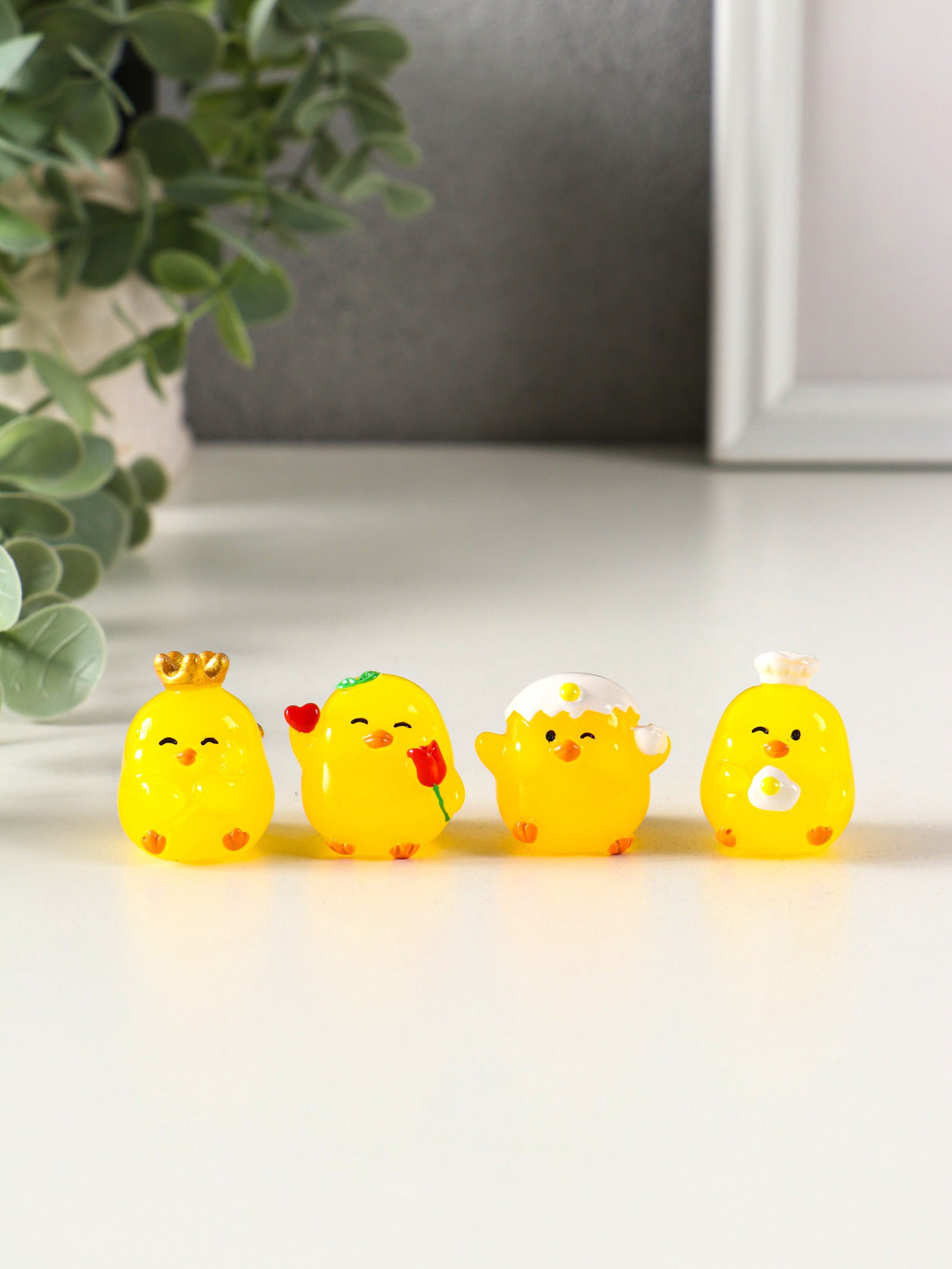 Набор фигурок полистоун флюоресцентный "Цыплята", 4 шт., 2.5x3.2 см, 2.5x3.2 см., Китай
