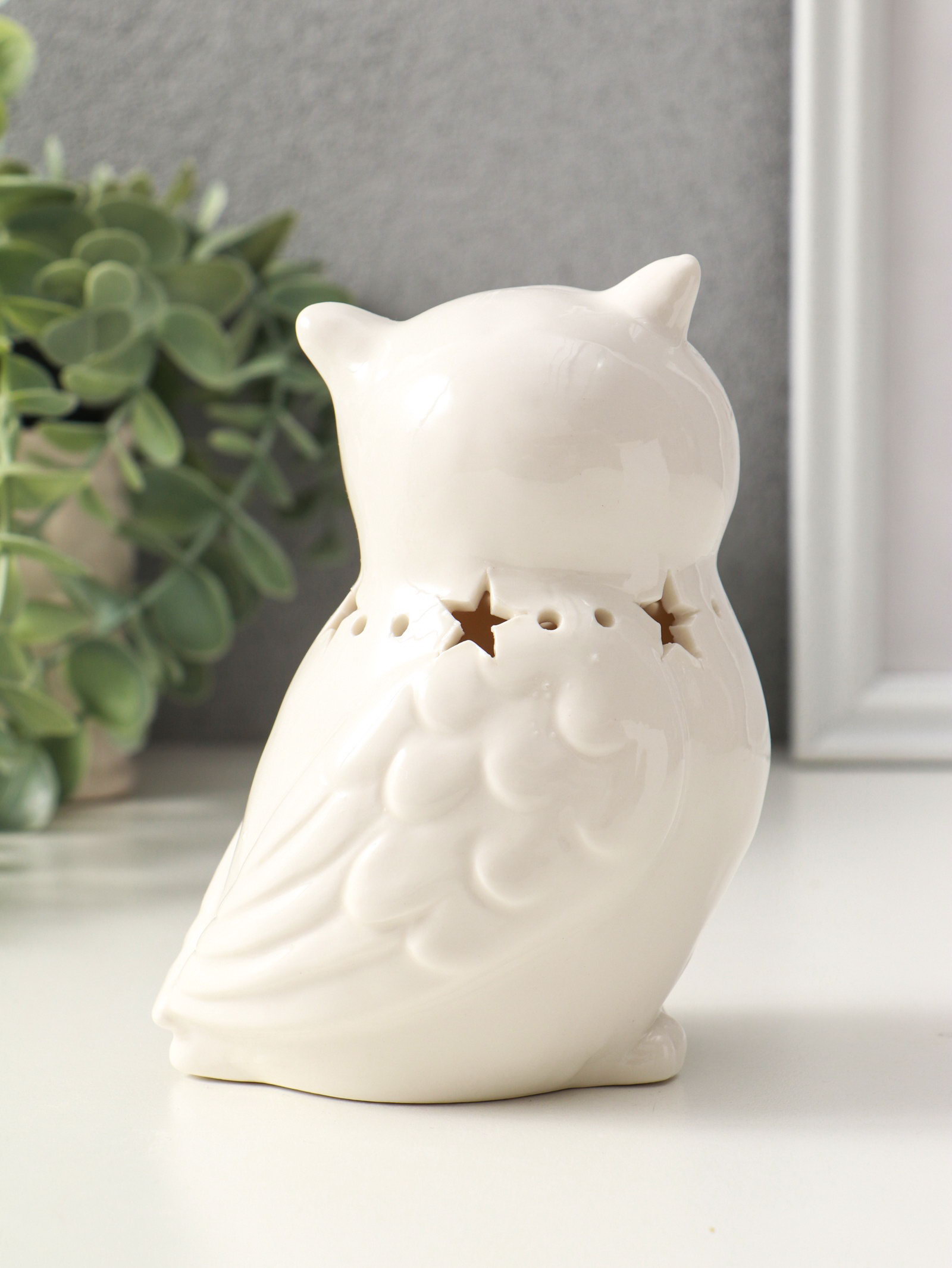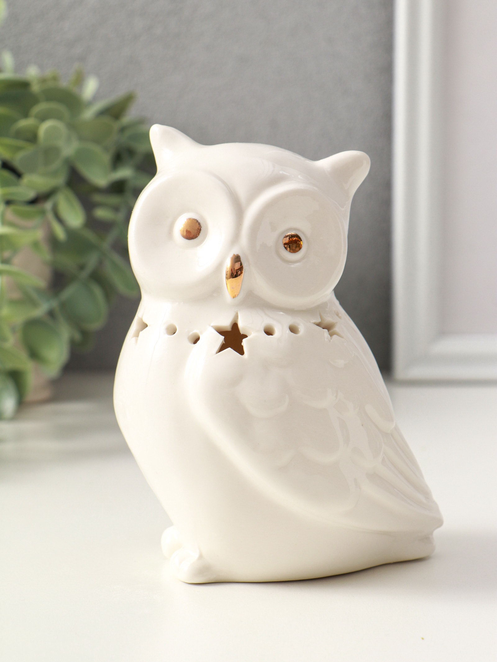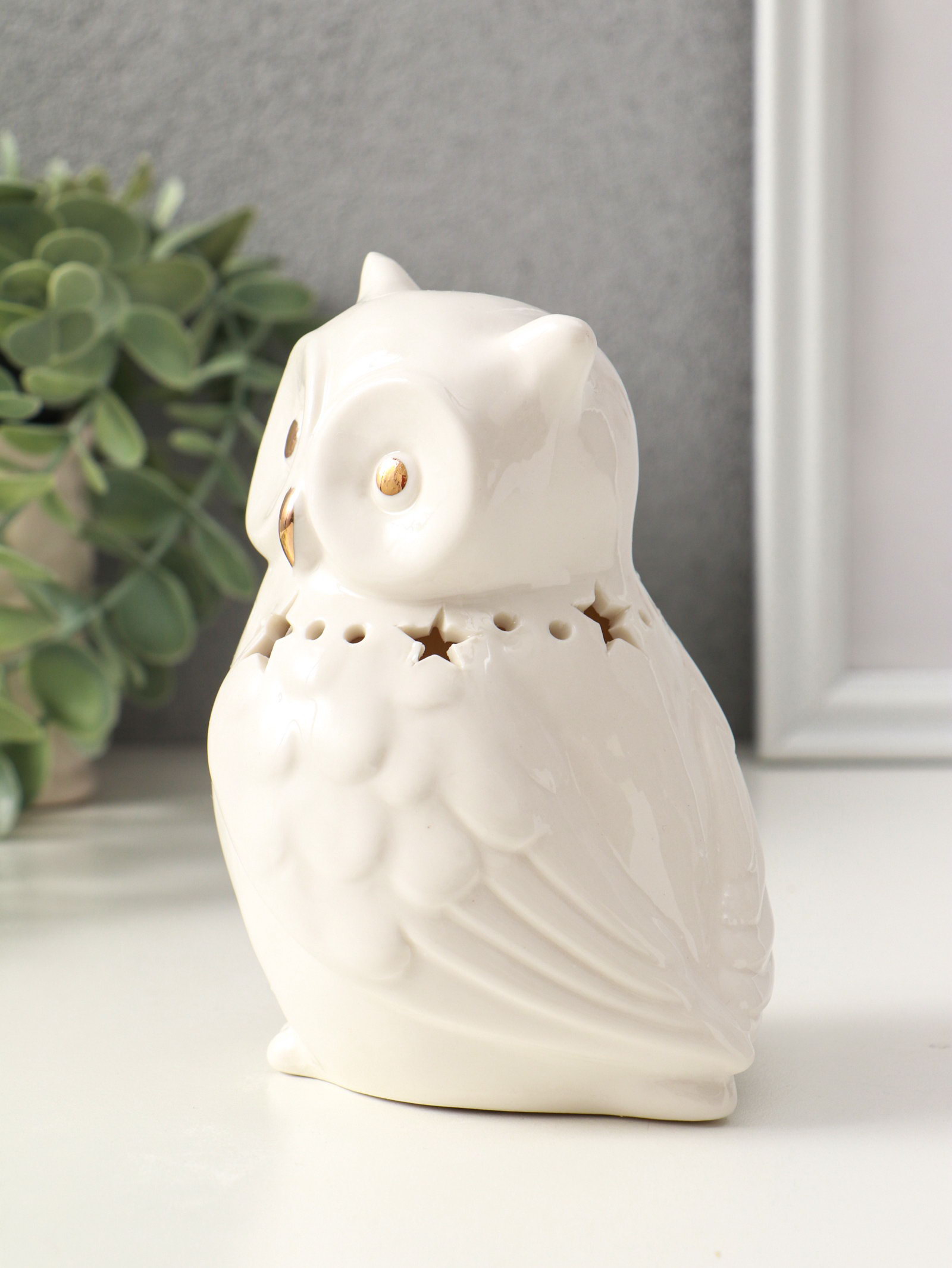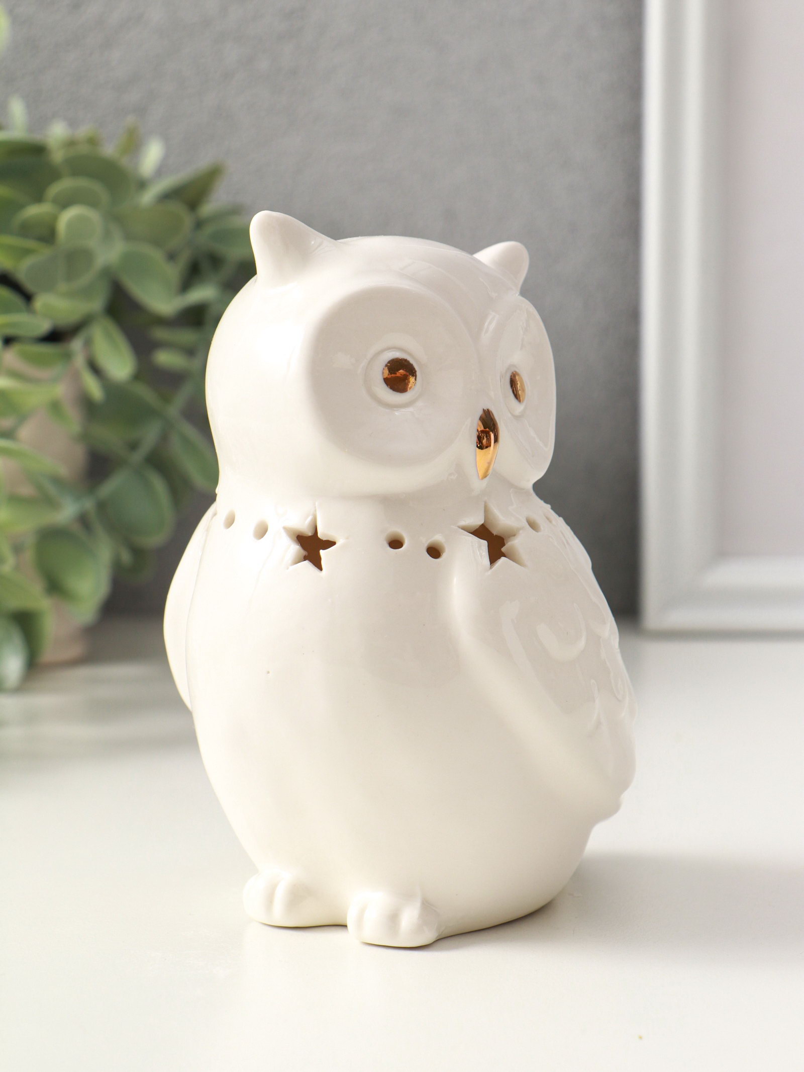 Фигурка светящаяся "Филин с ожерельем из звёзд", белый, керамика, 9x6.5x13 см, 6.5x9x13 см., Китай