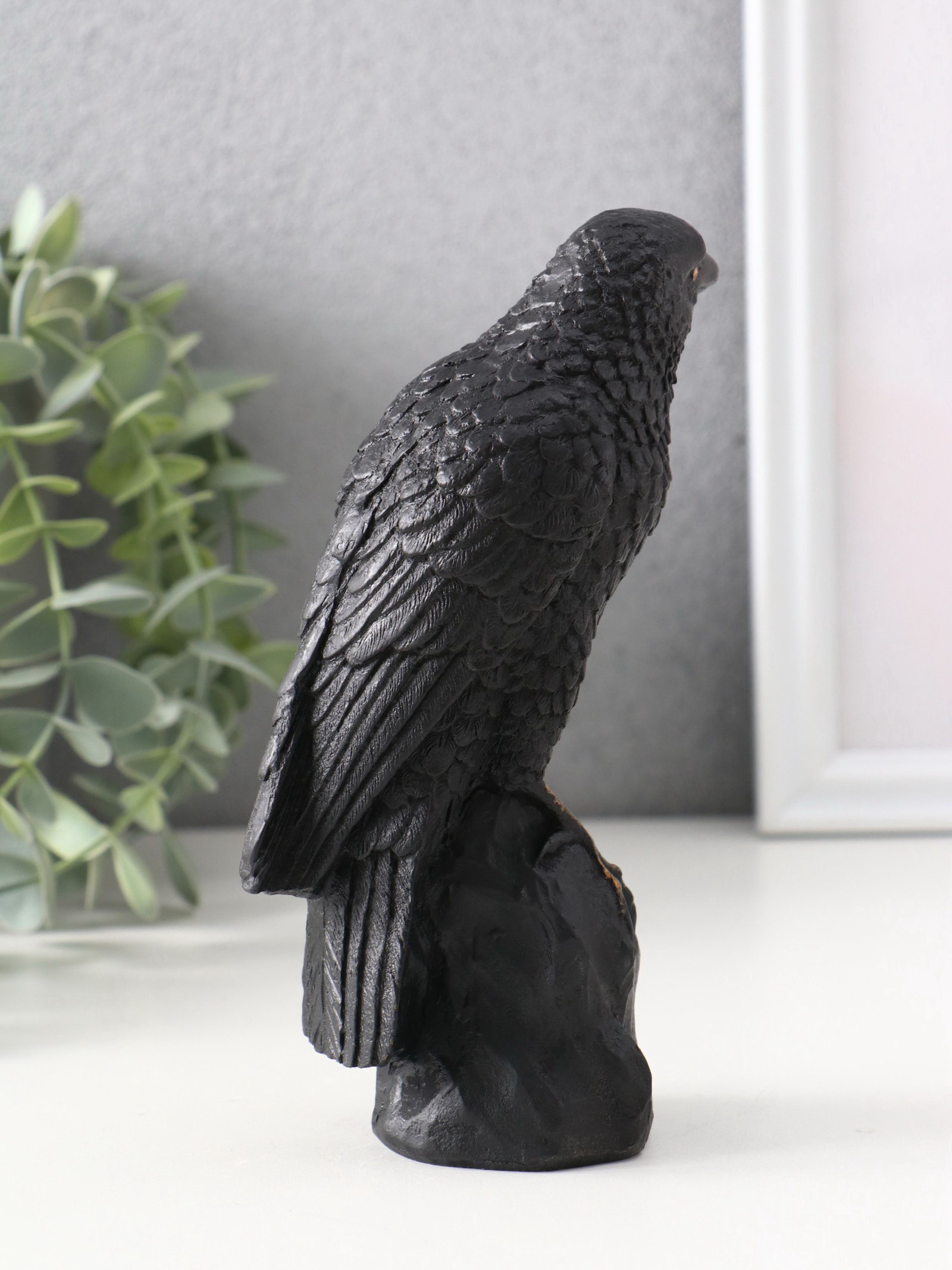 Фигурка гипс "Ворон на камне", 15.5x5.5x10 см, чёрная, Хорошие сувениры, Россия