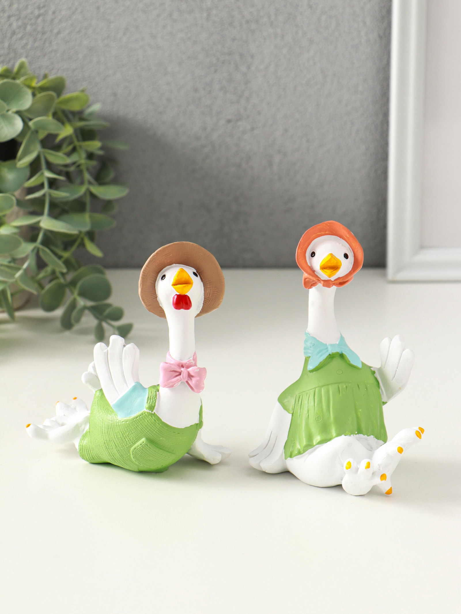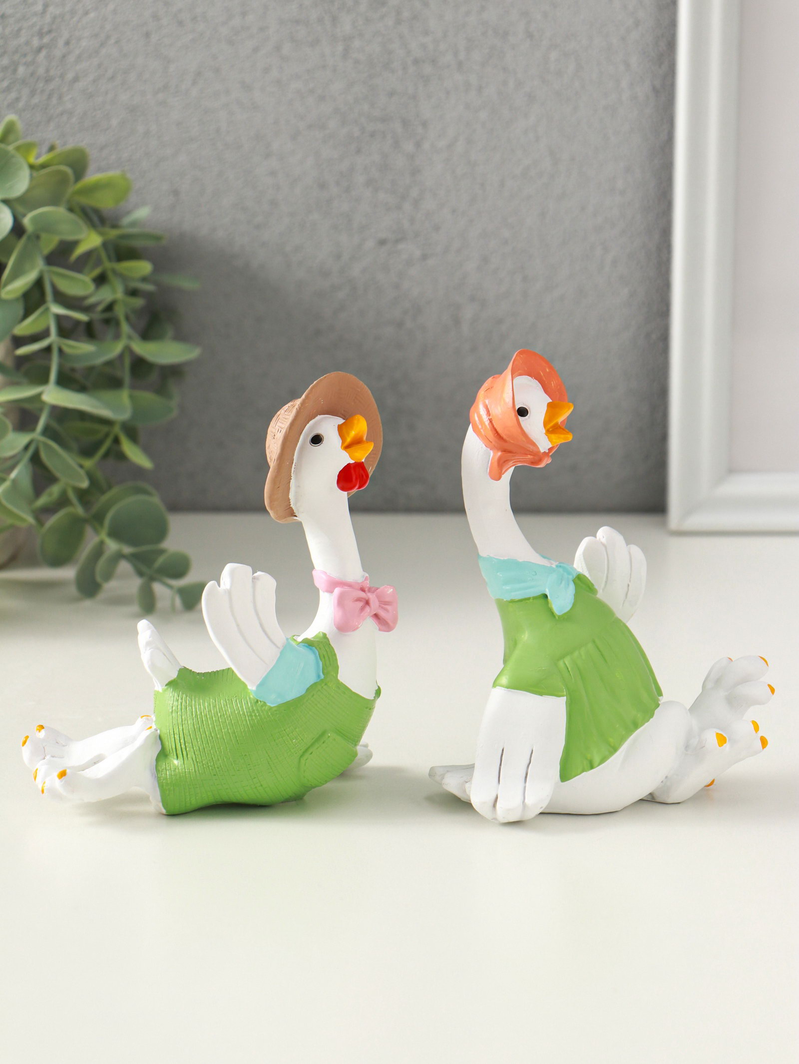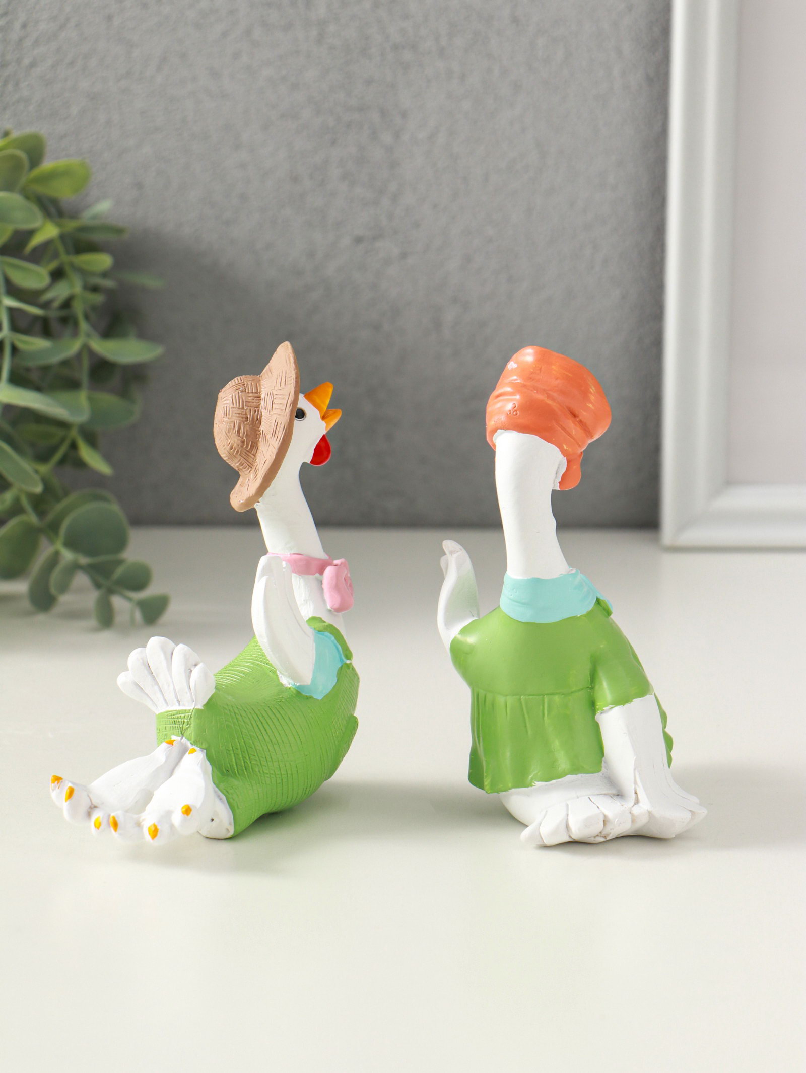 Набор фигурок полистоун "Гусь и гусыня в зелёных нарядах", 2 шт., 6x11x11.7 см, 11x6x11.7 см., Китай