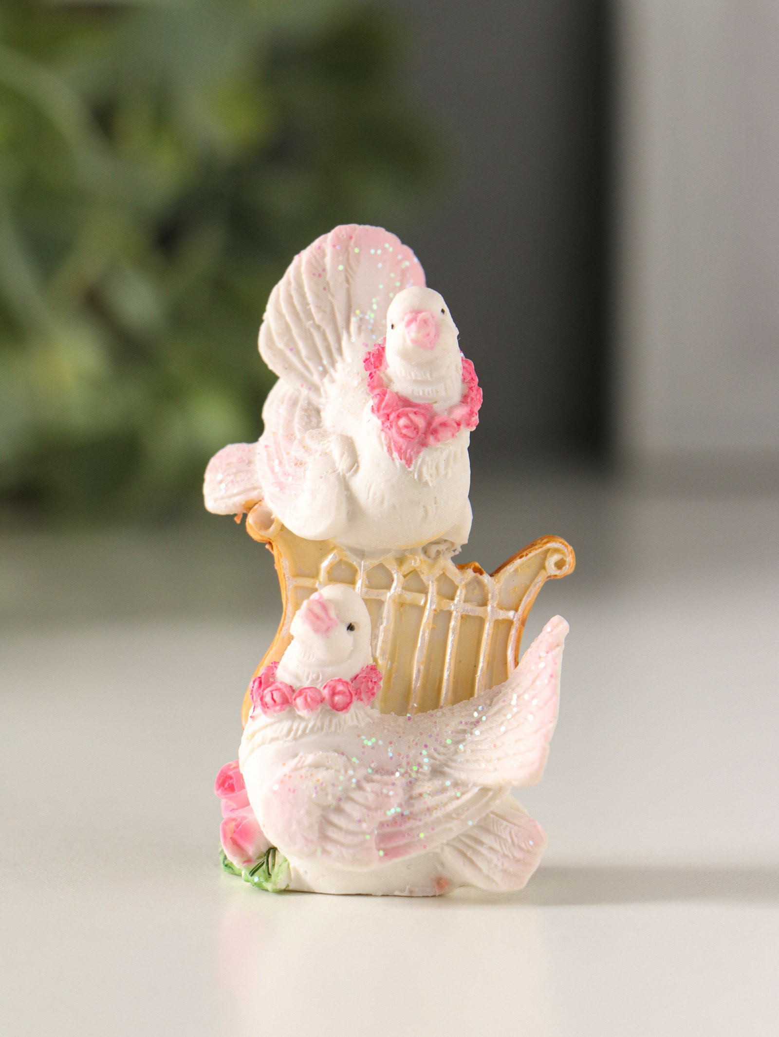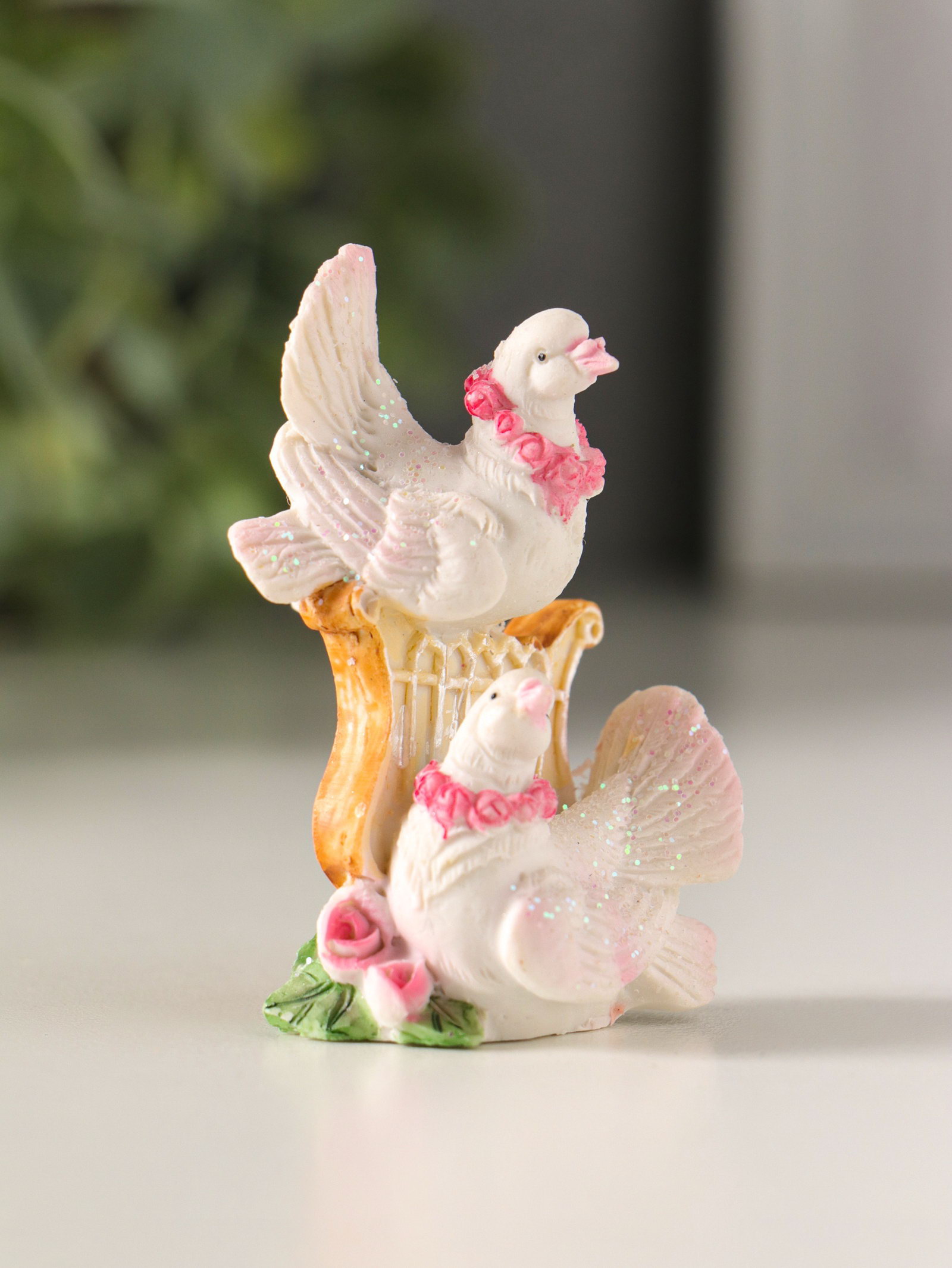 Фигурка полистоун "Голуби в розовом венке", 6x4 см, 4x6.4 см., Китай