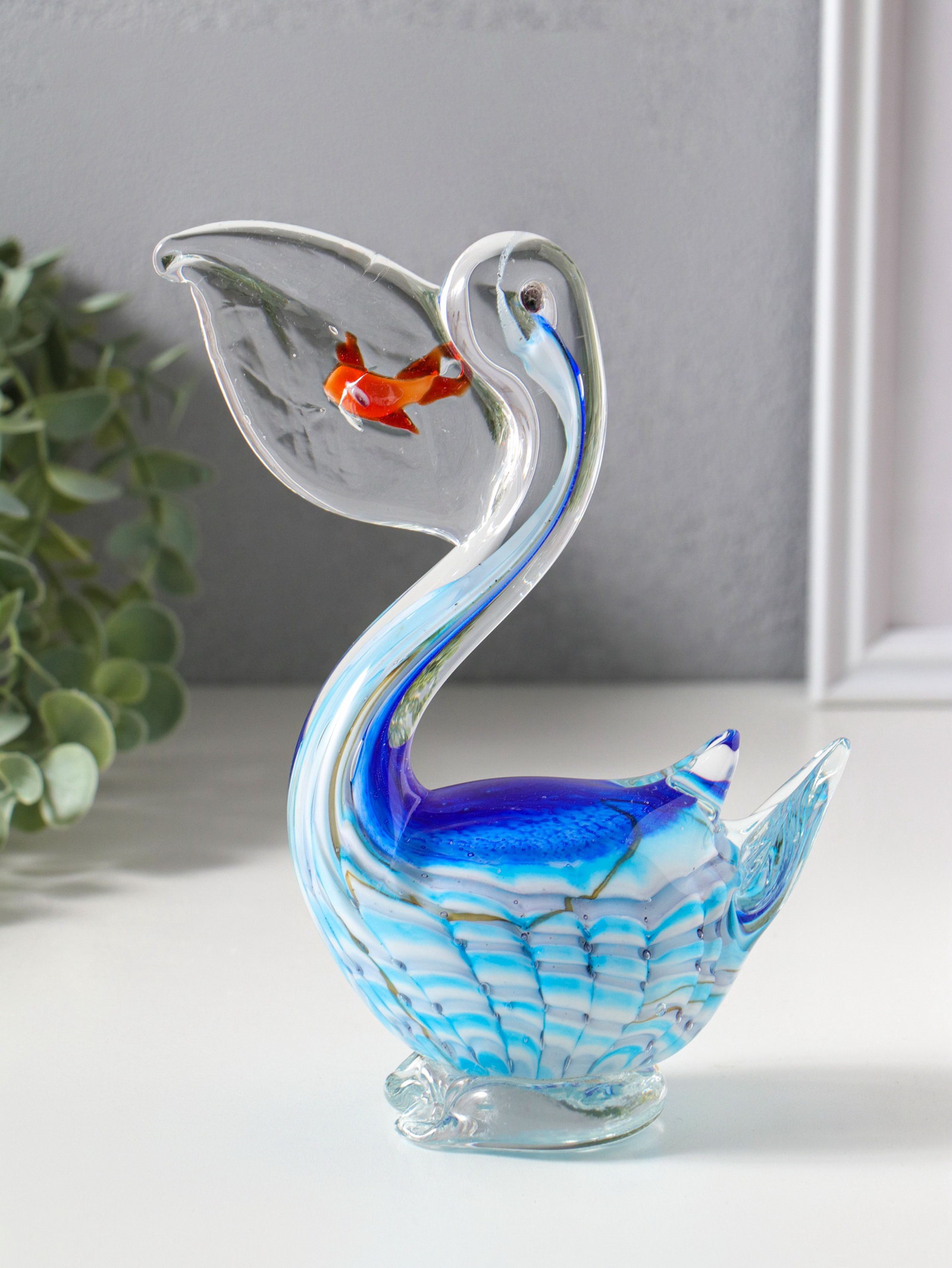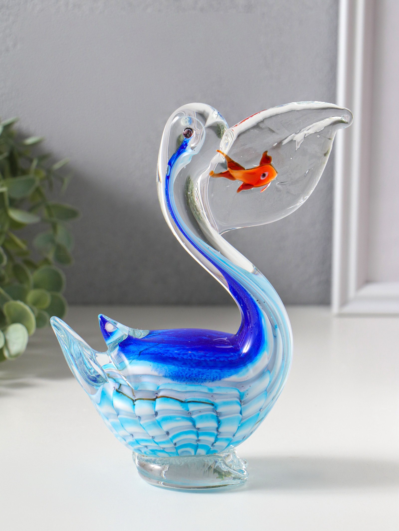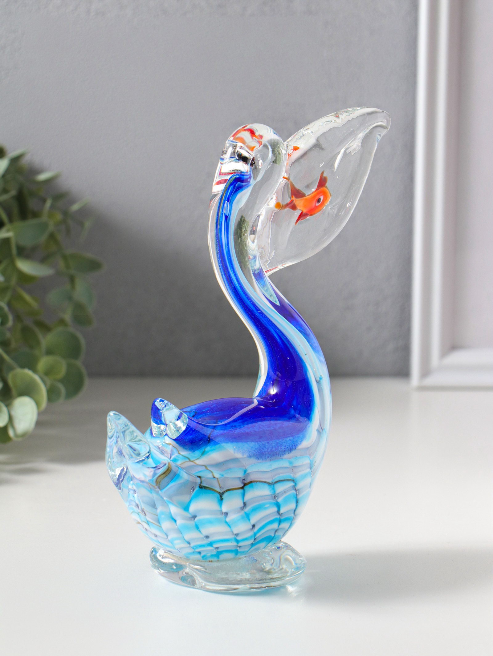 Фигурка стекло "Пеликан с рыбкой в клюве", под муранское стекло, 7.5x14x17 см, 14x7.5x17 см., Китай