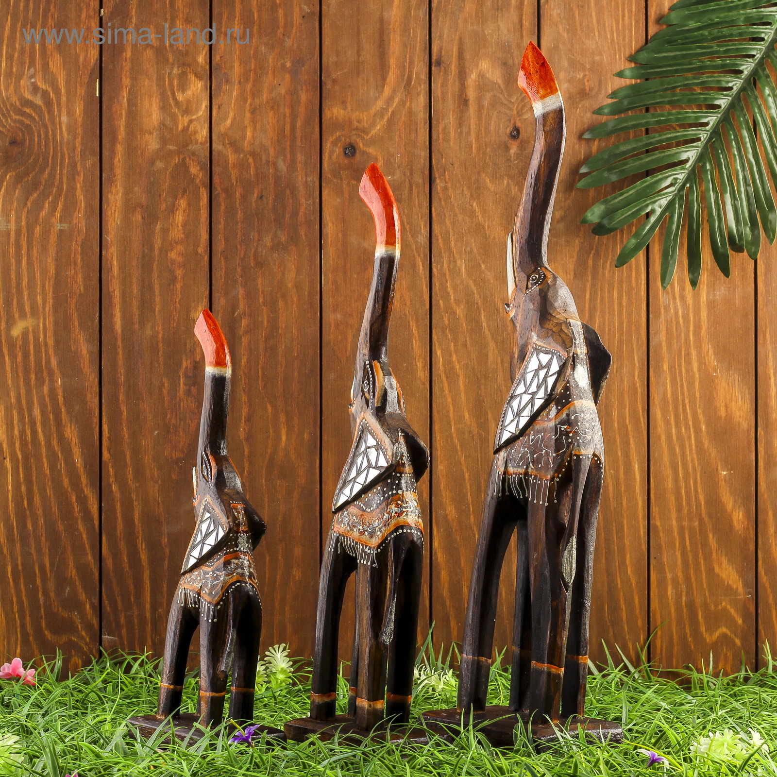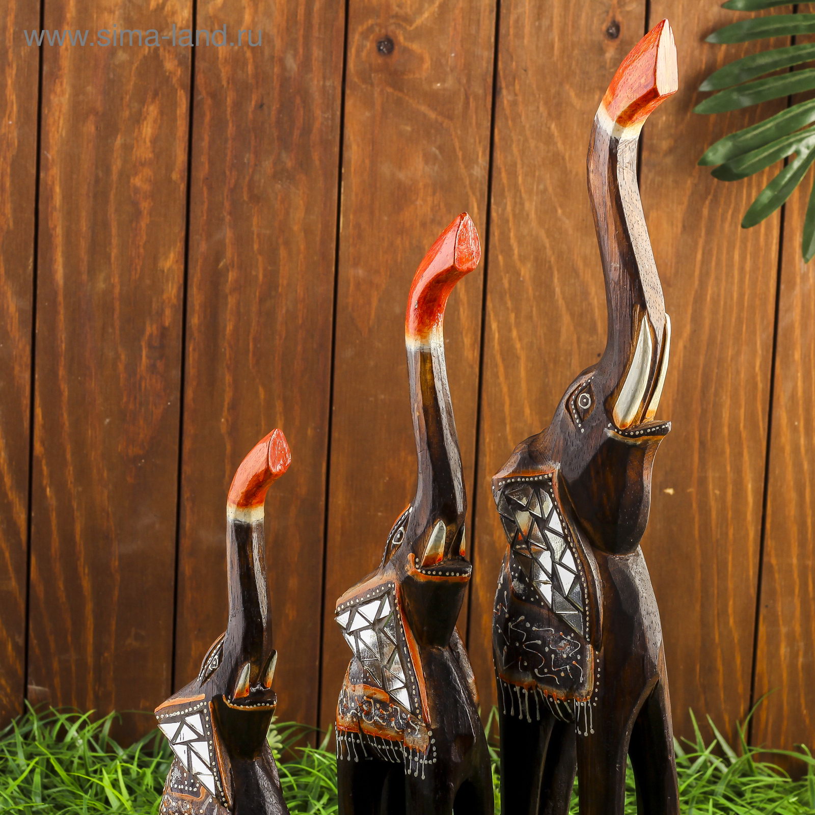 Набор сувенирный "Слоники", 12x18x50 см., Индонезия