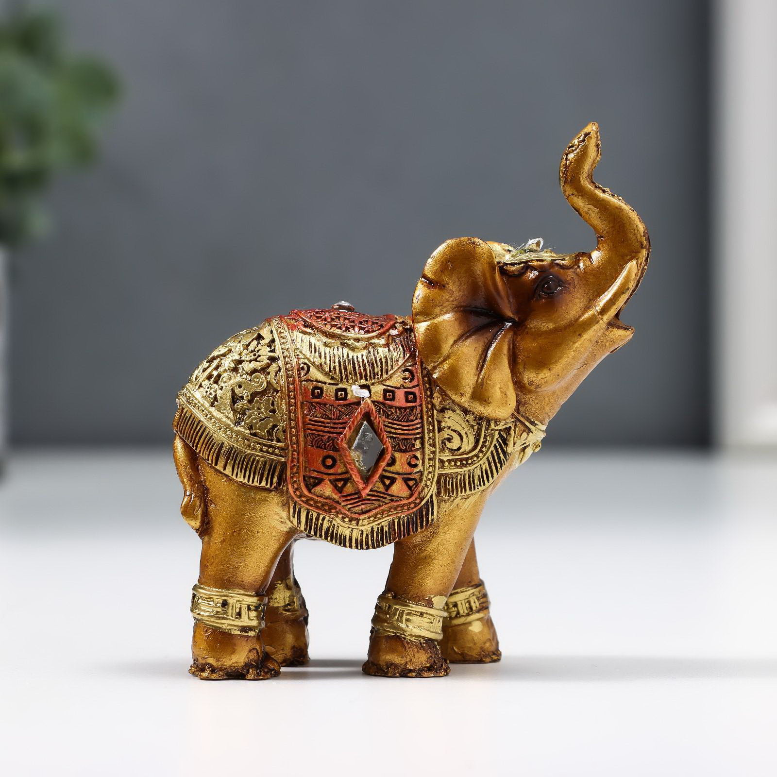 Фигурка полистоун "Африканский слон в золотой, ажурной попоне", 8.5x7x3 см, МИКС, 7x3x8.5 см., Китай