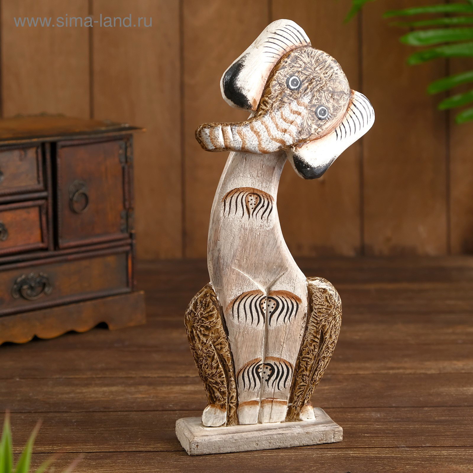 Сувенир на подставке "Слоник" дерево 14х4.5х30 см, 4.5x14x30 см., Индонезия