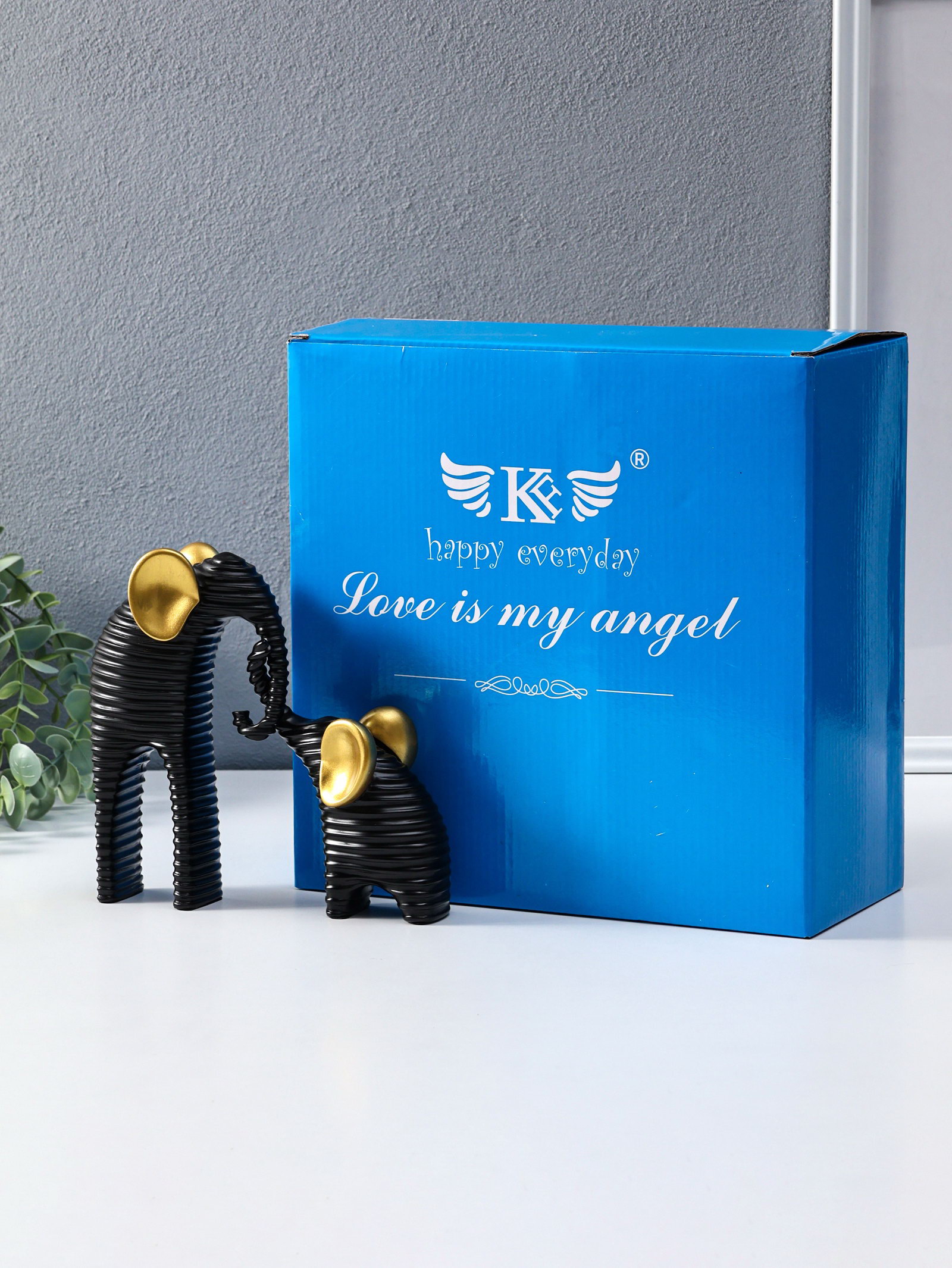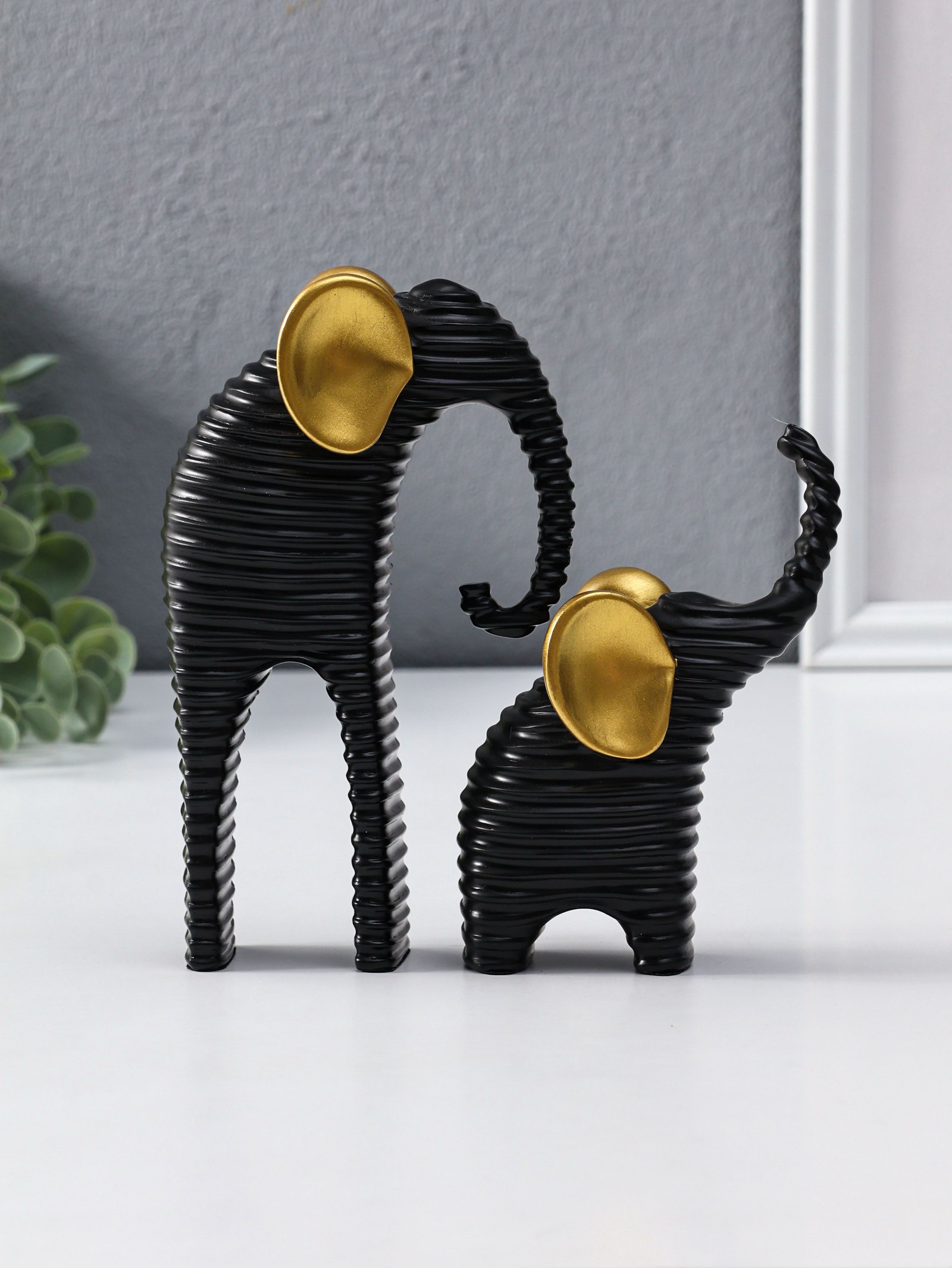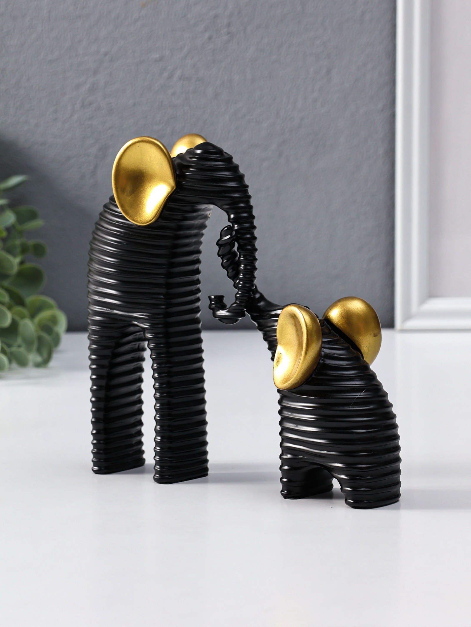 Сувенир полистоун "Слон со слонёнком. Гофре" чёрный с золотом набор 2 шт 5.5х16.5х16.5 см, 16.5x5.5x16.5 см., Китай