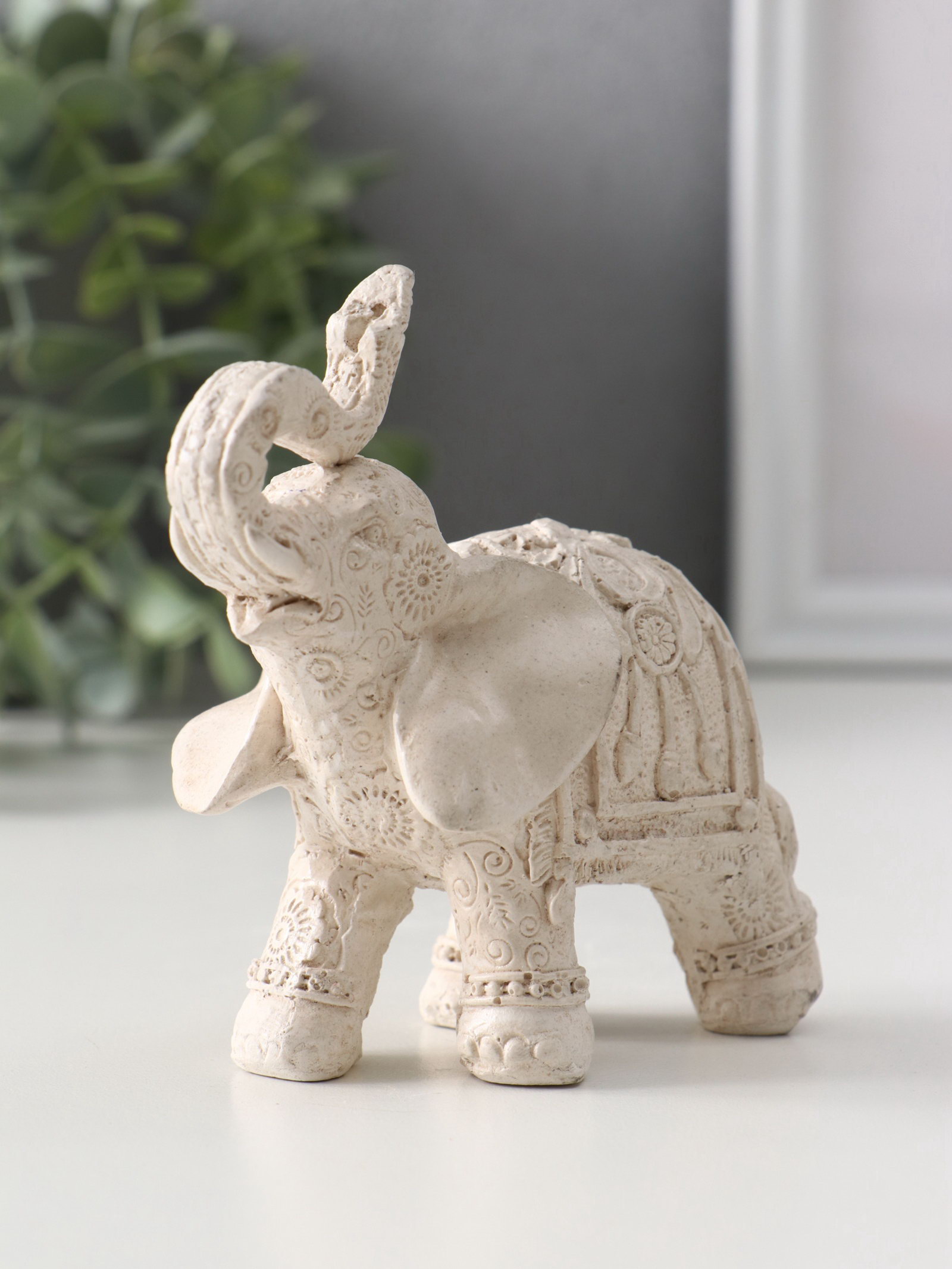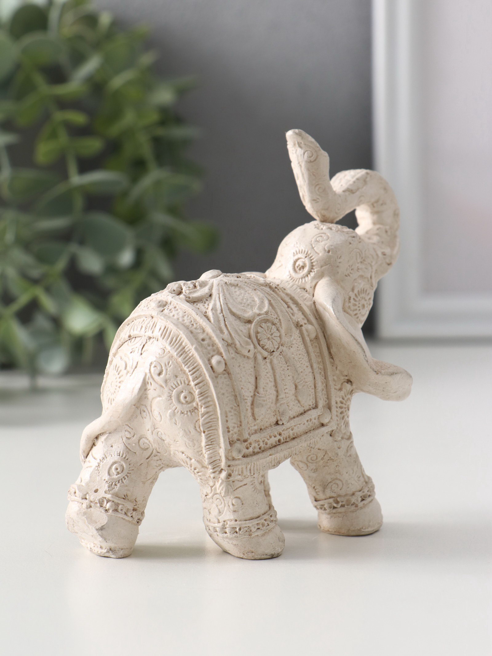 Фигурка гипс "Слон Махараджа", 10x5.5x9.5 см, слоновая кость, Хорошие сувениры, Россия