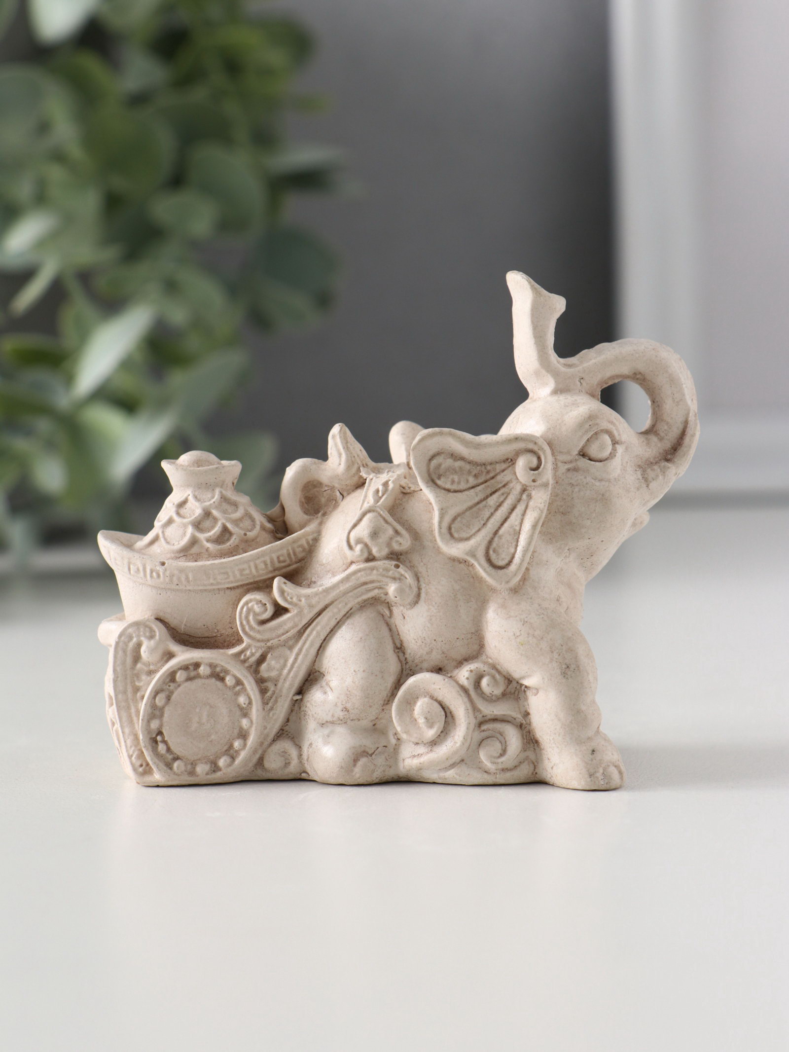 Фигурка гипс "Слоник с мешком денег", 6.5x4x8.5 см, слоновая кость, Хорошие сувениры, Россия