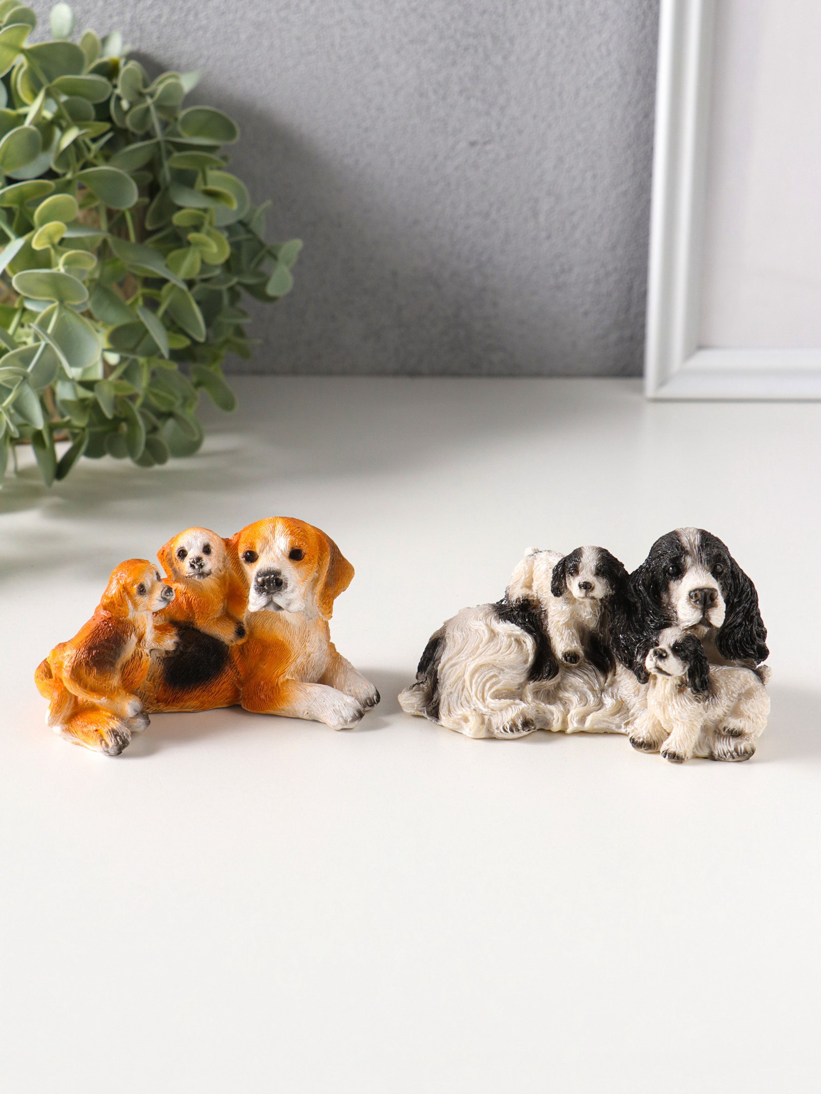 Набор фигурок 2 шт. полистоун "Собаки с щенками", 5.5x9.5x5.5 см, 9.5x5.5x5.5 см., Китай