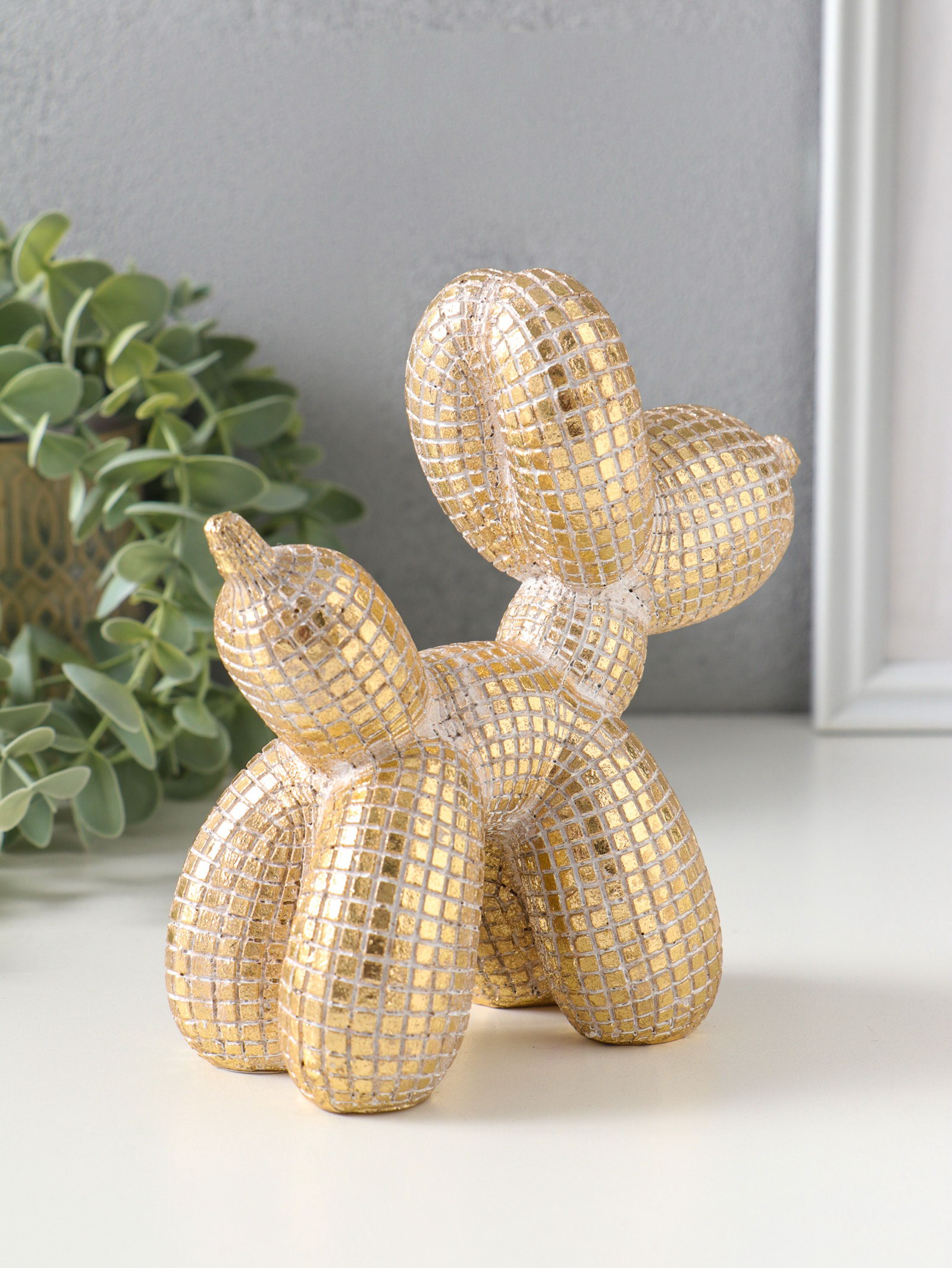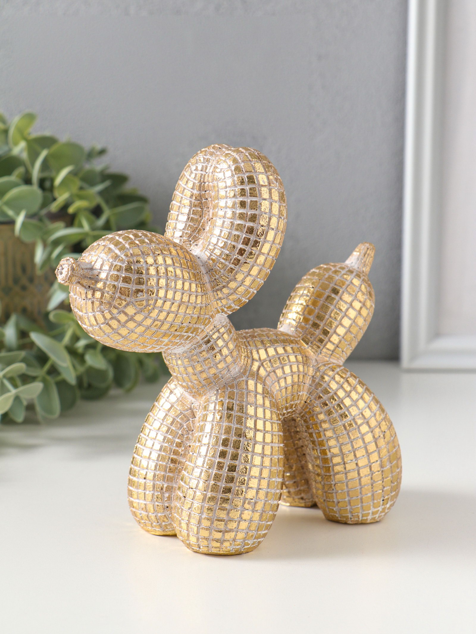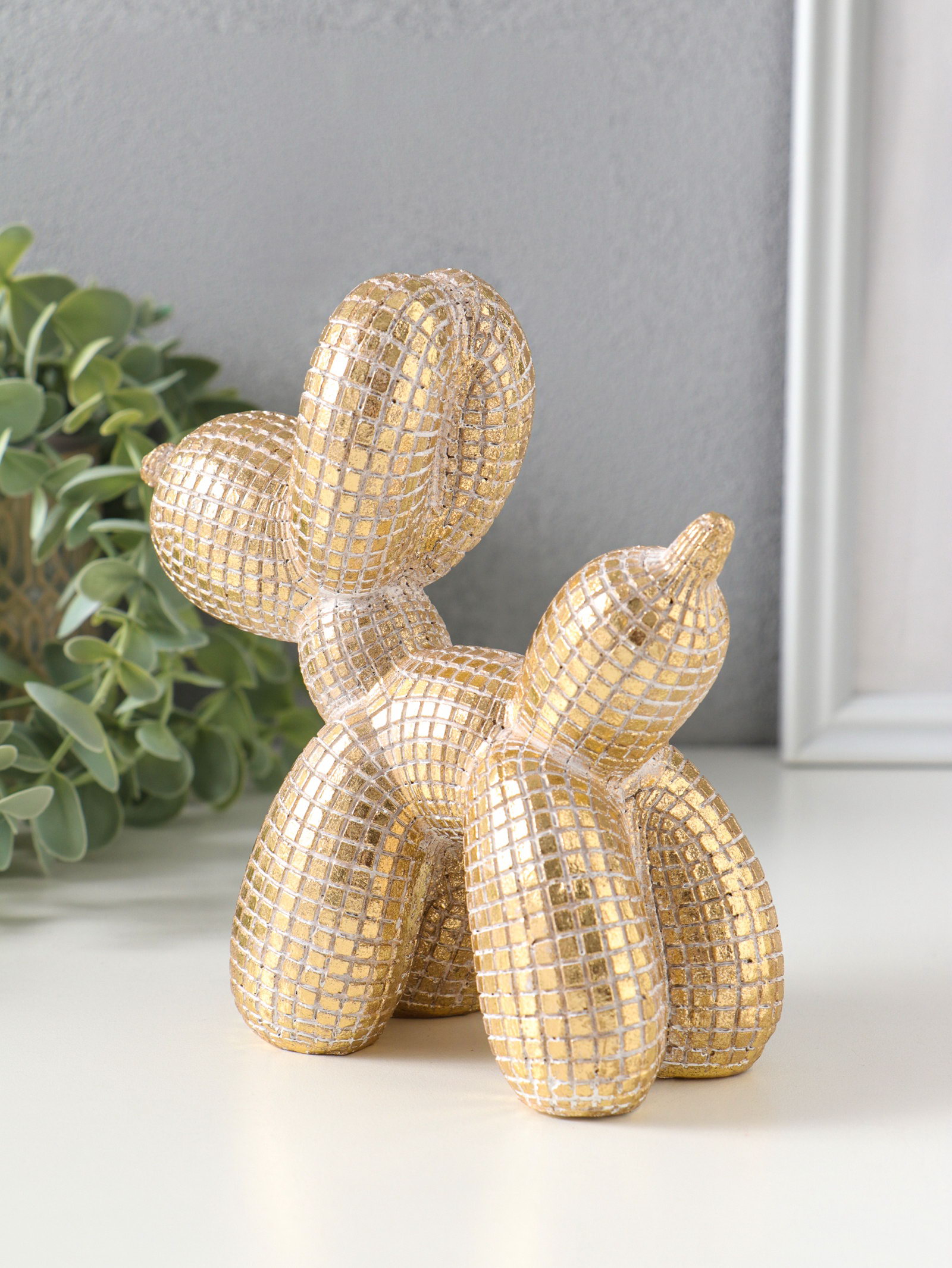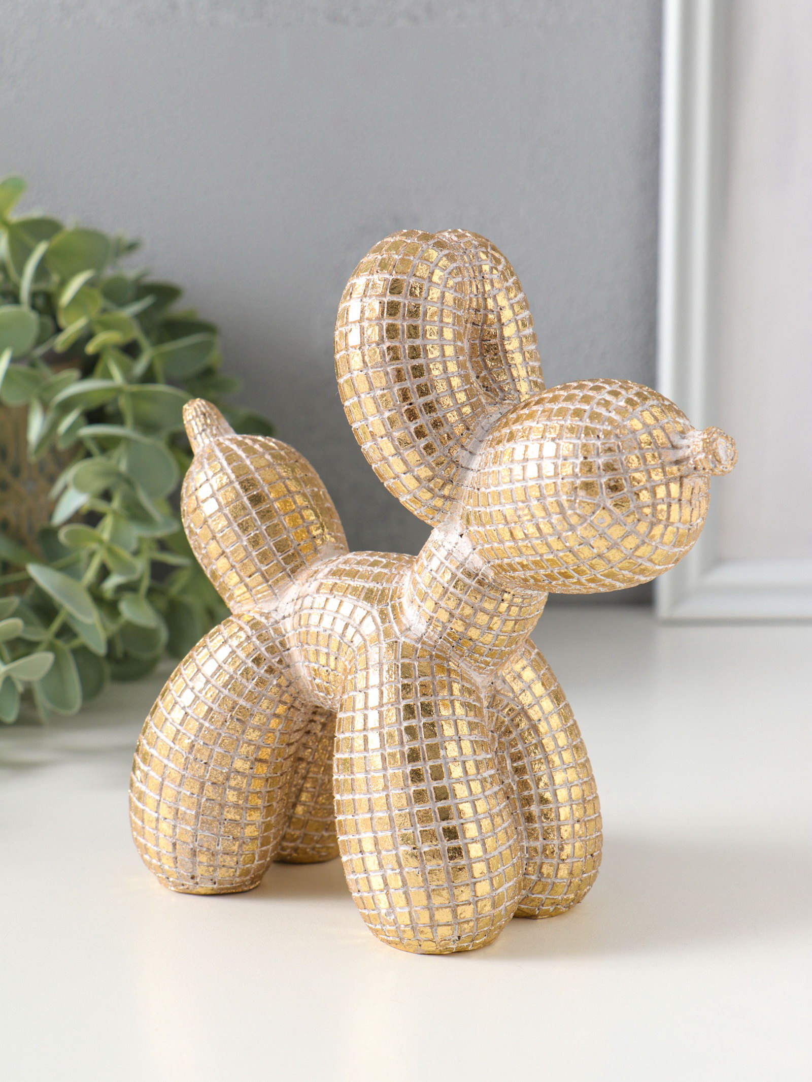 Сувенир полистоун "Воздушный шарик - собачка, в клеточку" золото 15х6.7х15 см, 6.7x15x15 см., Китай