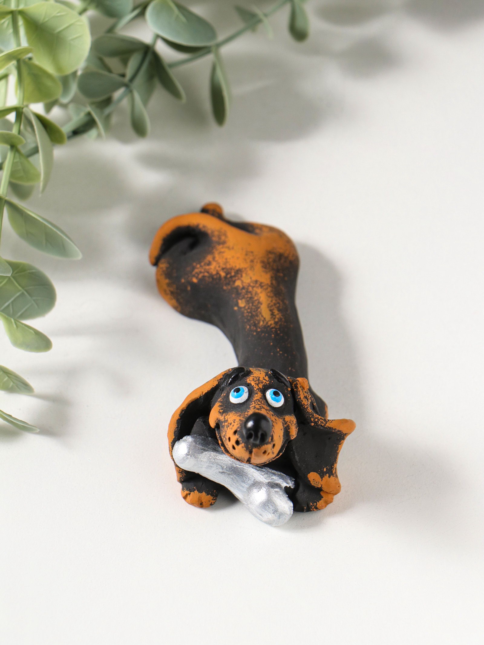 Фигурка "Такса с костью", 4.6x4.5x10.6 см, Хорошие сувениры, Россия