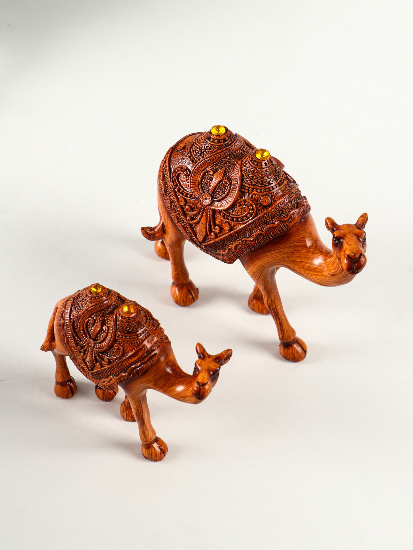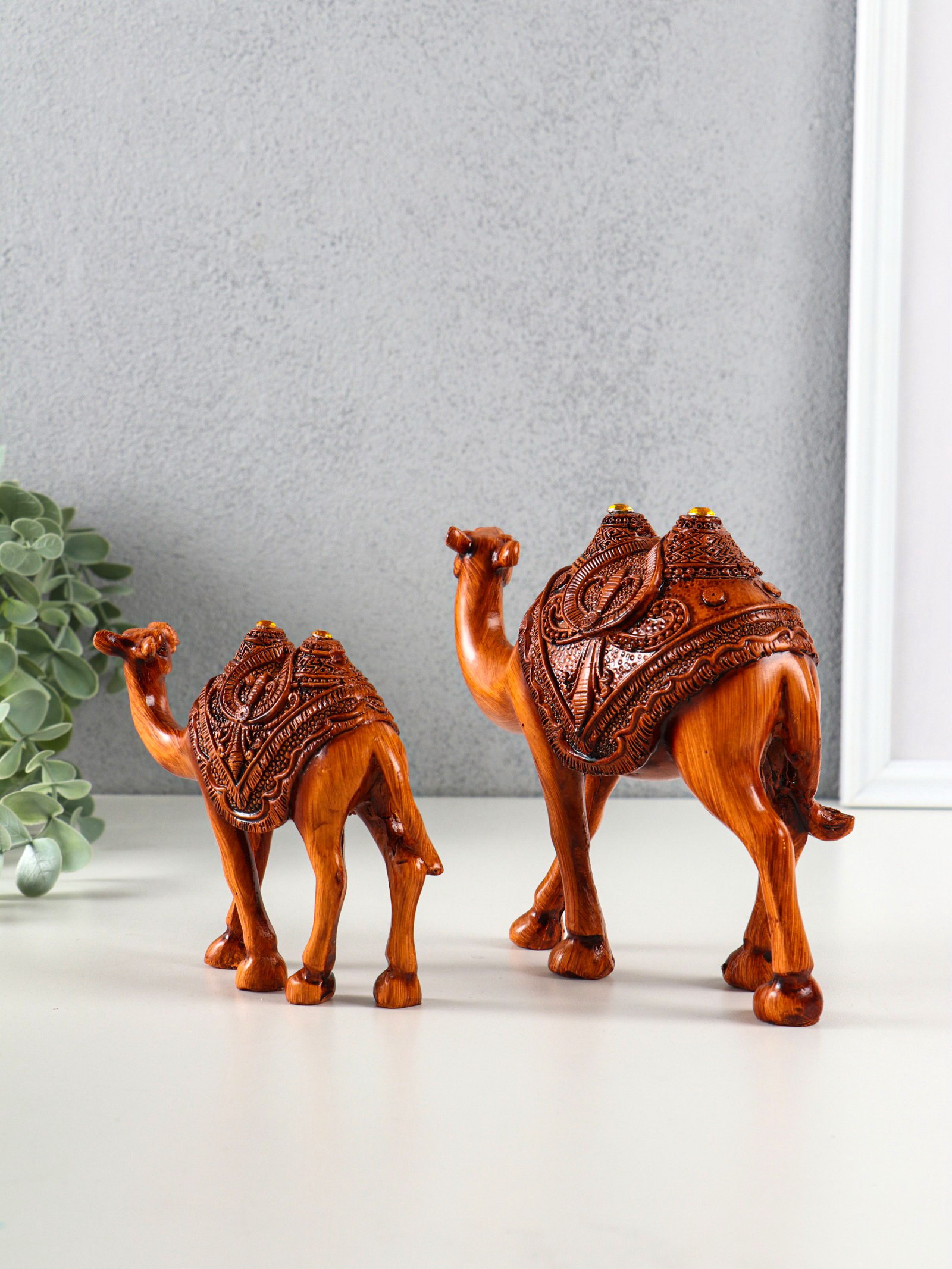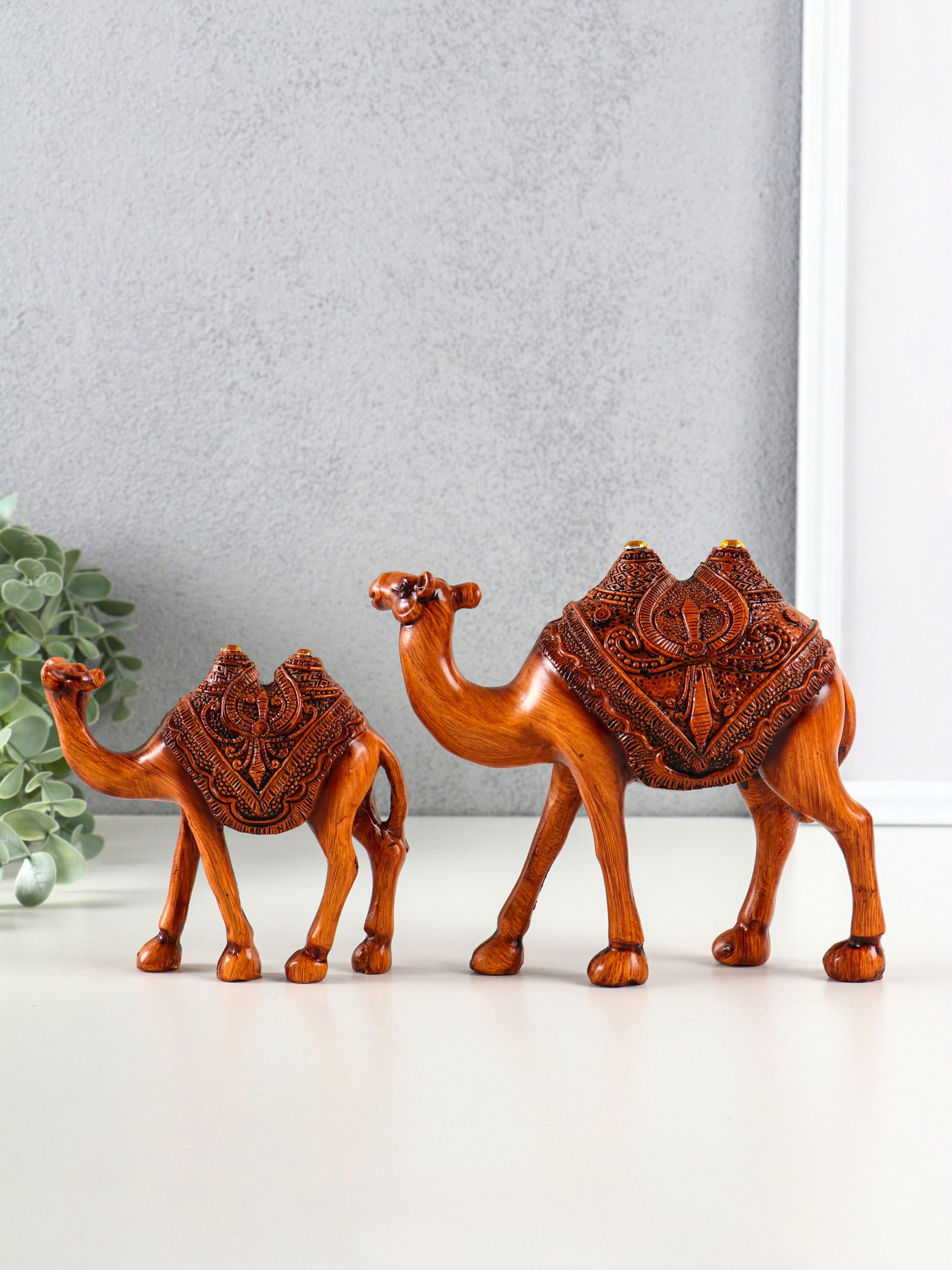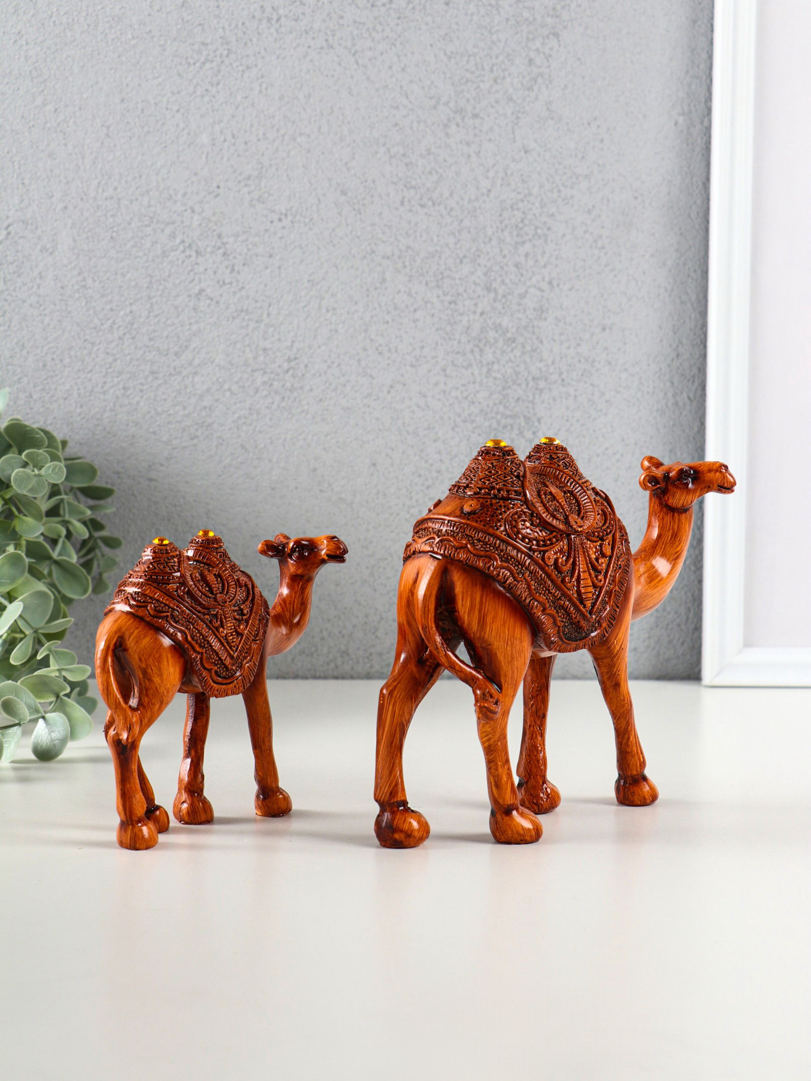 Сувенир полистоун "Двугорбые верблюды" под дерево набор 2 шт 14х4.5х12.5 16.5х5.5х14.5 см, Китай