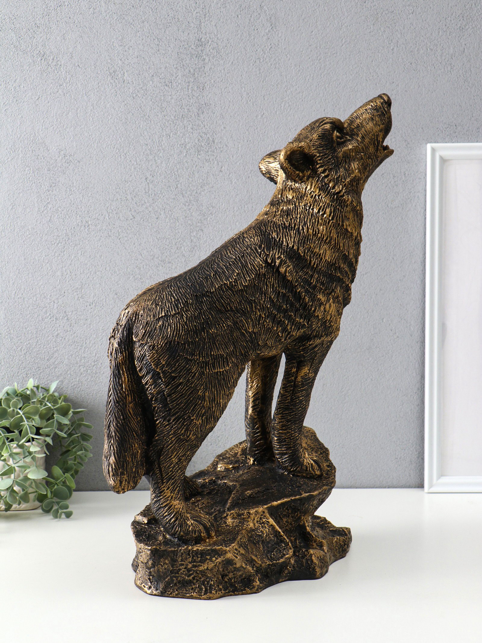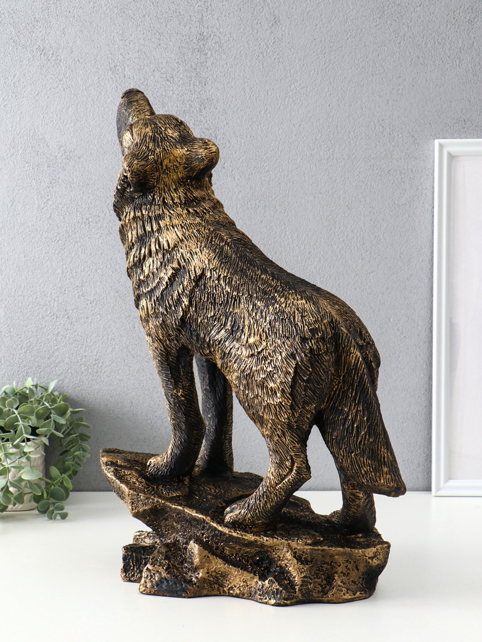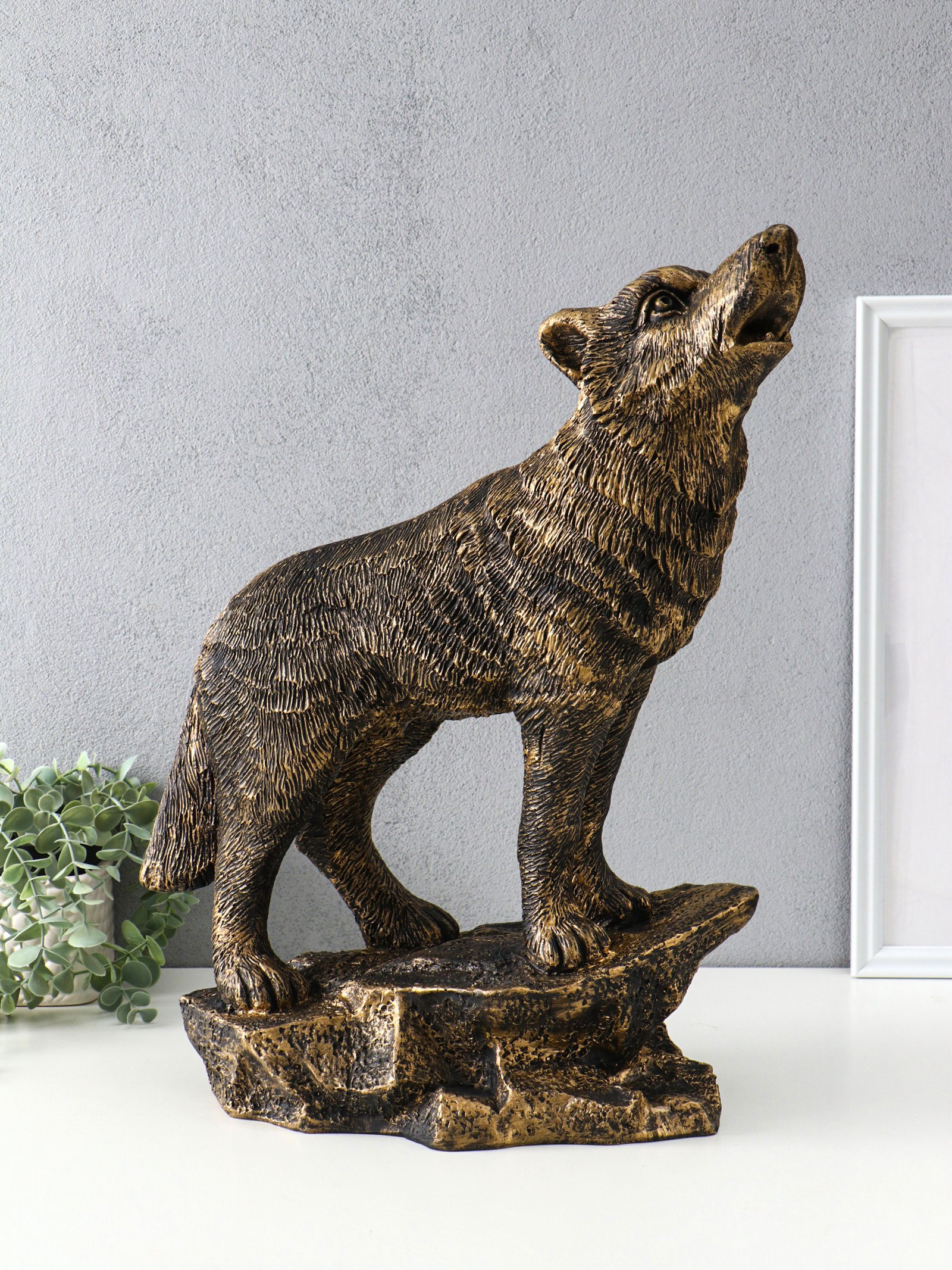 Фигура полистоун "Волк на скале", 50x37x22 см, под бронзу, Хорошие сувениры, Россия