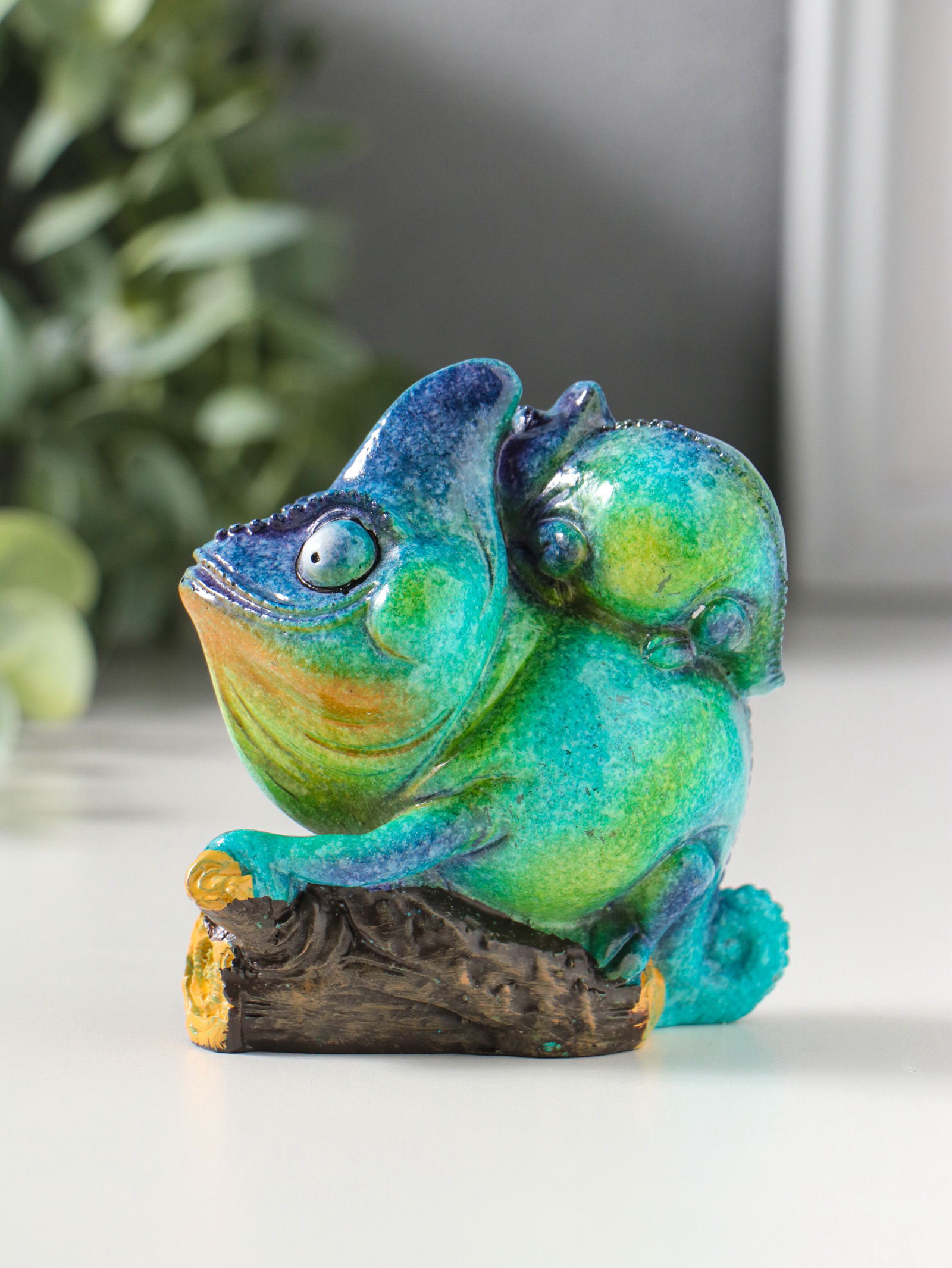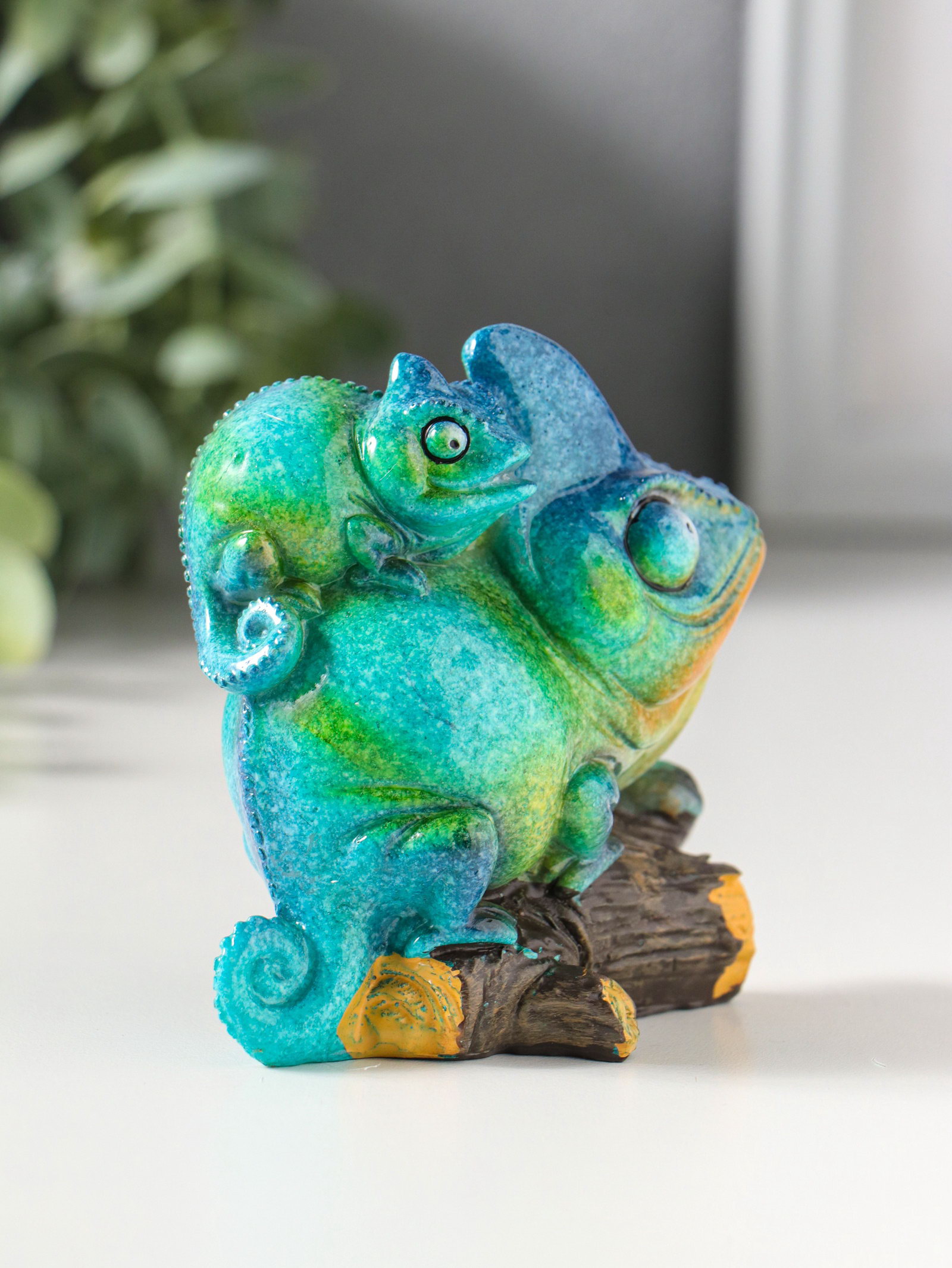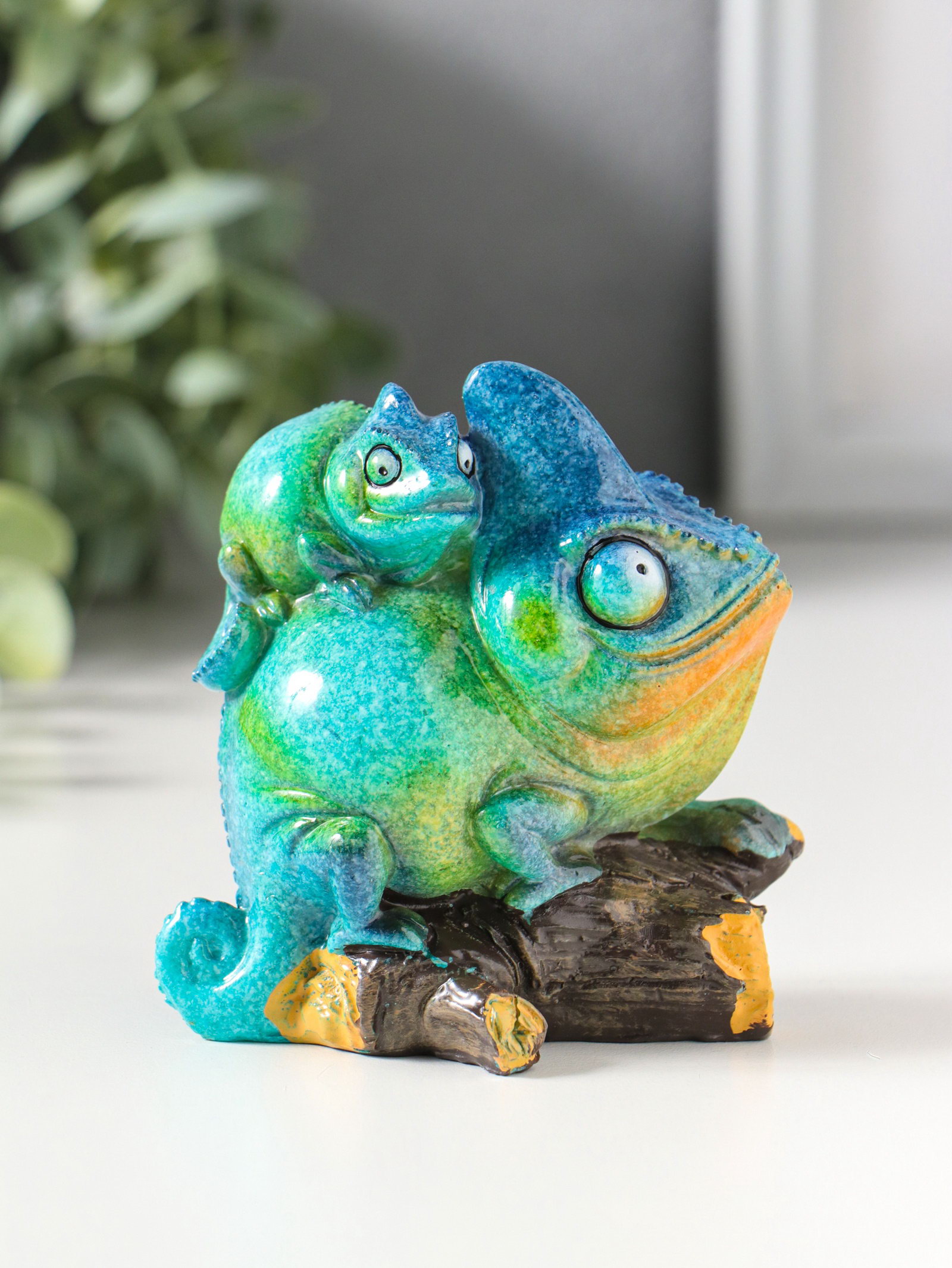 Фигурка полистоун лак "Хамелеон с детёнышем на спине", сине-зелёный, 8.5x5.2x8.5 см, 5.2x8.5x8.5 см., Китай