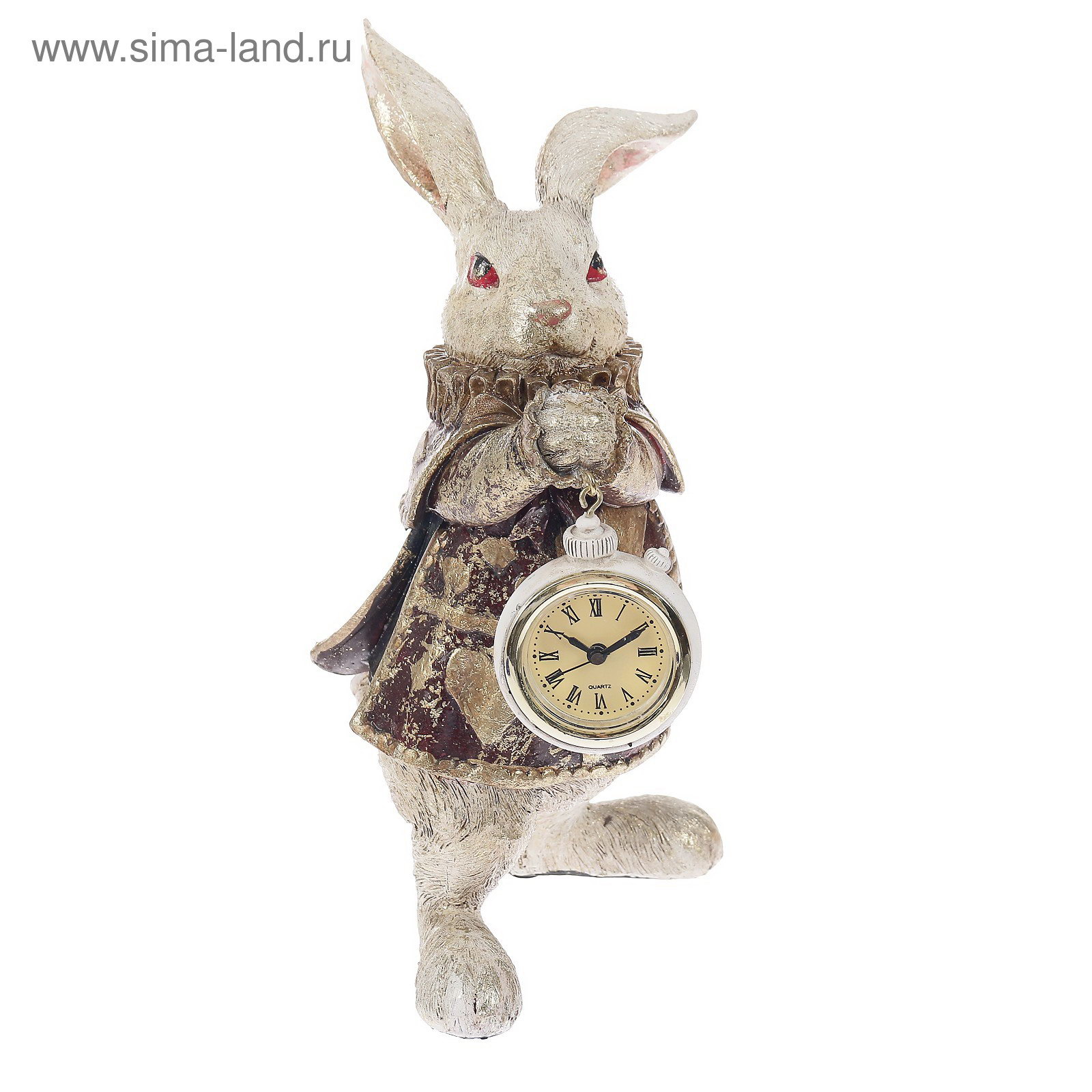 Сувенир полистоун с часами "Белый кролик в камзоле" 25х10х13.5 см, 10x13.5x25 см., Китай