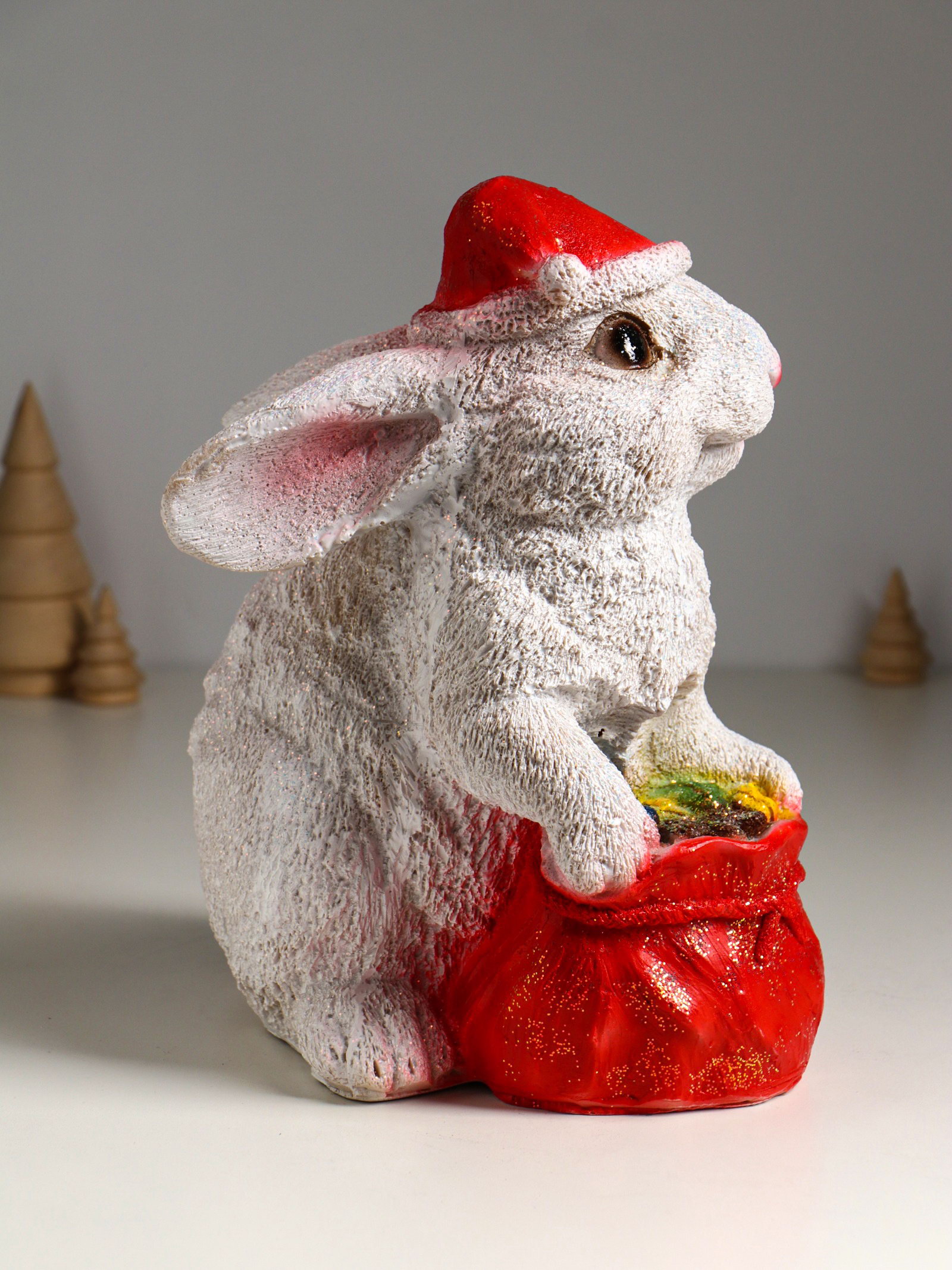 Копилка для денег "Зайчик с мешком", полистоун, с глиттером, 28 см, Хорошие сувениры, Россия