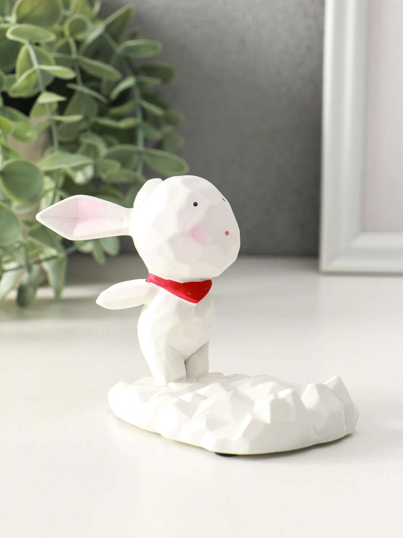 Фигурка - подставка для телефона "Зайка с шейным красным платком", 6.5x9x8.5 см, 9x6.5x8.5 см., Китай
