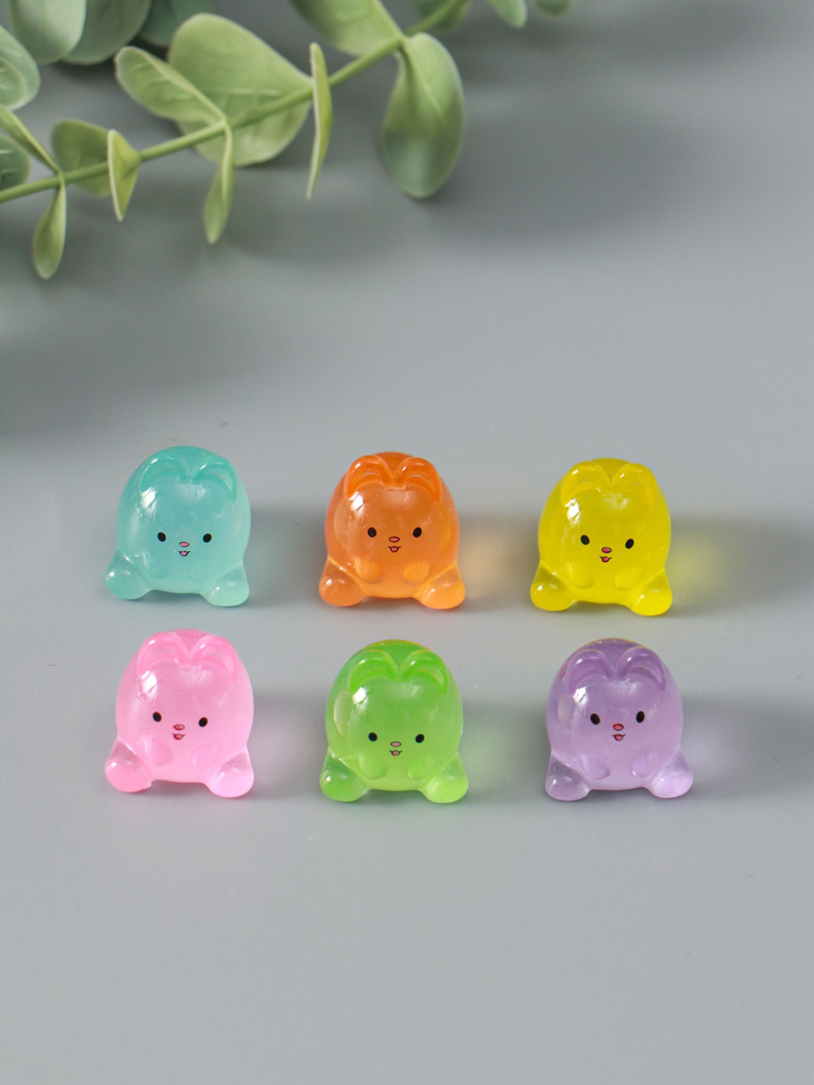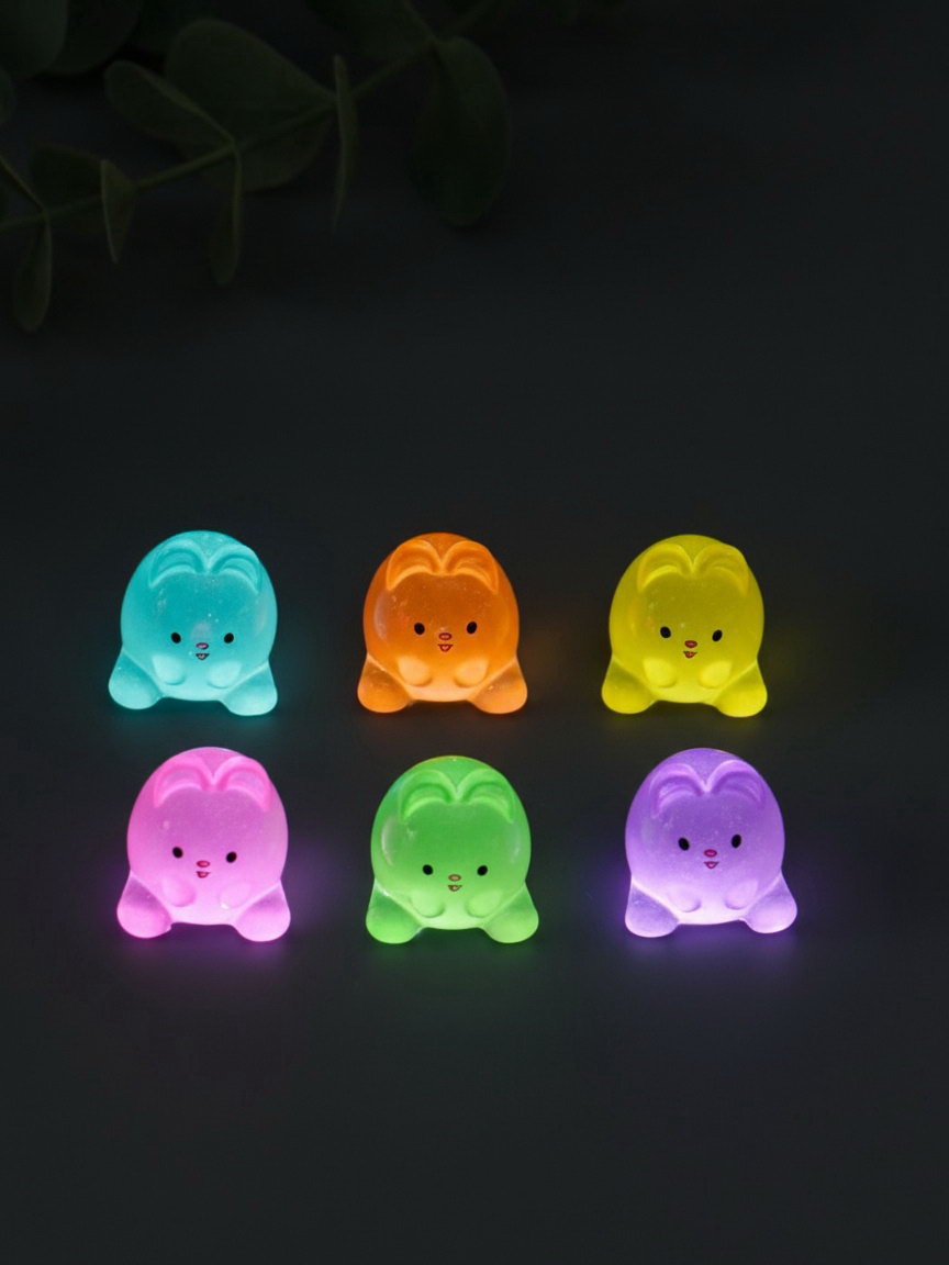 Набор фигурок из эпоксидной смолы флуоресцентные "Зайчики", 6 шт., 1.7x1.8x2 см, 1.8x1.7x2 см., Китай