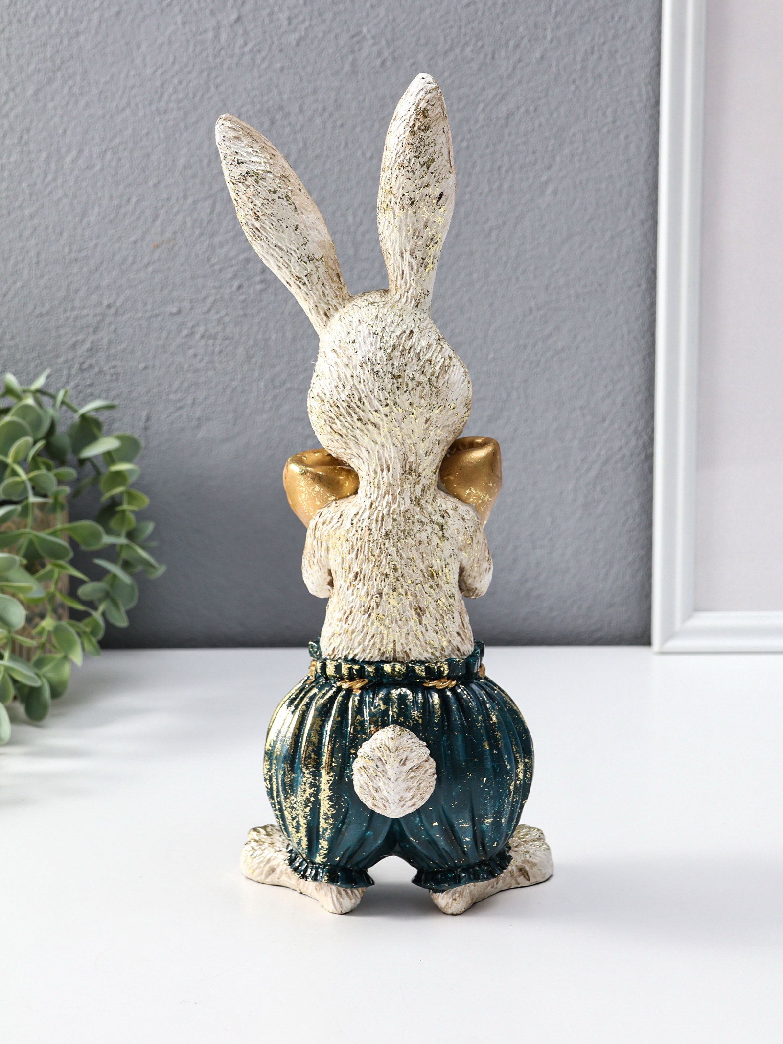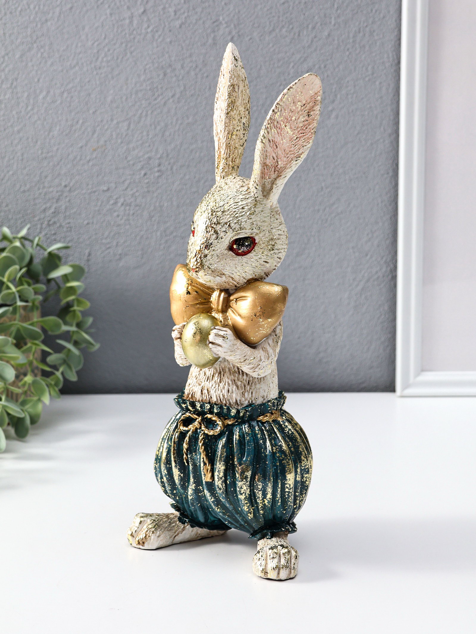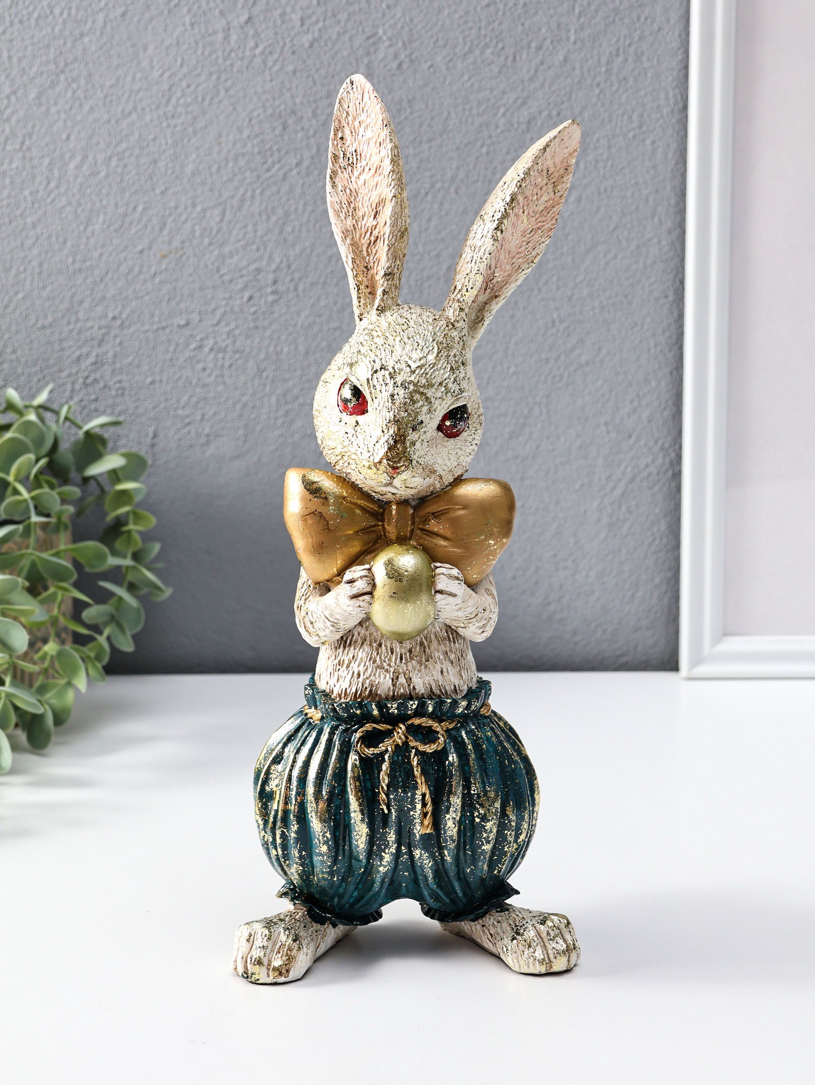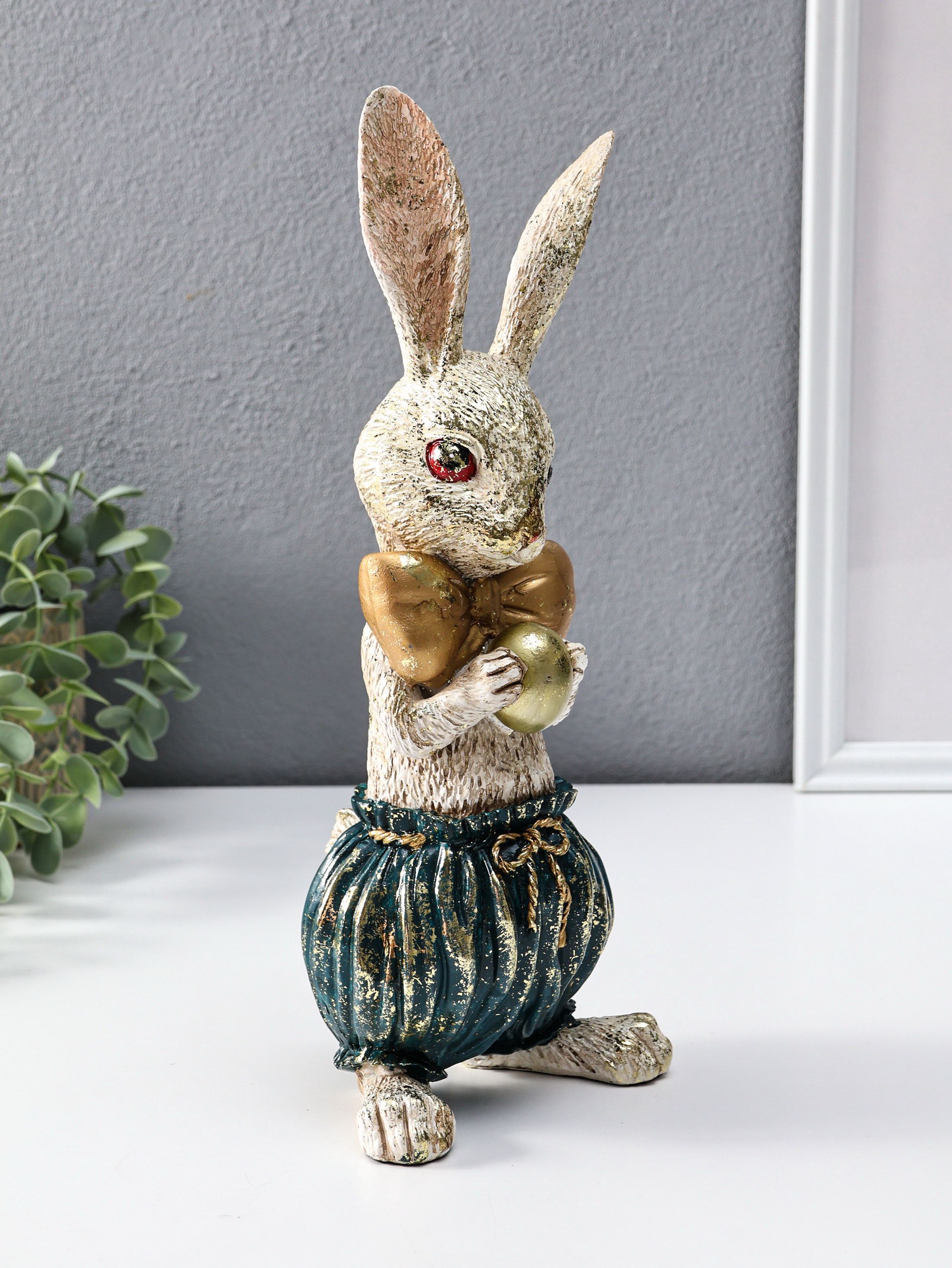 Фигура полистоун "Зайчик с золотым яичком", 12x9.5x30 см, 9.5x12x30 см., Китай