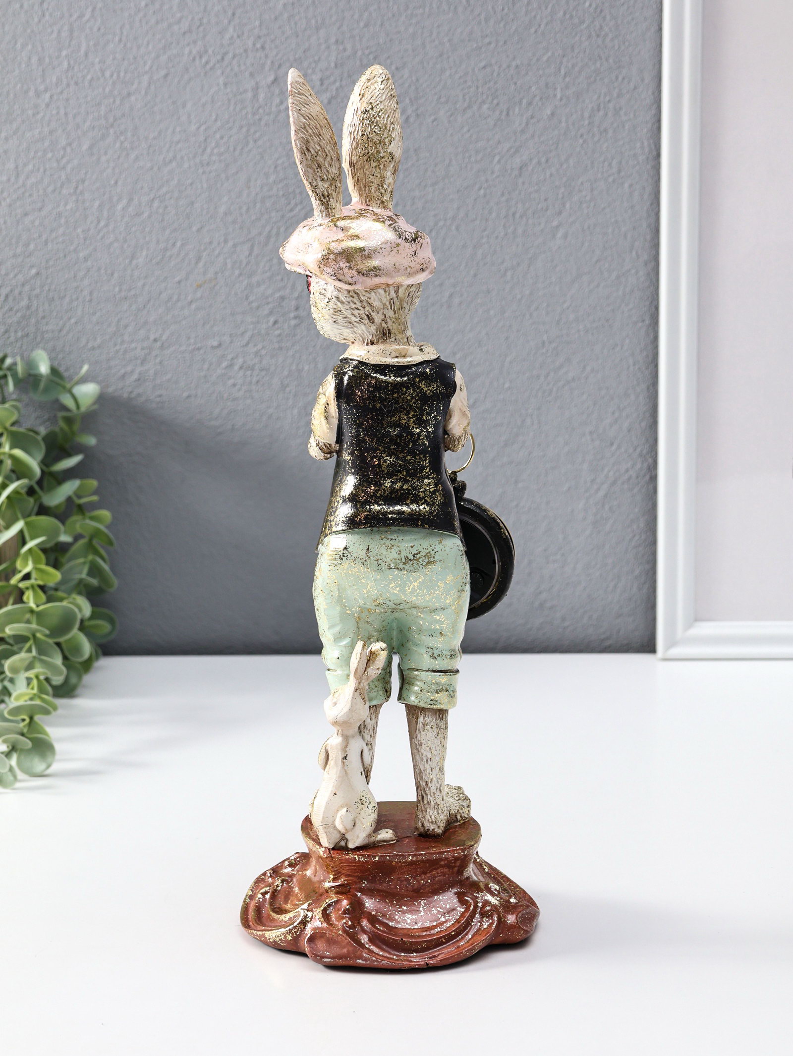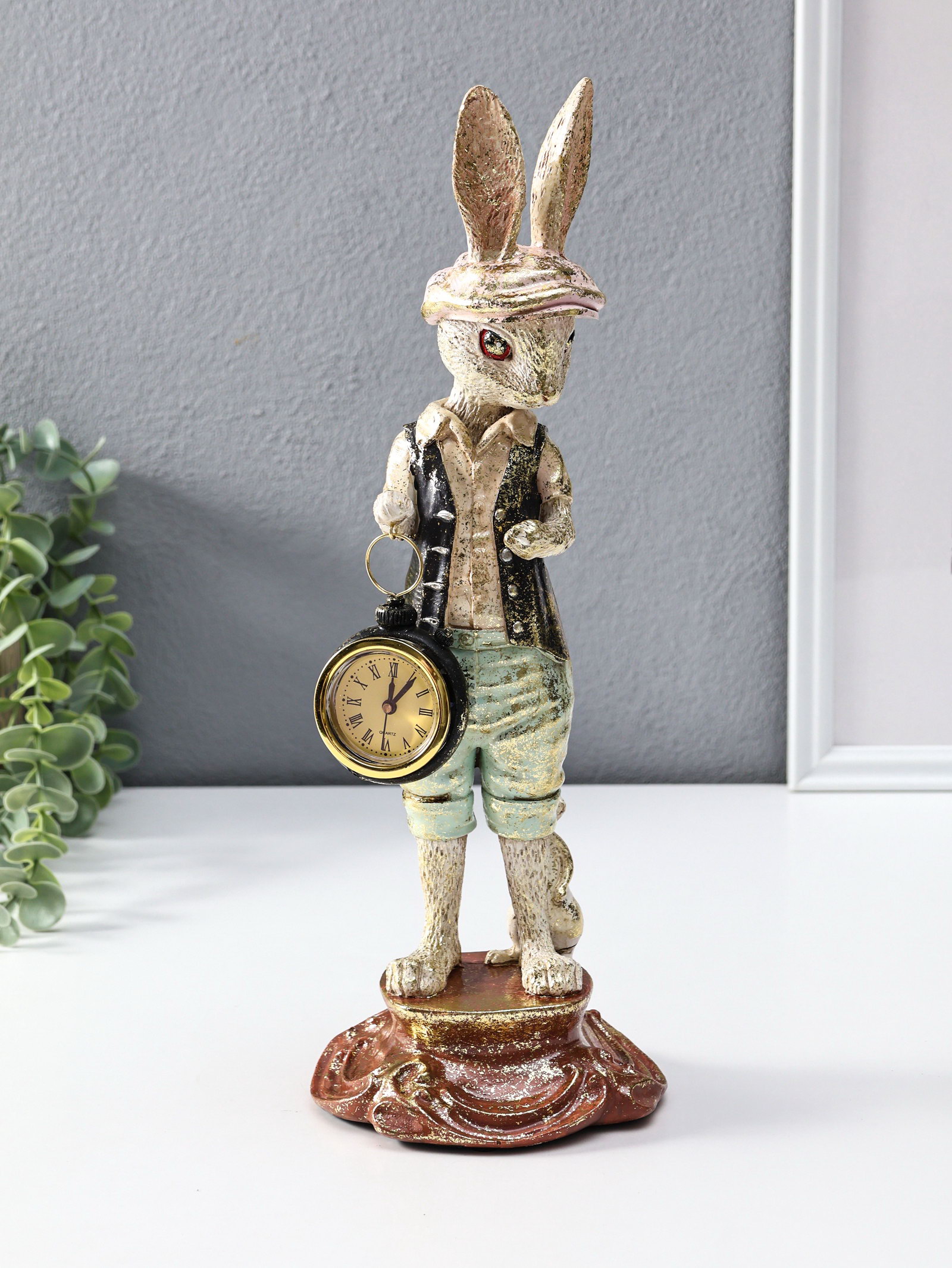 Фигура с часми настольными полистоун "Зайчик в кепке с часами", 12.5x12.5x35 см, 12.5x12.5x35 см., Китай