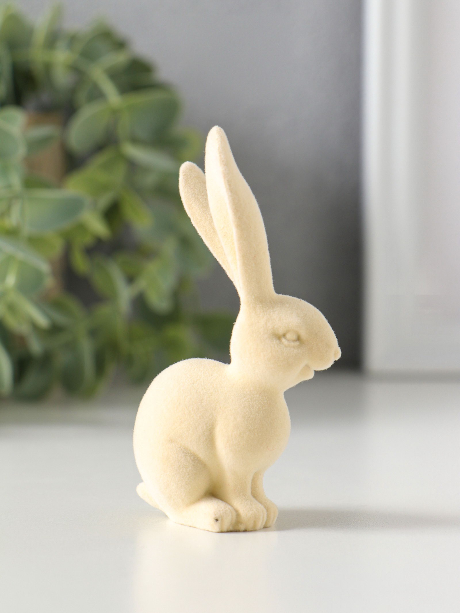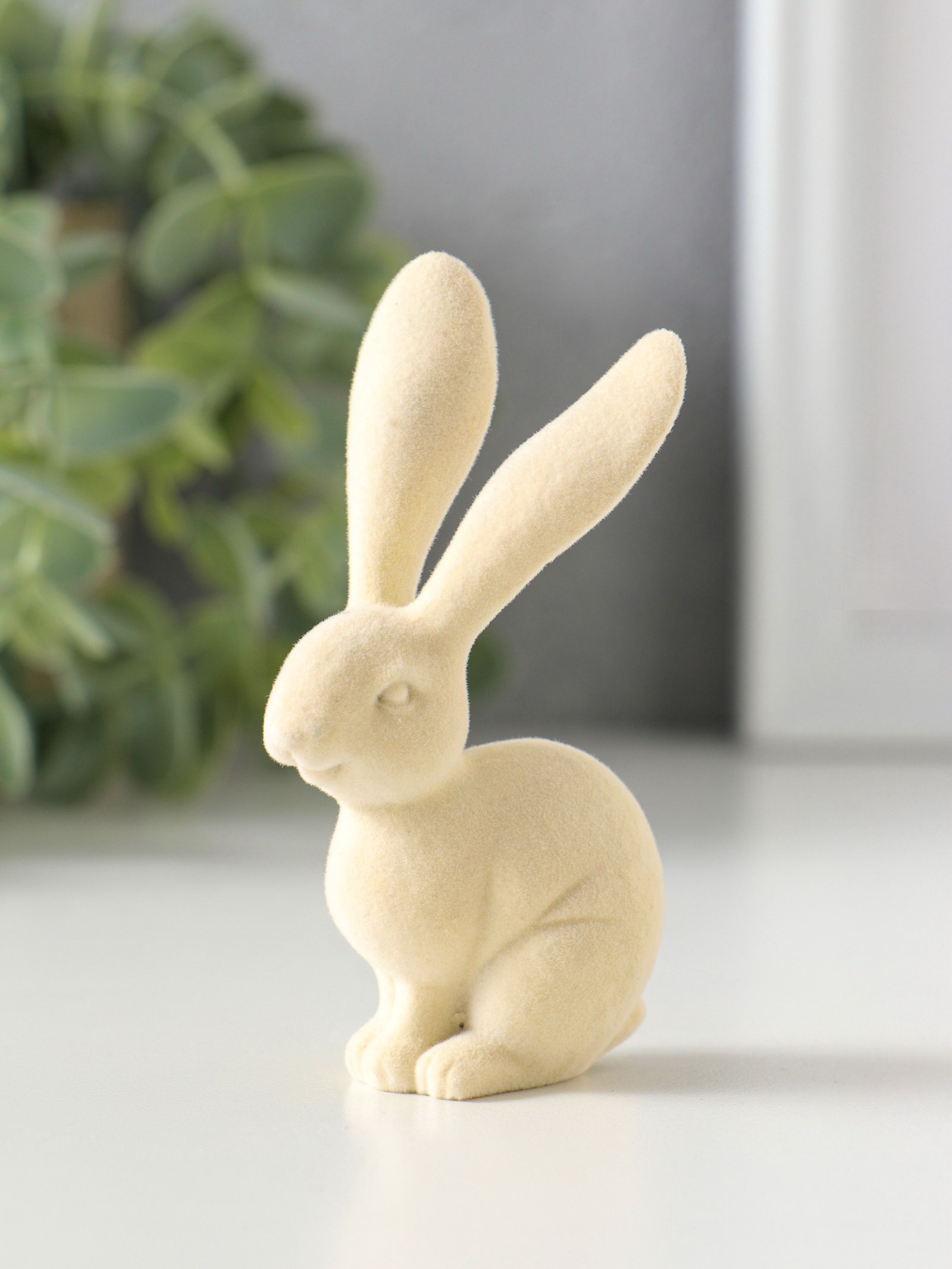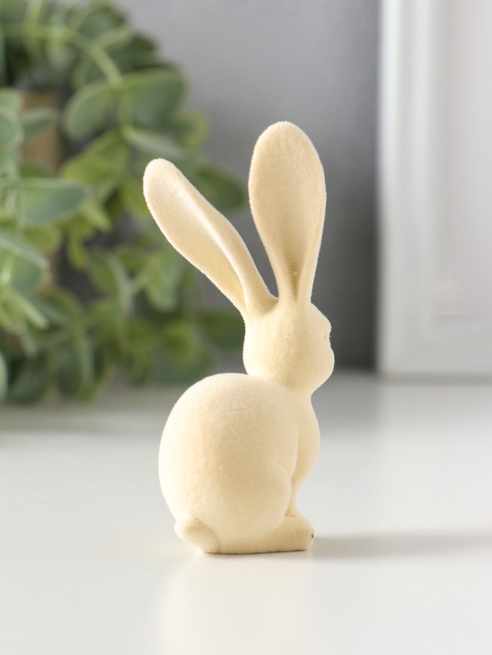 Сувенир полистоун, флок "Белый заяц" 3х4.5х8.5 см, 4.5x3x8.5 см., Китай