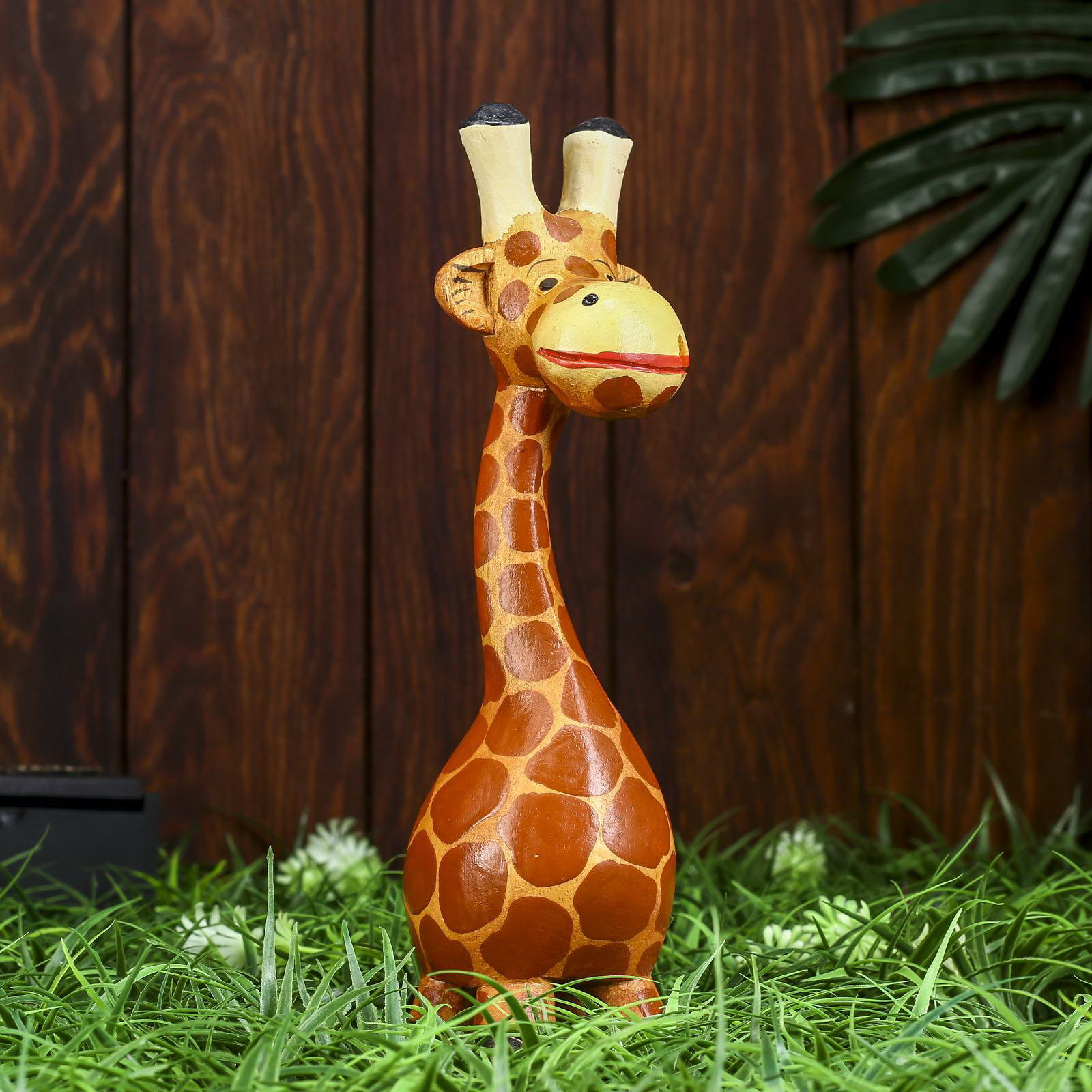 Сувенир "Жираф-толстячок", 27x7x7 см, дерево, 7x7x27 см., Индонезия