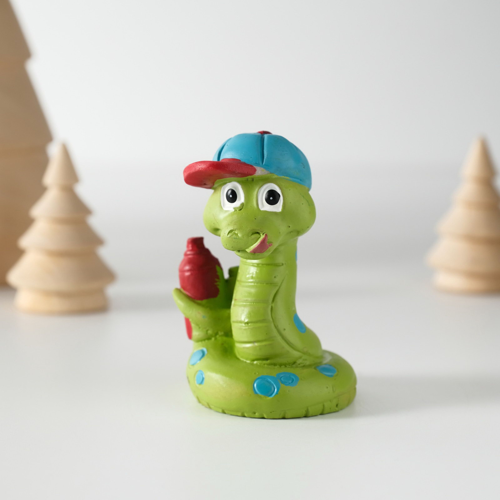 Фигурка полистоун "Змей в кепке, с баллончиком", 4.5x6 см, Китай
