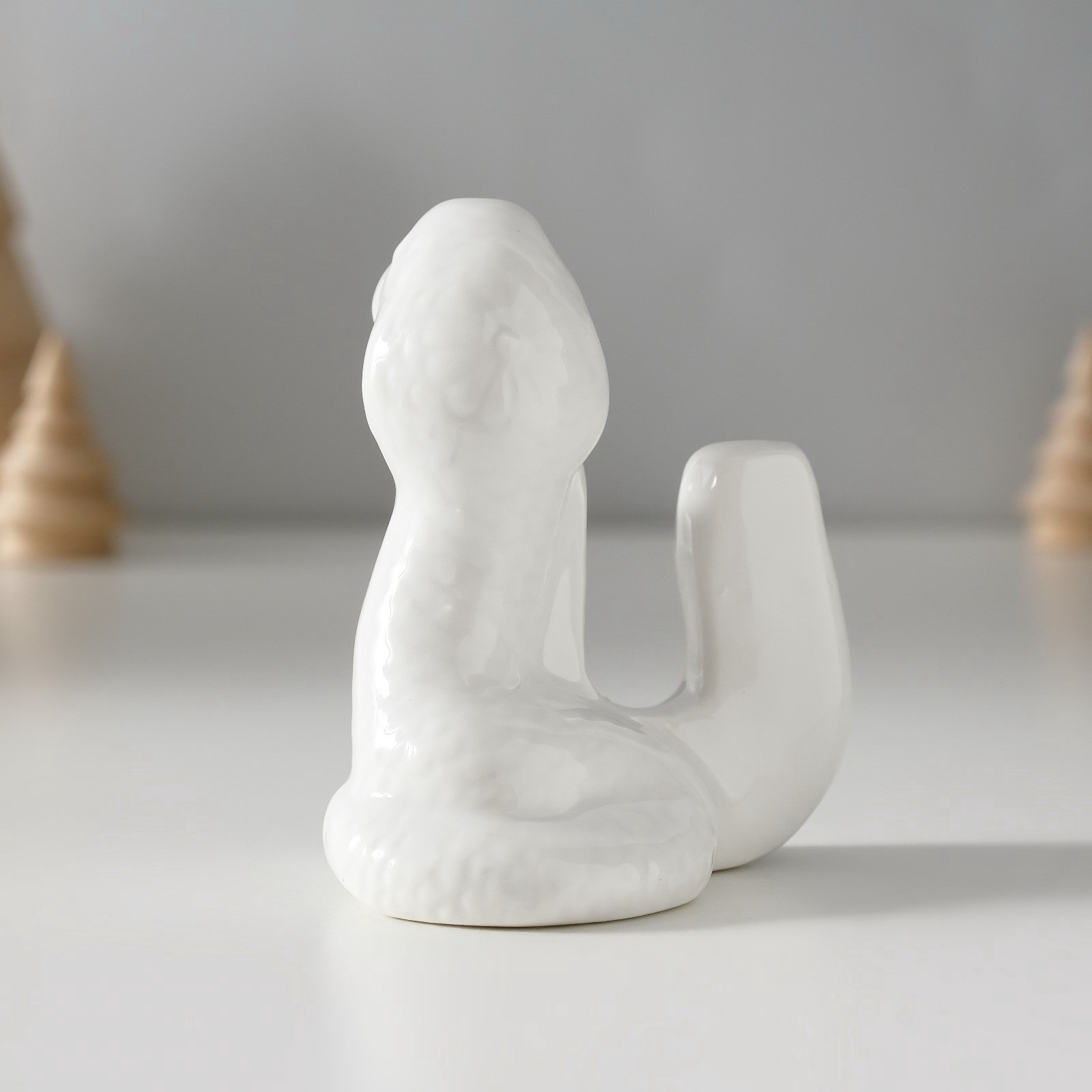 Фигурка керамика "Белая кобра с подковой: Удачи", 5x7x8.5 см, 7x5x8.5 см., Китай