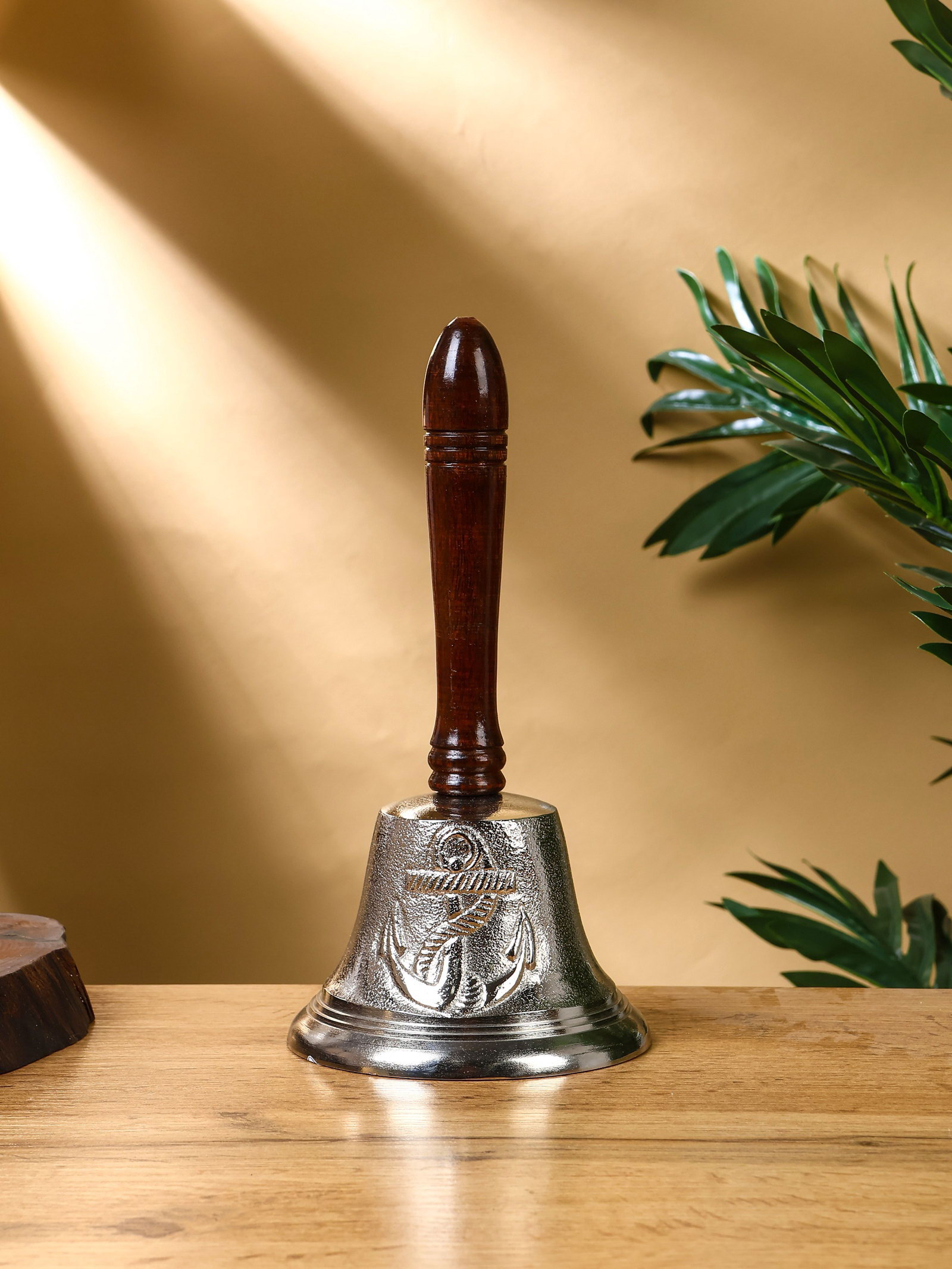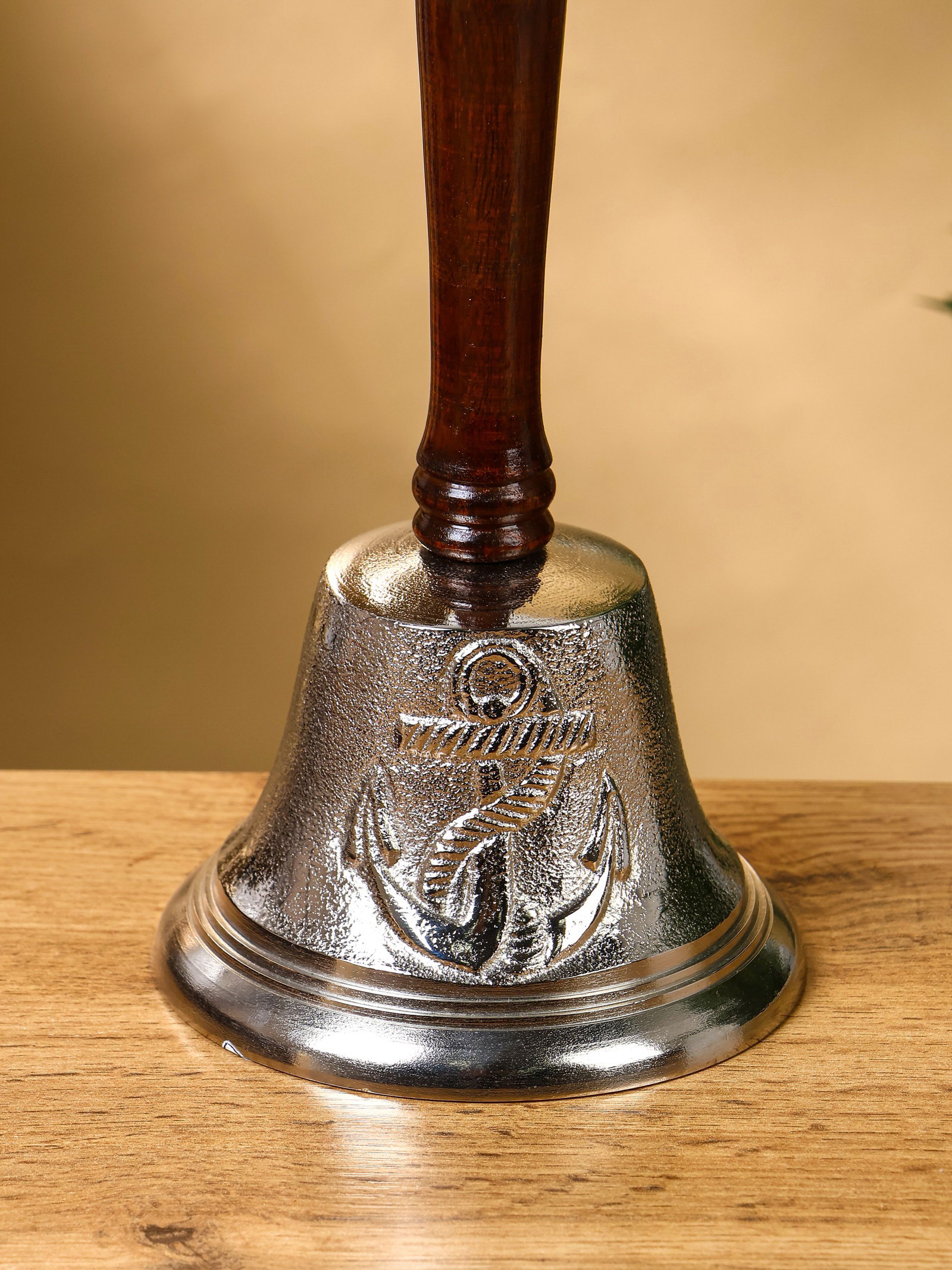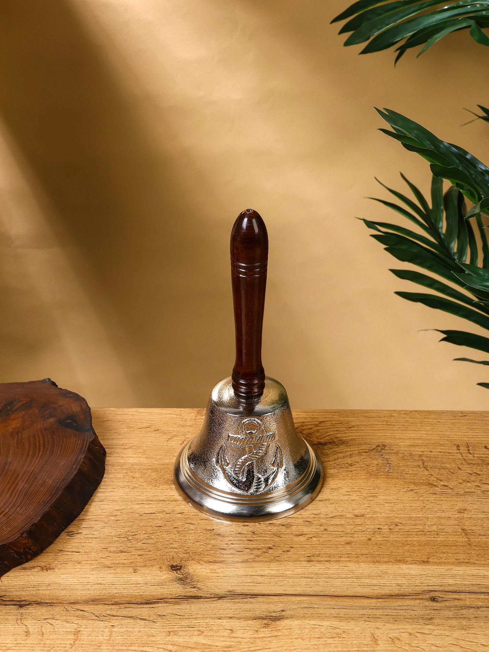 Колокольчик "Якорь", 12x12x24 см, алюминий, с деревянной ручкой, 12x12x24 см., Индия