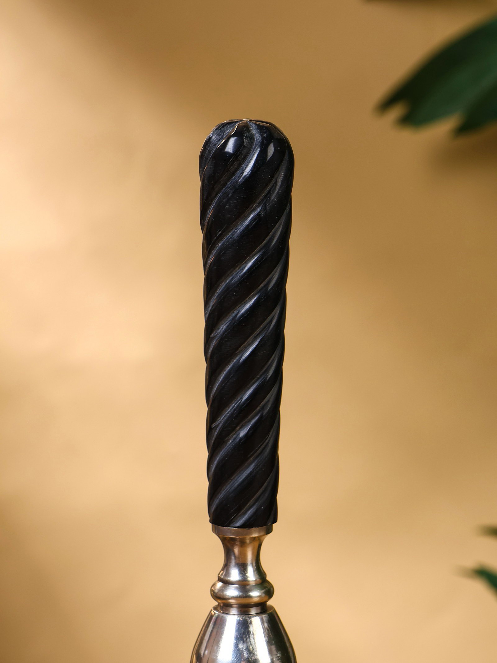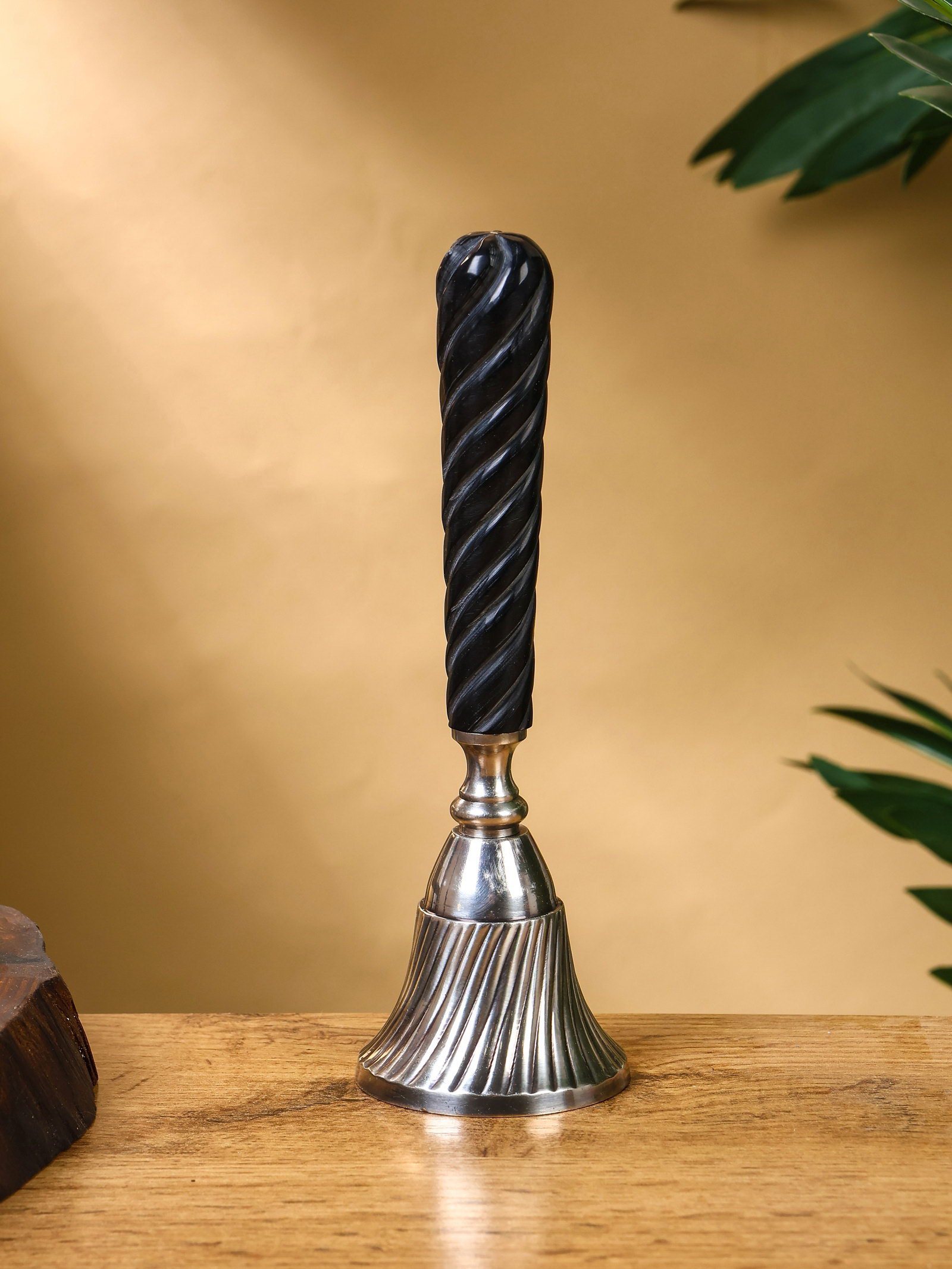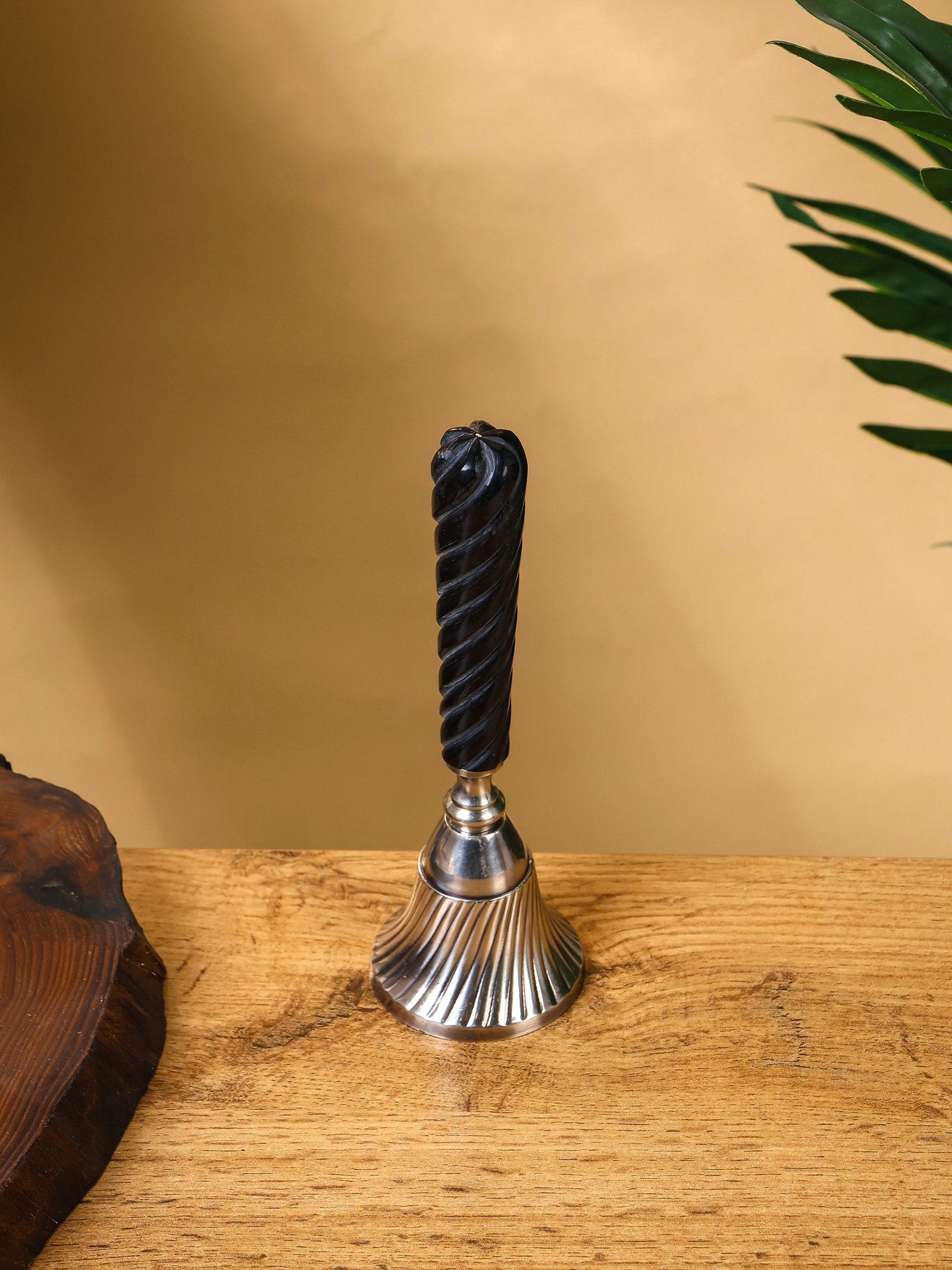 Колокольчик с чёрной ручкой, 18 см, латунь, 6x6x18 см., Индия