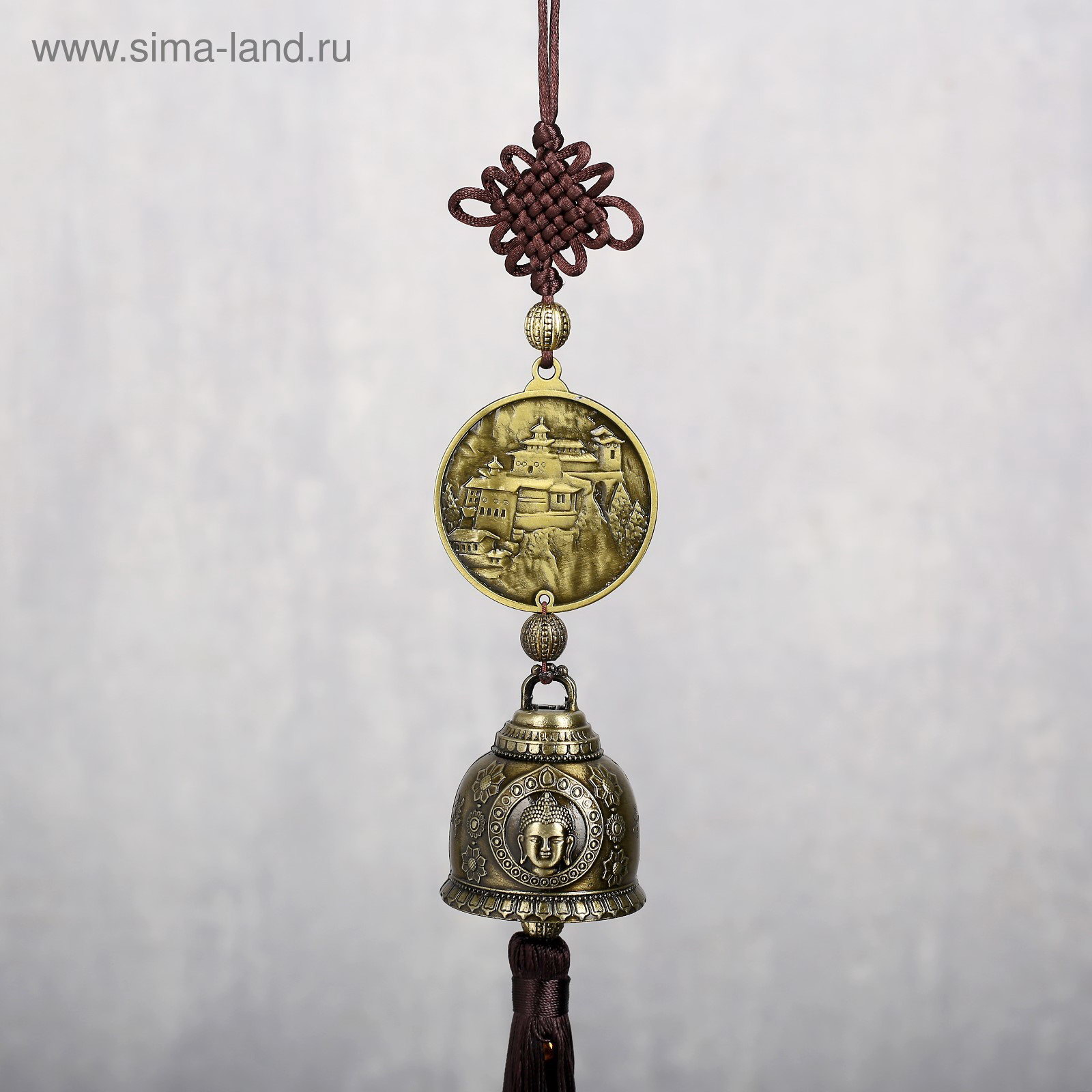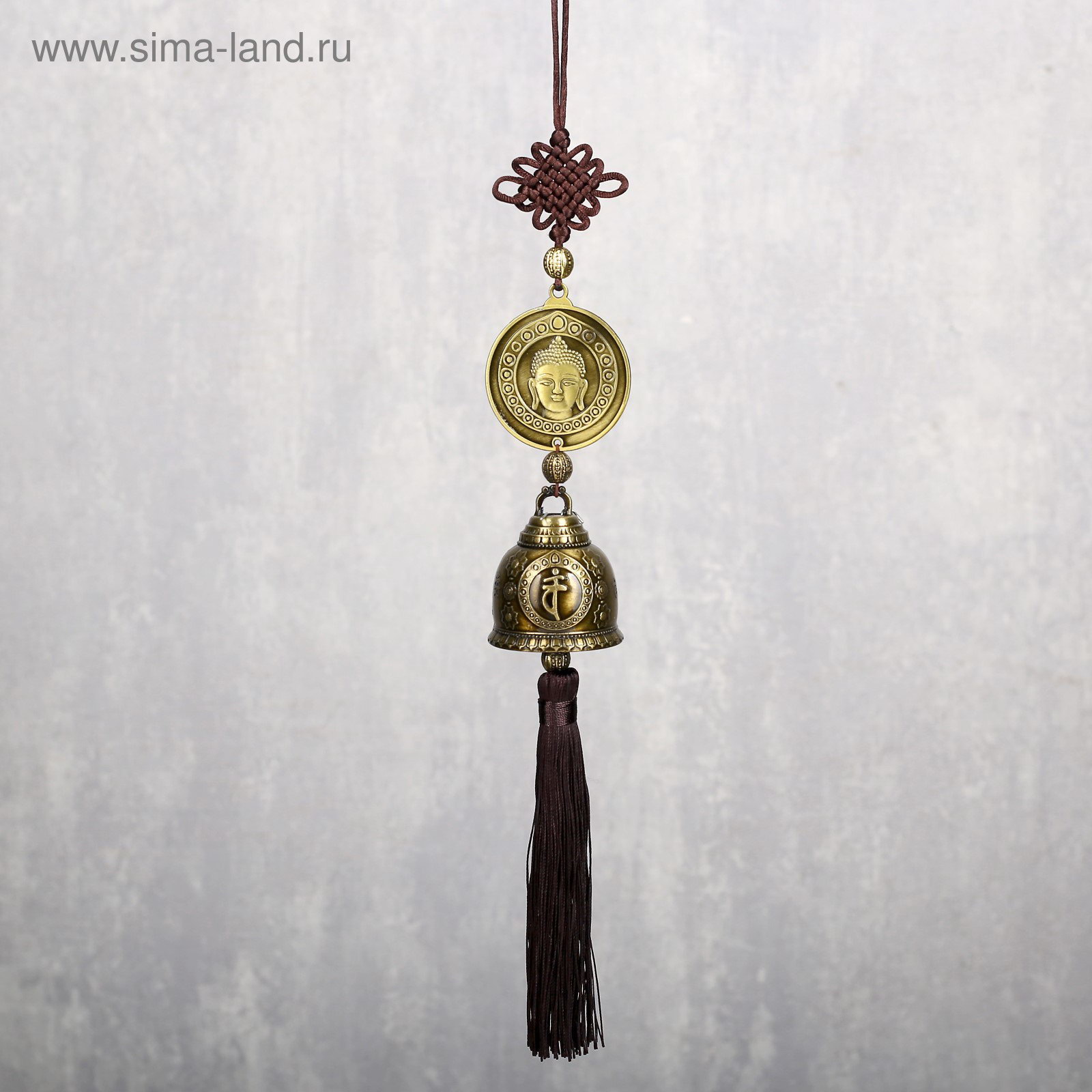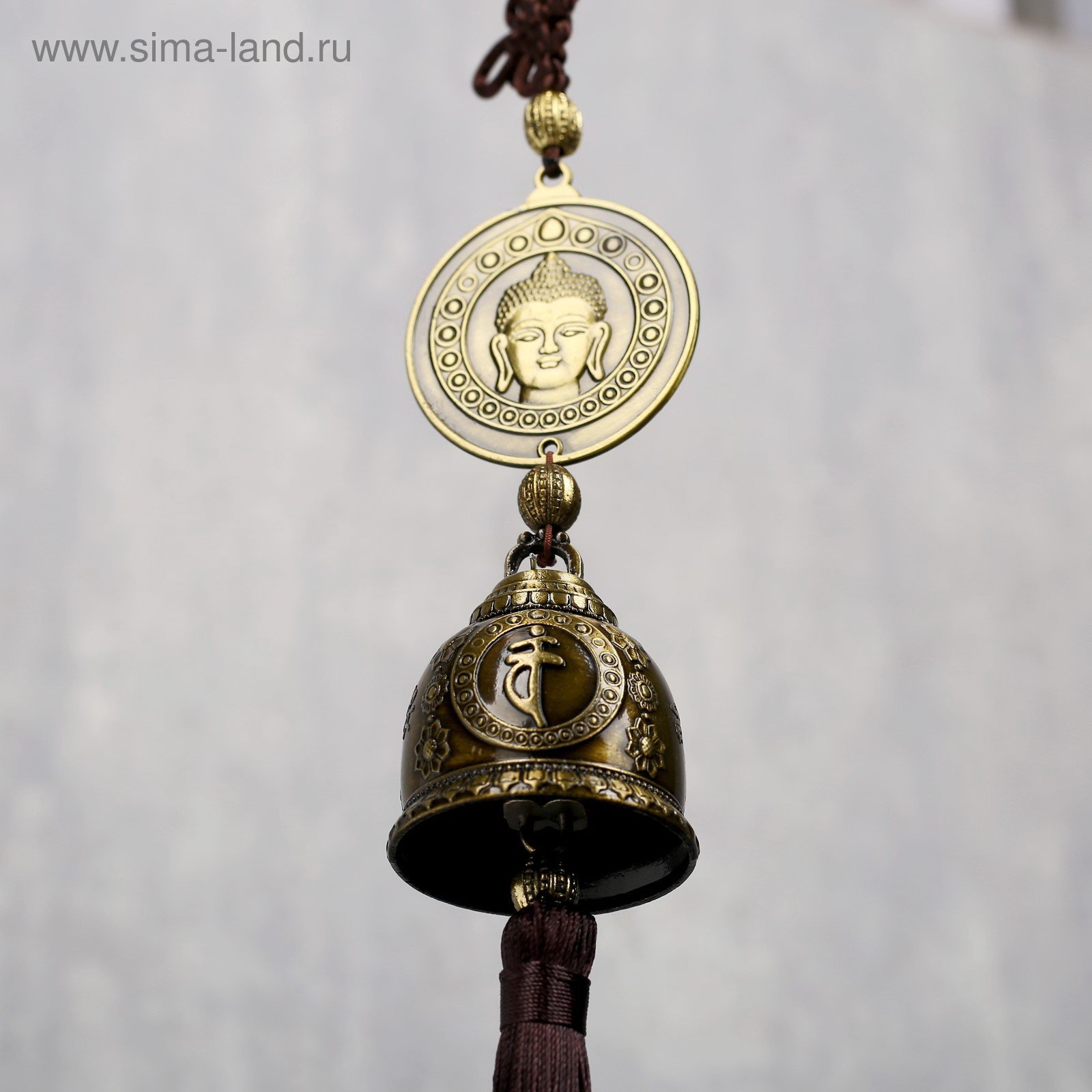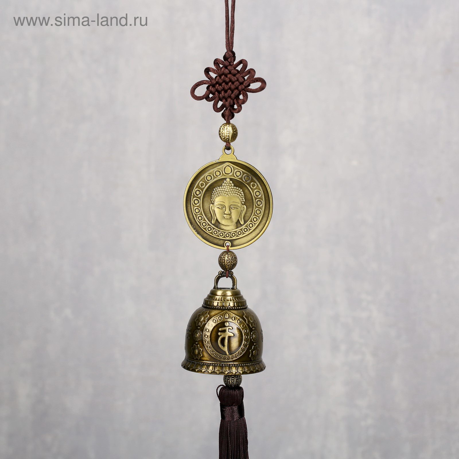 Колокольчик подвесной металл "Монета с буддой", 1 колокол, d=4.8 см, 39x5.3x4.8 см, 5.3x4.8x39 см., Китай