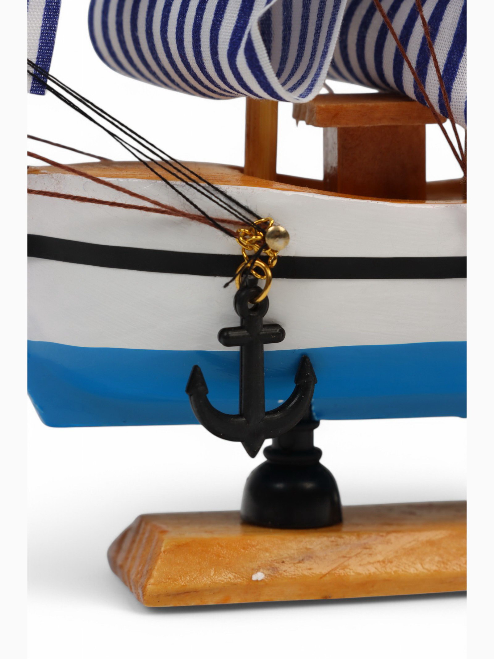 Сувенирная модель корабля "Эмма", 16x5x16 см, бело-синие паруса, 4.5x16x15.5 см., Китай