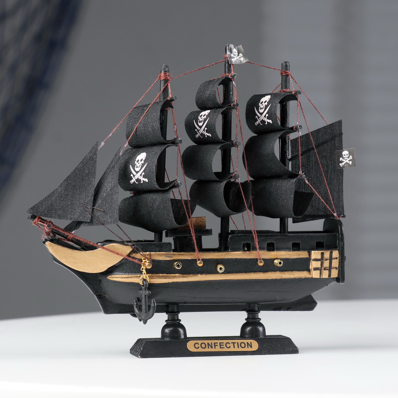 Сувенирная модель корабля "Пиратский шестипушечный. Гангут", чёрные паруса, 16x4x15.5 см, 4x15x15 см., Китай