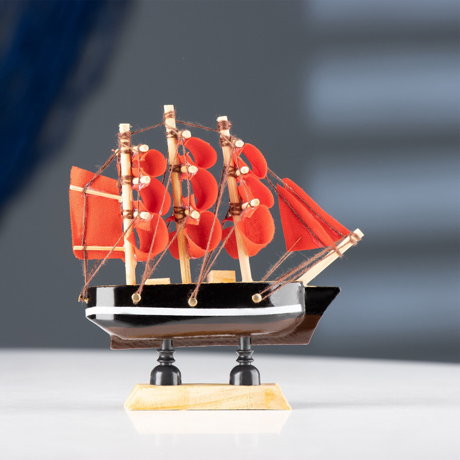 Сувенирная модель корабля "Марианна", борта с белой полосой, паруса алые, 3x10x10 см, 10x3x10 см., Китай