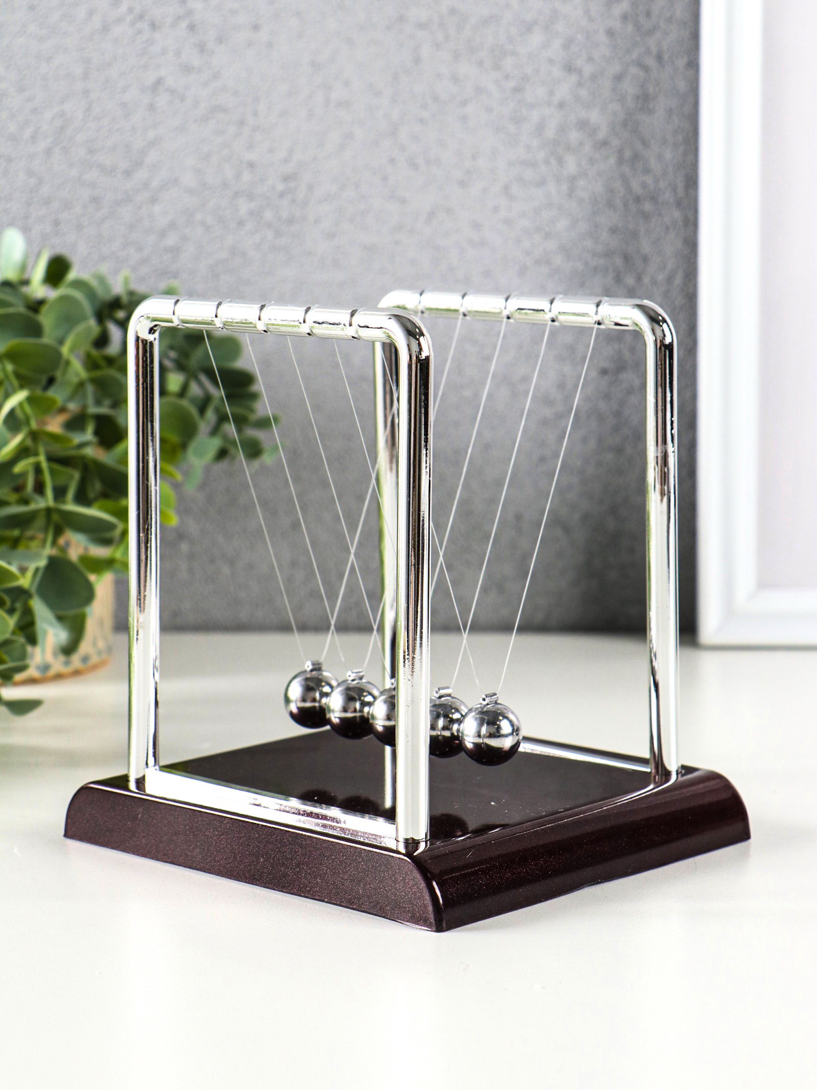 Цвет: Коричневый, Хромированный Форма фигуры: Предметы интерьера, Шар Для кого: Для женщины, Для мужчины, Унисекс Размер упаковки: 12.5 x 4 x 14 см. Работает от батареек: Нет Вид упаковки: Коробка картонная Адресат: Без адресата tnved: 8306290000 Механизм работает: От касания Шары Ньютона это система, которую изобрел Исаак Ньютон для демонстрации преобразования энергии. Он показал, что при отсутствии противодействующей силы шары могут двигаться вечно, но в данной ситуации это недостижимо. Шары Ньютона еще называют вечным двигателем, они были признаны в конце 20 века, и в основном использовались для релаксации, в психотерапии и для подсчета времени. Маятник Ньютона сегодня пользуется огромной популярностью у наших клиентов. Система состоит из подставки и пяти металлических шариков, которые подвешены на леске. Для активации маятника вам необходимо отвести один шарик в сторону и отпустить его. Затем наблюдайте, как шарики с противоположной стороны начинают двигаться в зеркальном отображении с той же скоростью. Через определенное время шарики останавливаются. Продолжительность движения зависит от размера и веса шариков: чем тяжелее и больше шарики, тем дольше процесс, и наоборот. | ||