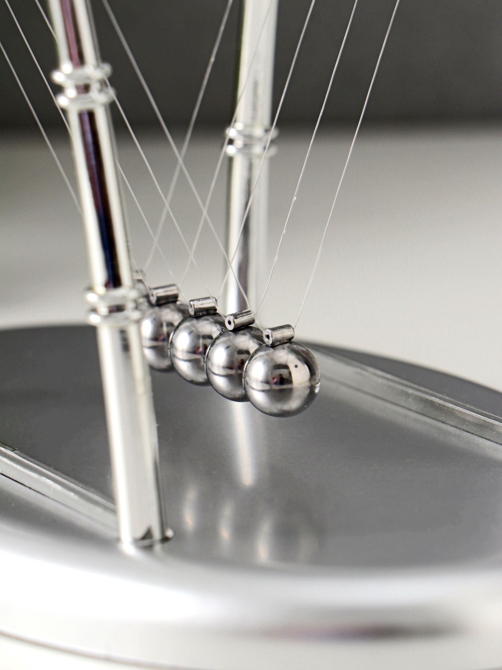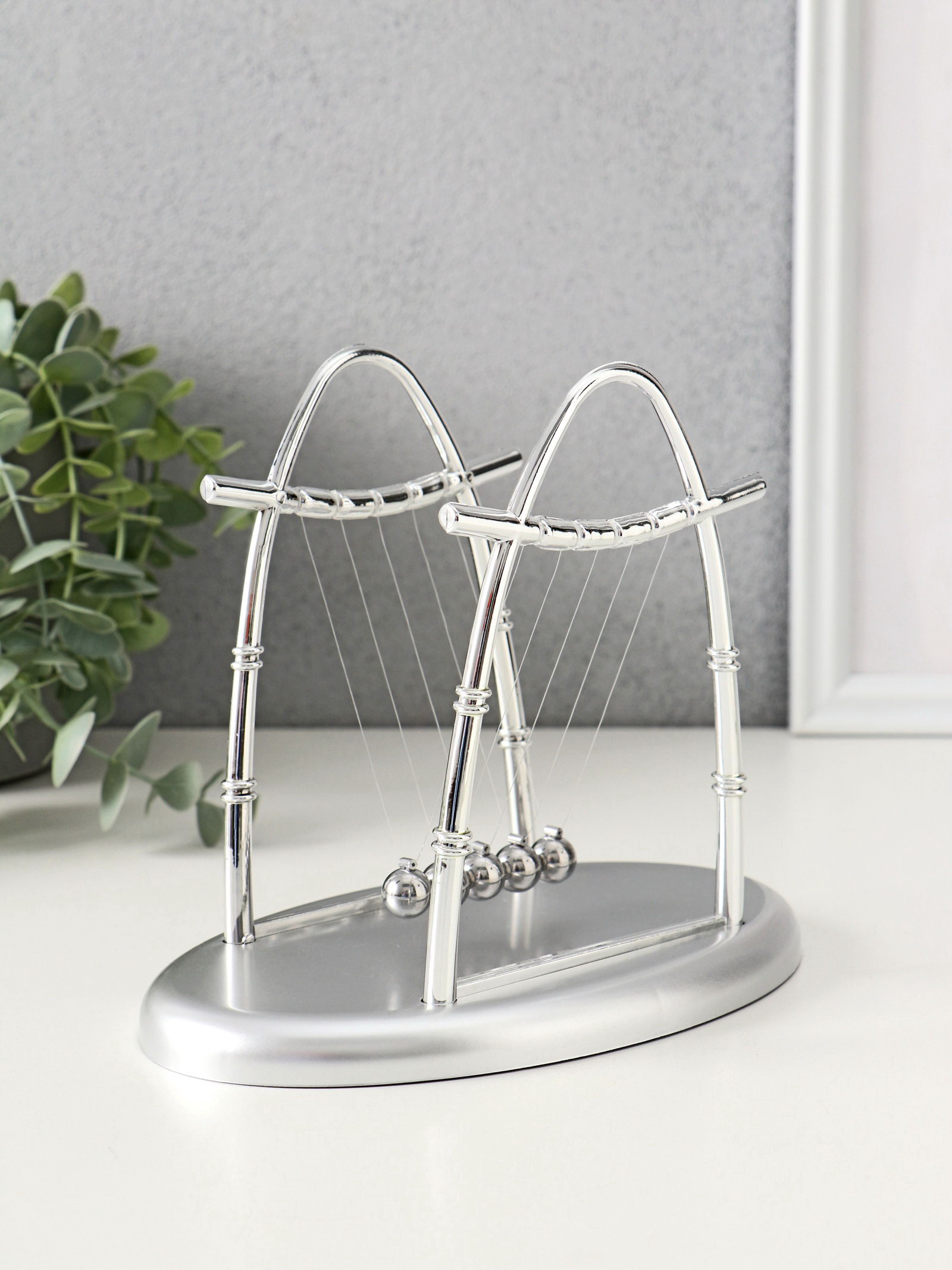Маятник настольный антистресс "Шары Ньютона. Колыбель техно", серебро, 14x18x11 см, 11x17.5x4 см., Китай