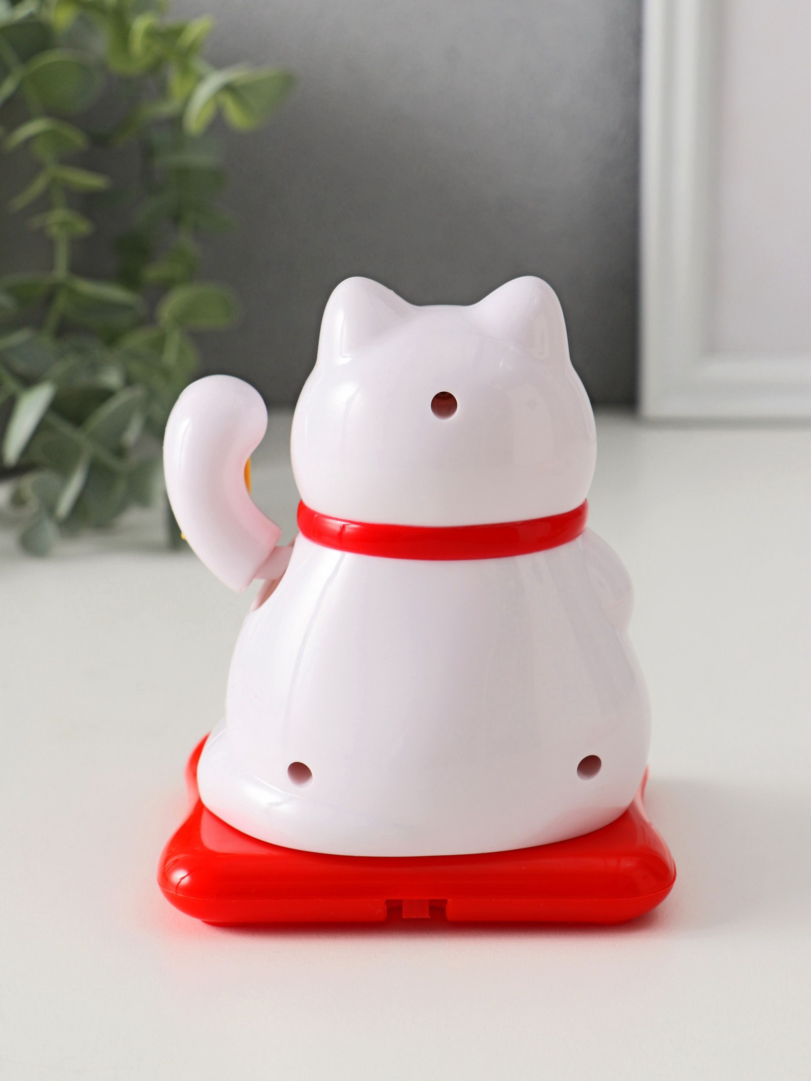 Маятник настольный антистресс "Кот Манэки-нэко спящий", пластик, от солнечной батареи, белый, 9.5x10x9.5 см, 10x9.5x9.5 см., Китай