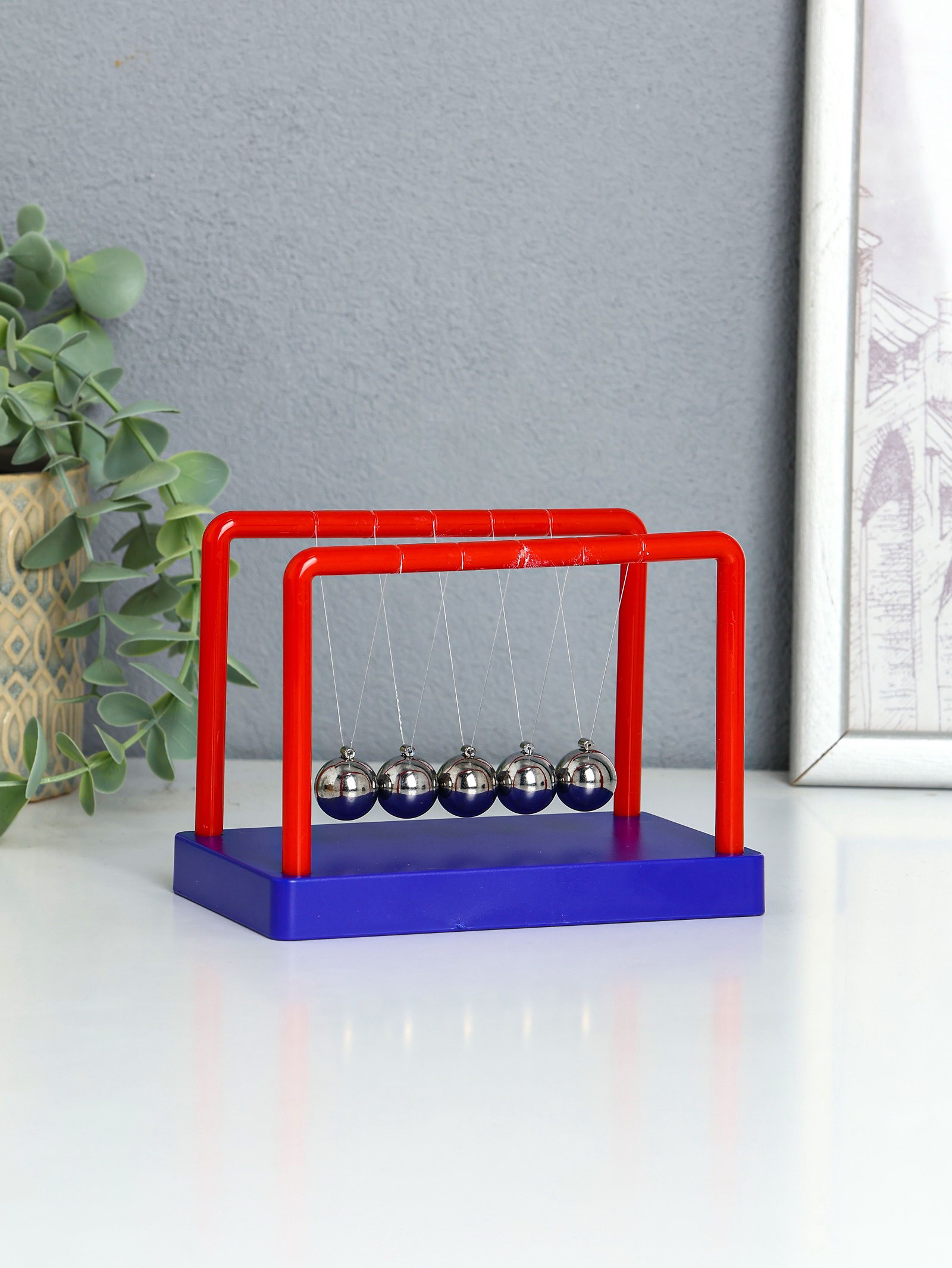 Цвет: Красный, Синий Размер упаковки: 13.5 x 3.5 x 9.5 см. tnved: 8306290000 Форма фигуры: Прямоугольник Механизм работает: От касания Этот настольный маятник простой и элегантный способ снять напряжение в течение дня. Легкое касание запускает плавное движение стальных шаров, их ритмичный стук успокаивает ум и помогает сосредоточиться. Компактный дизайн делает его идеальным спутником для рабочего стола в офисе или дома. Особенности