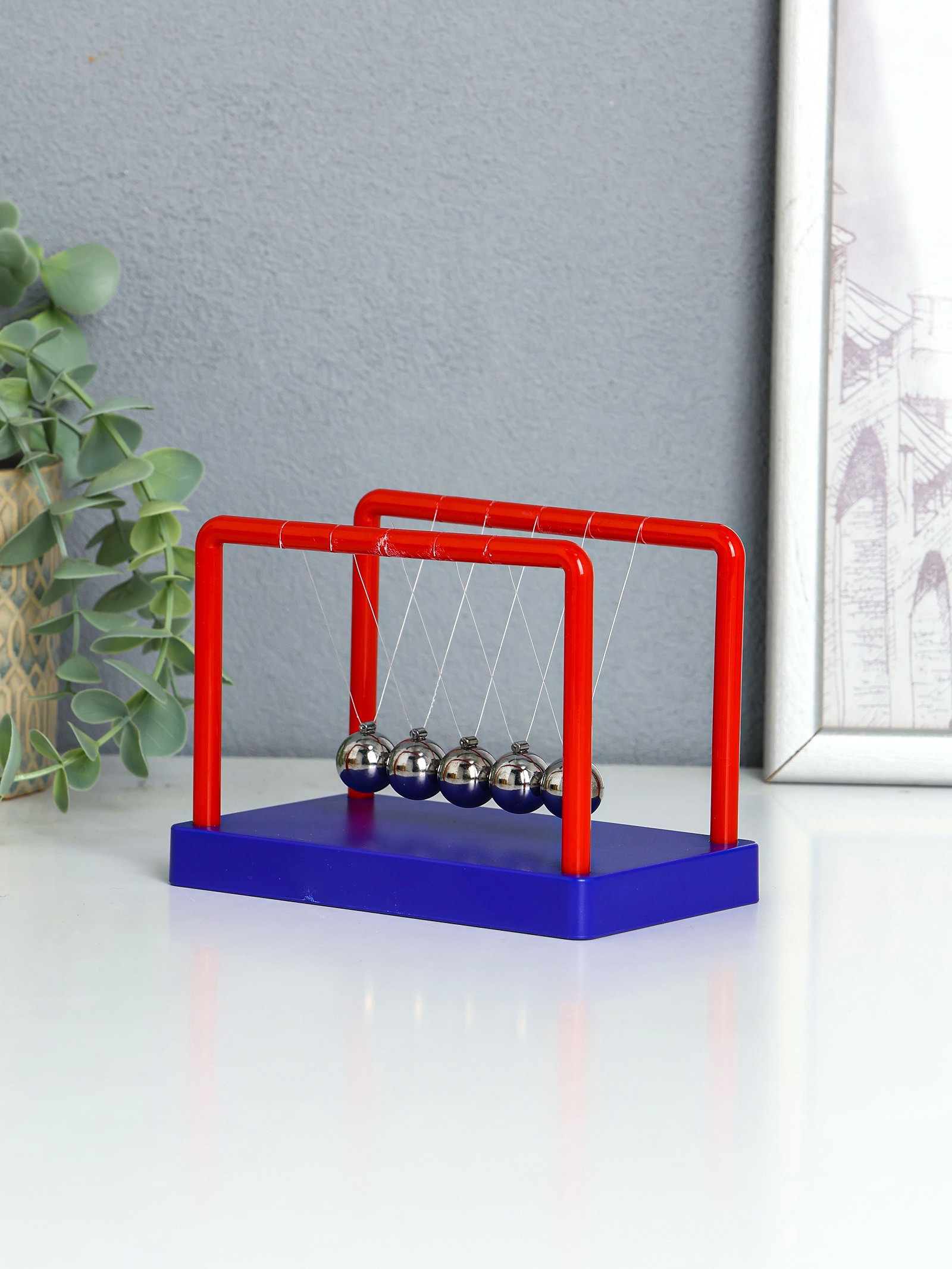 Маятник настольный антистресс "Шары Ньютона", сине-красный, 8x13x9.5 см, 13x8x9.5 см., Китай