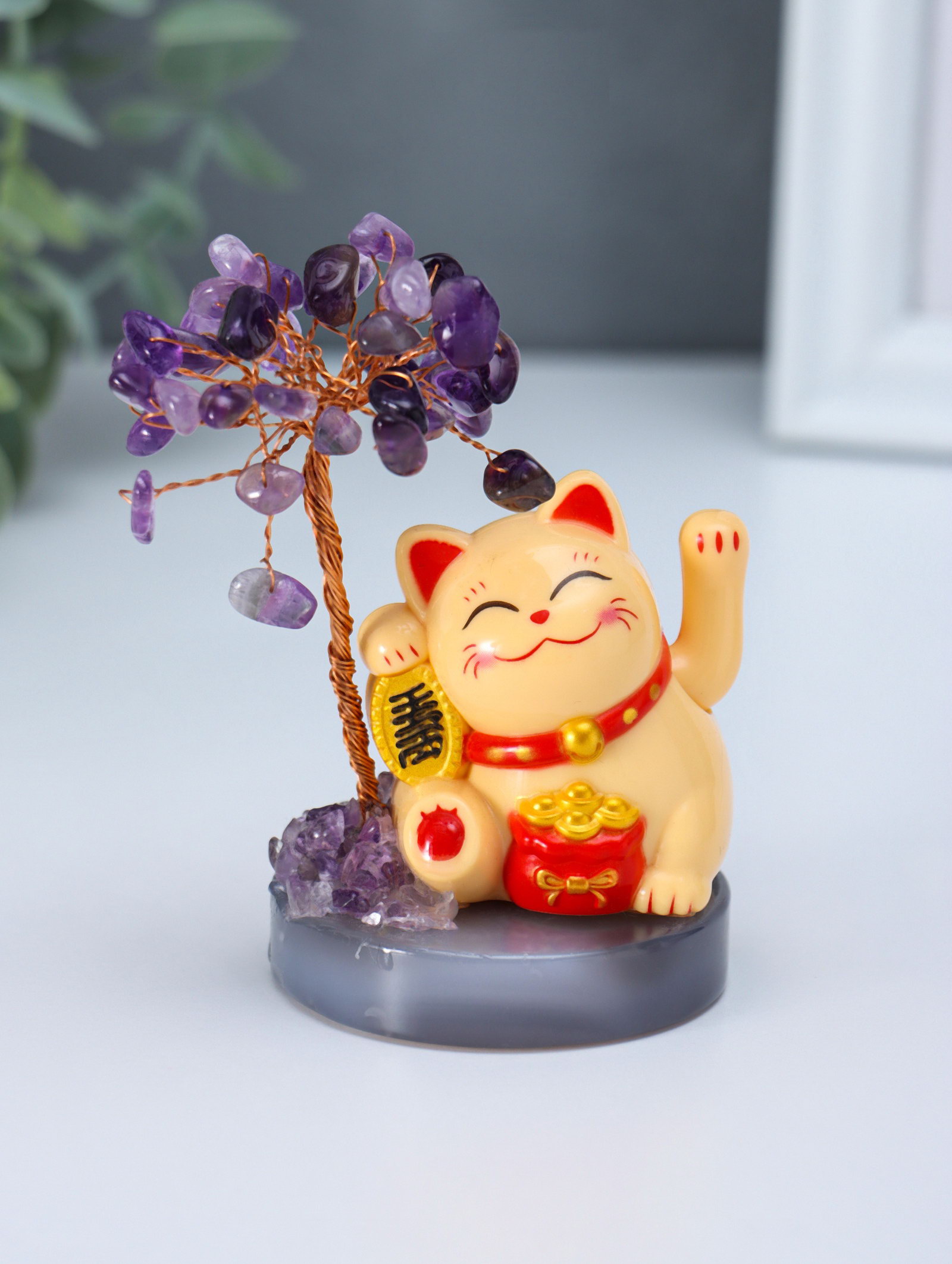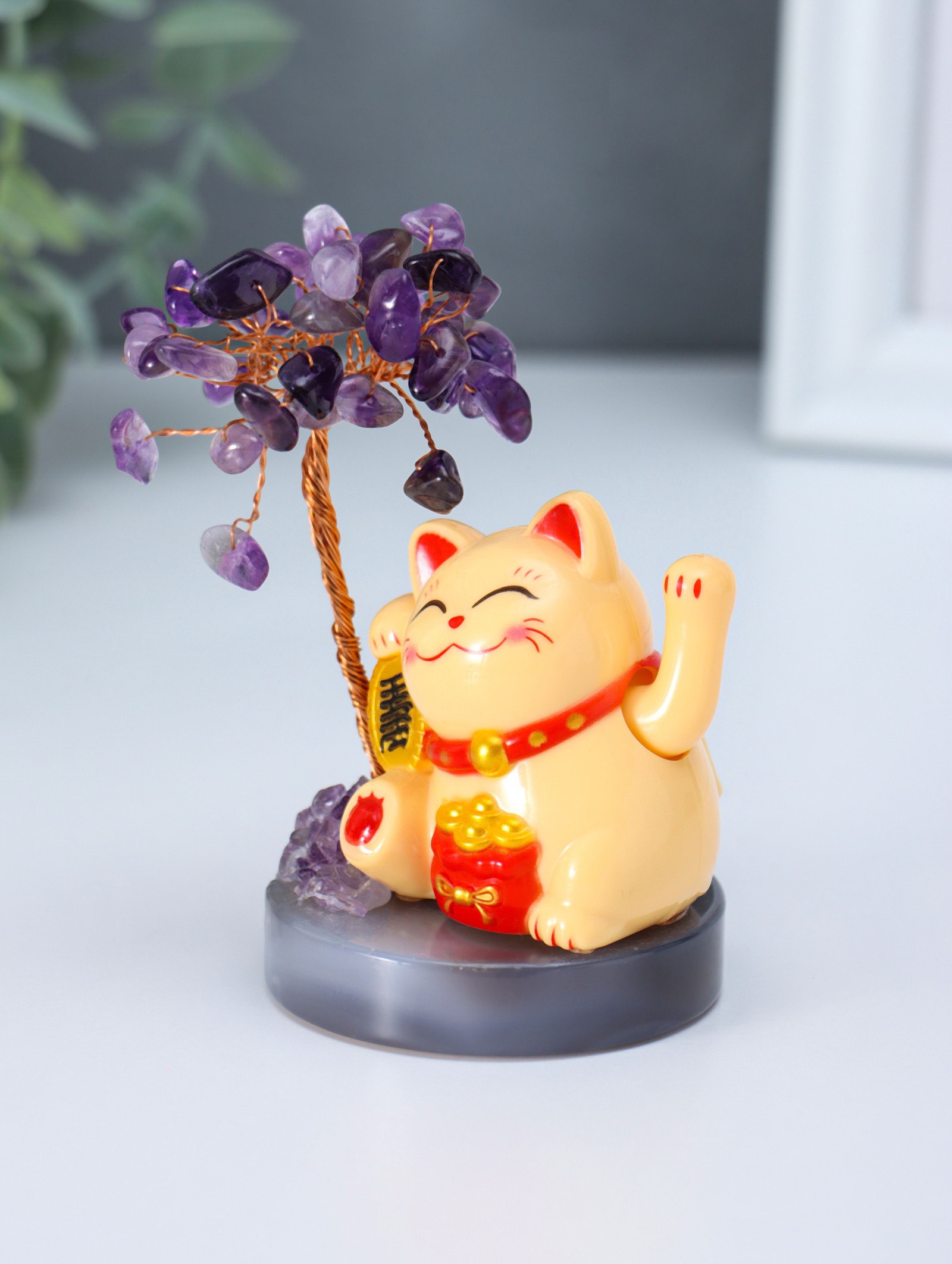Маятник настольный антистресс от солнечной батареи "Жёлтый Манэки-нэко у дерева", 36 камней, 5.5x5.5x11 см, 5.5x5.5x11 см., Китай