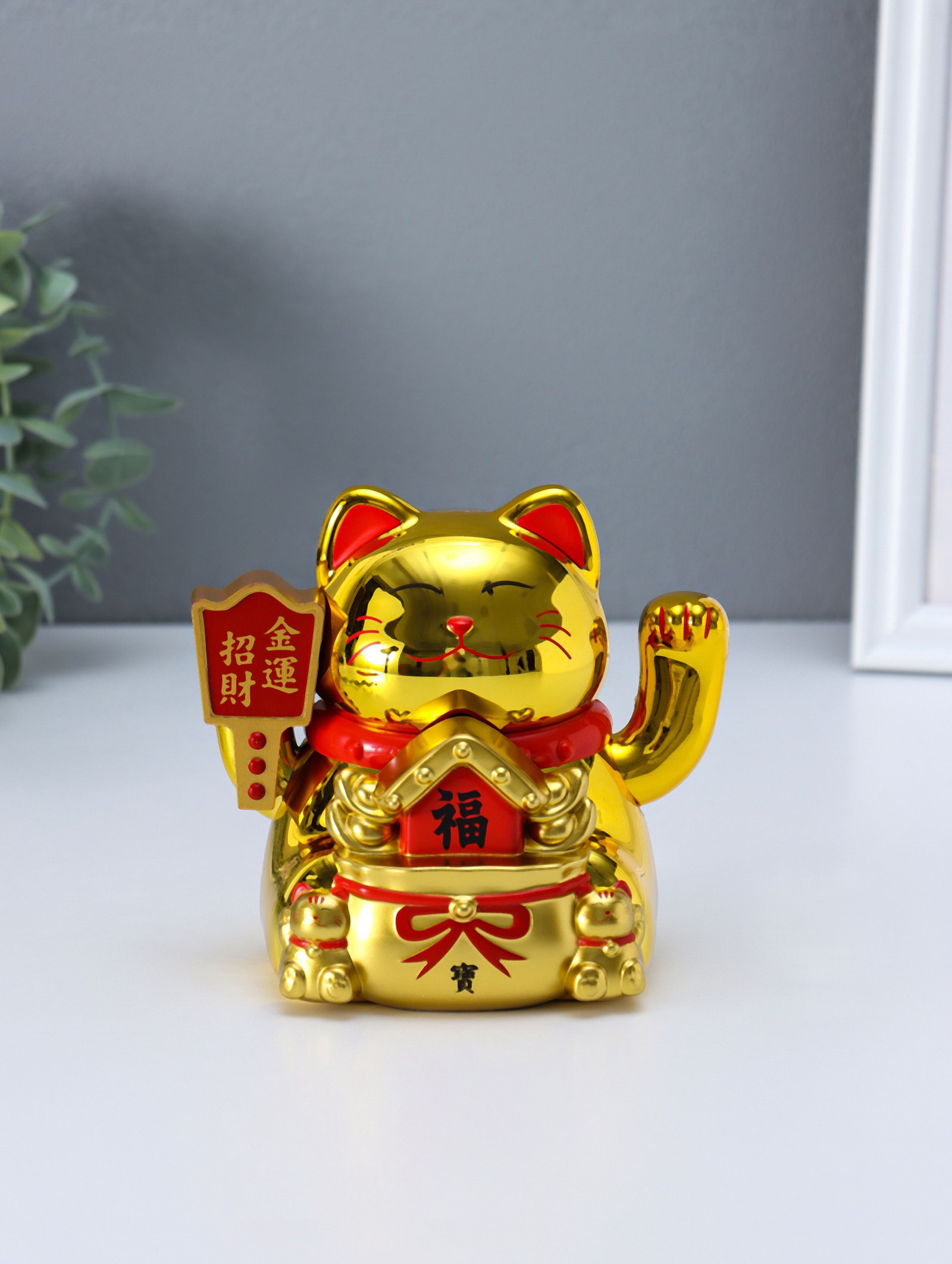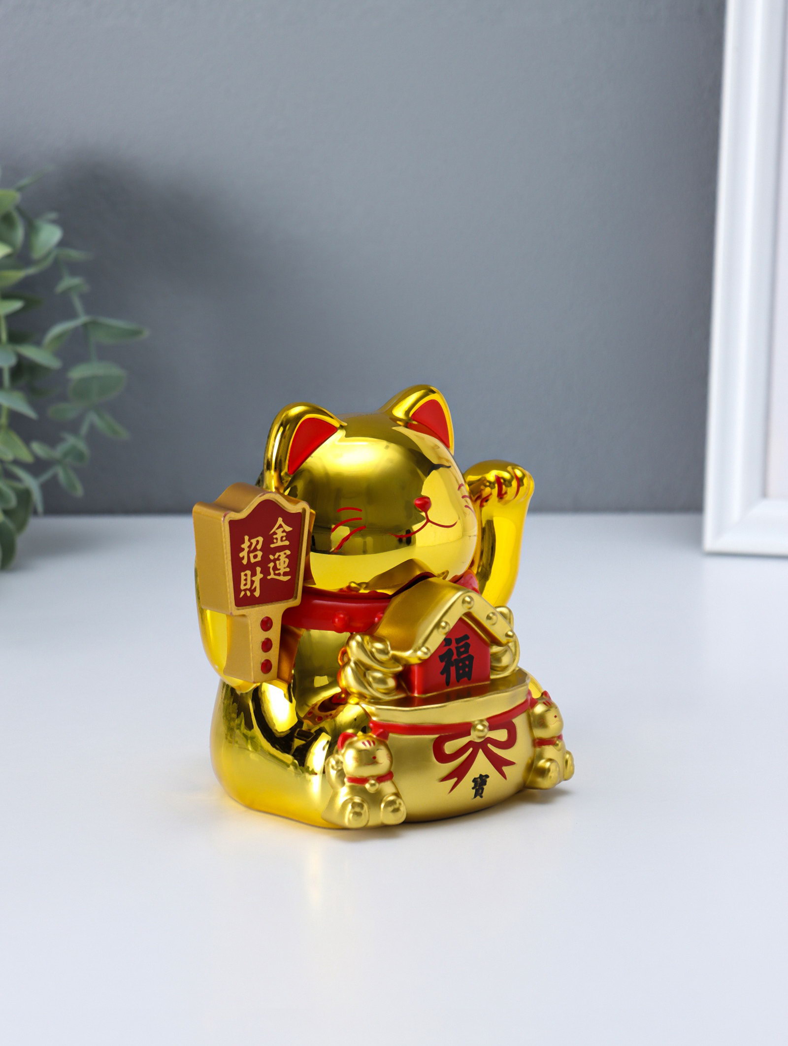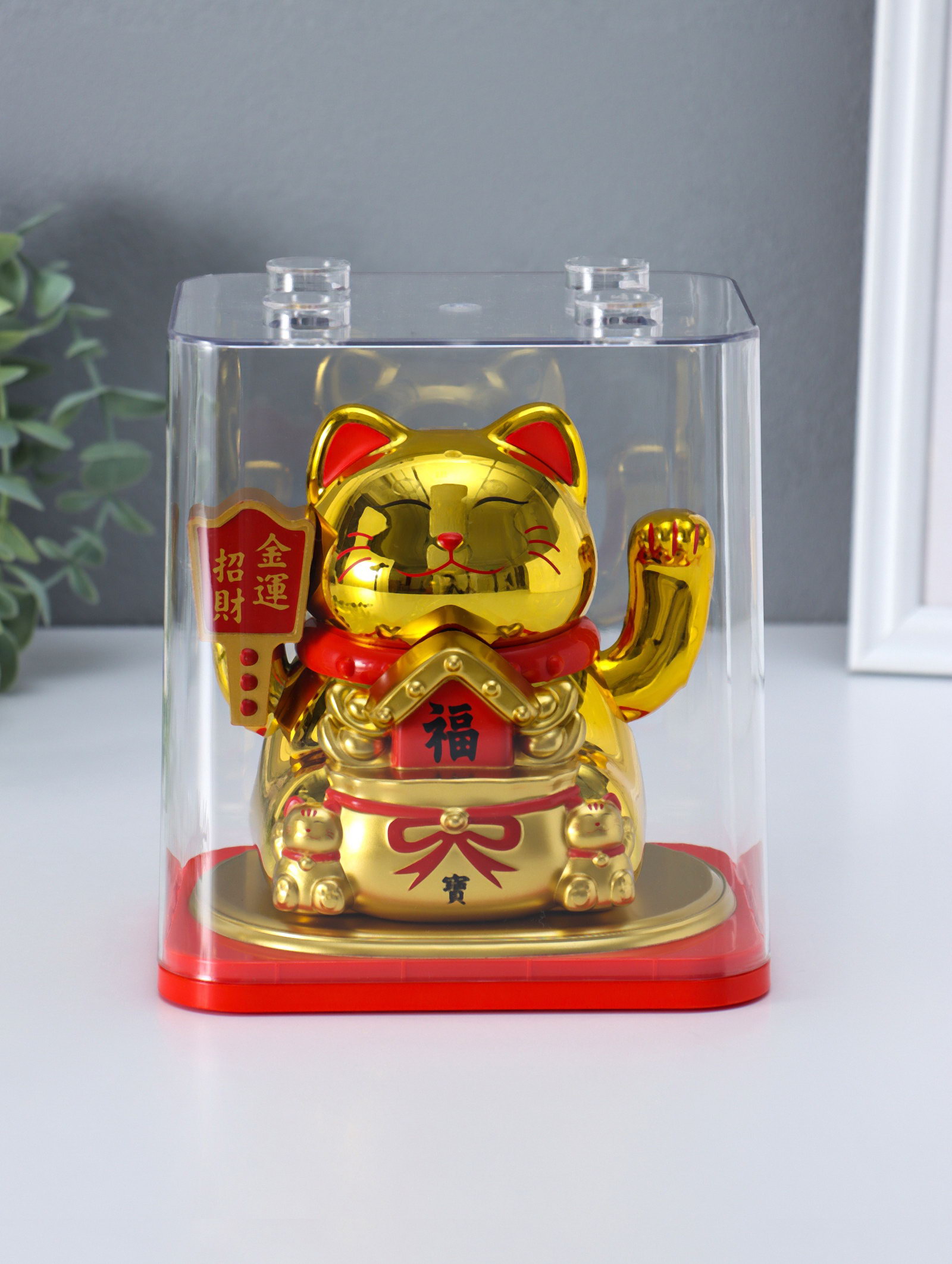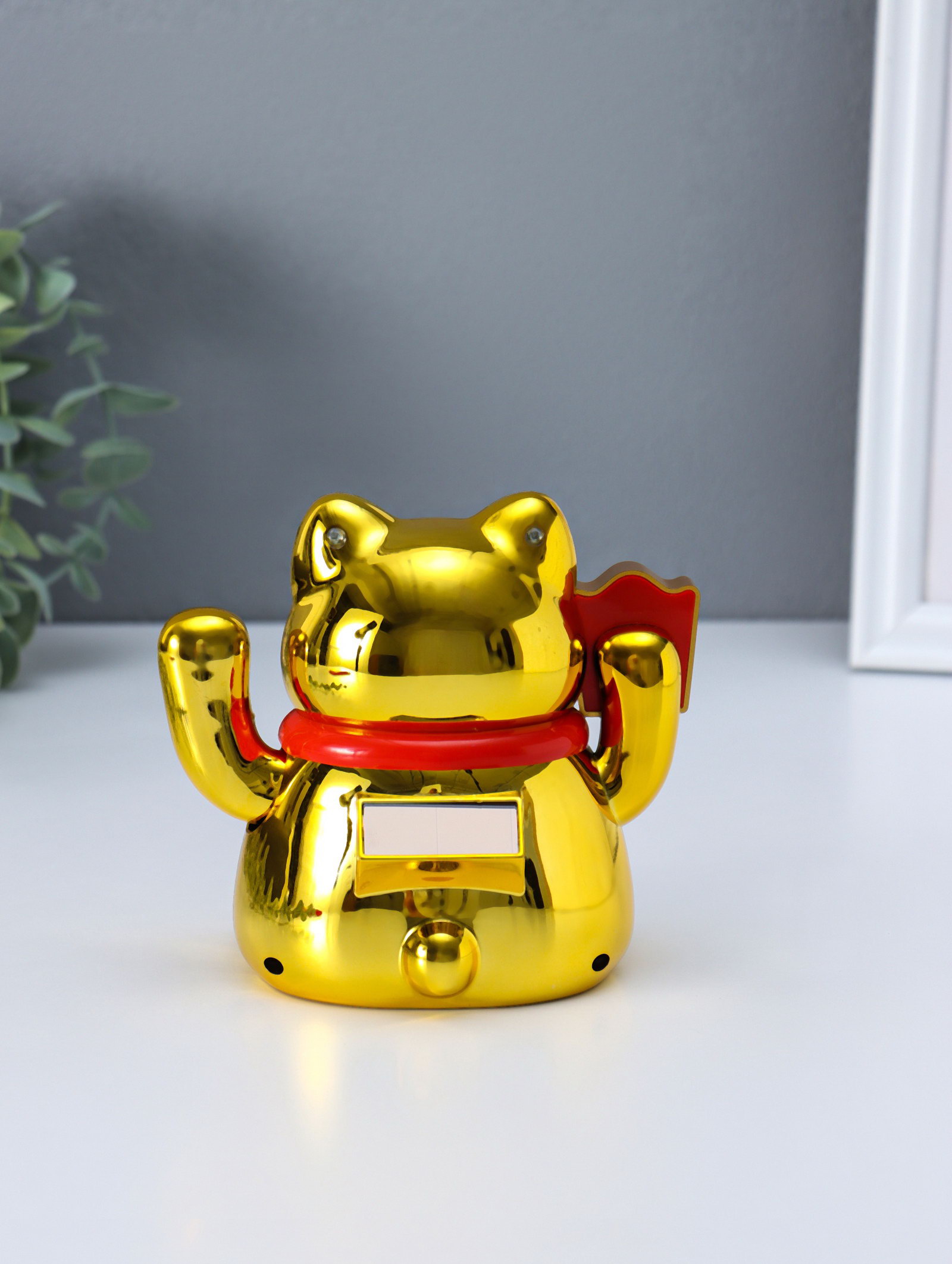 Маятник настольный антистресс от солнечной батареи "Золотой кот Манэки-нэко с домиком", 11.2x14.3x15.3 см, 14.3x11.2x15.3 см., Китай