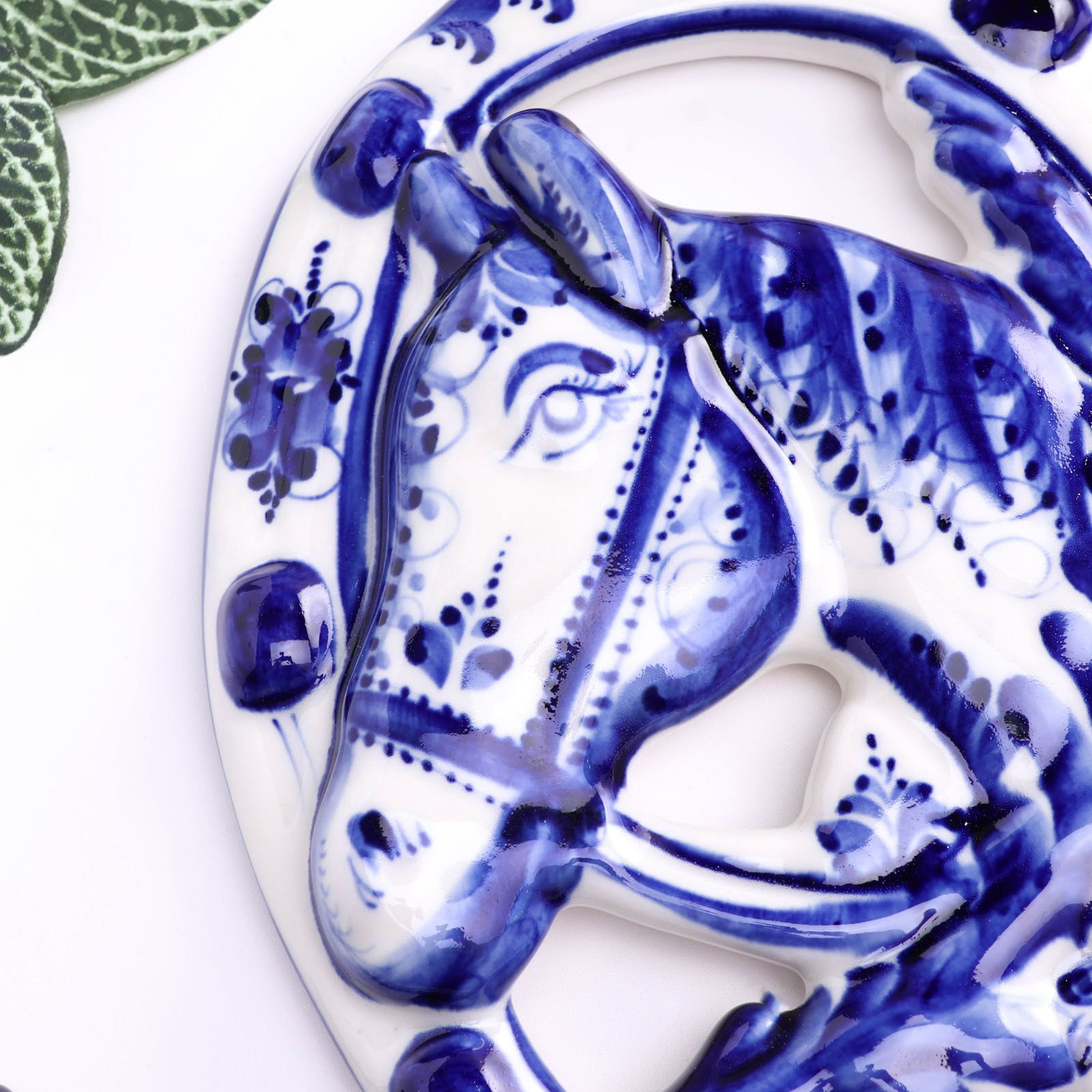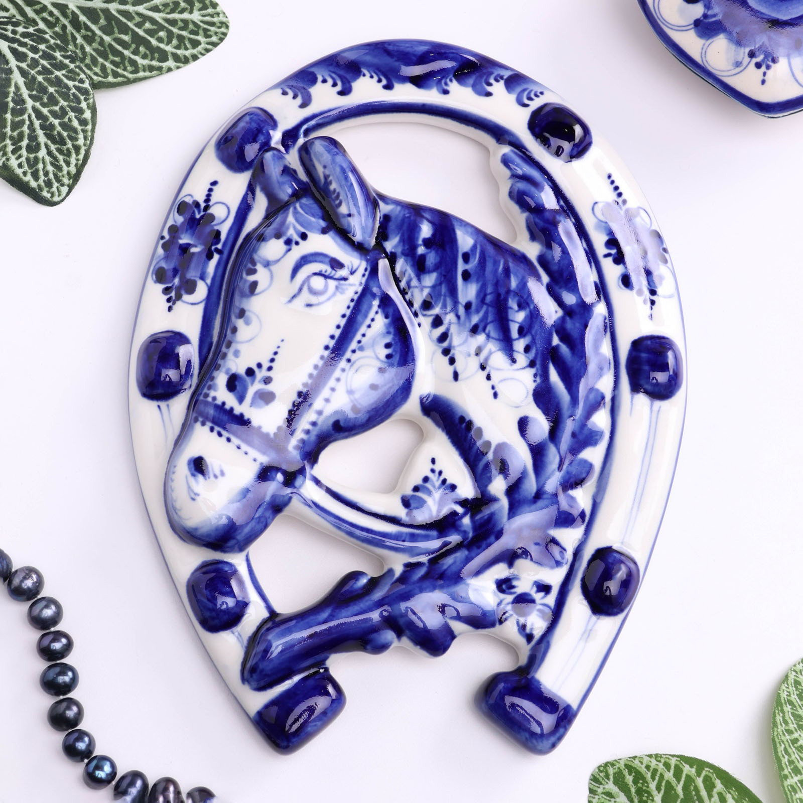 Подкова гжель "Лошадь", бело-синий,керамика, Россия
